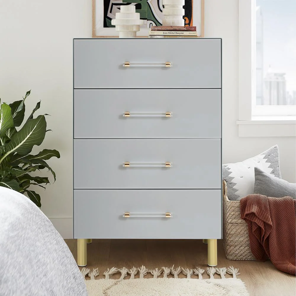 4 Drawers Chest Of Dresser Tall Storage Tower Cabinet with Metal Legs For Bedroom Living Room Bluish Gray