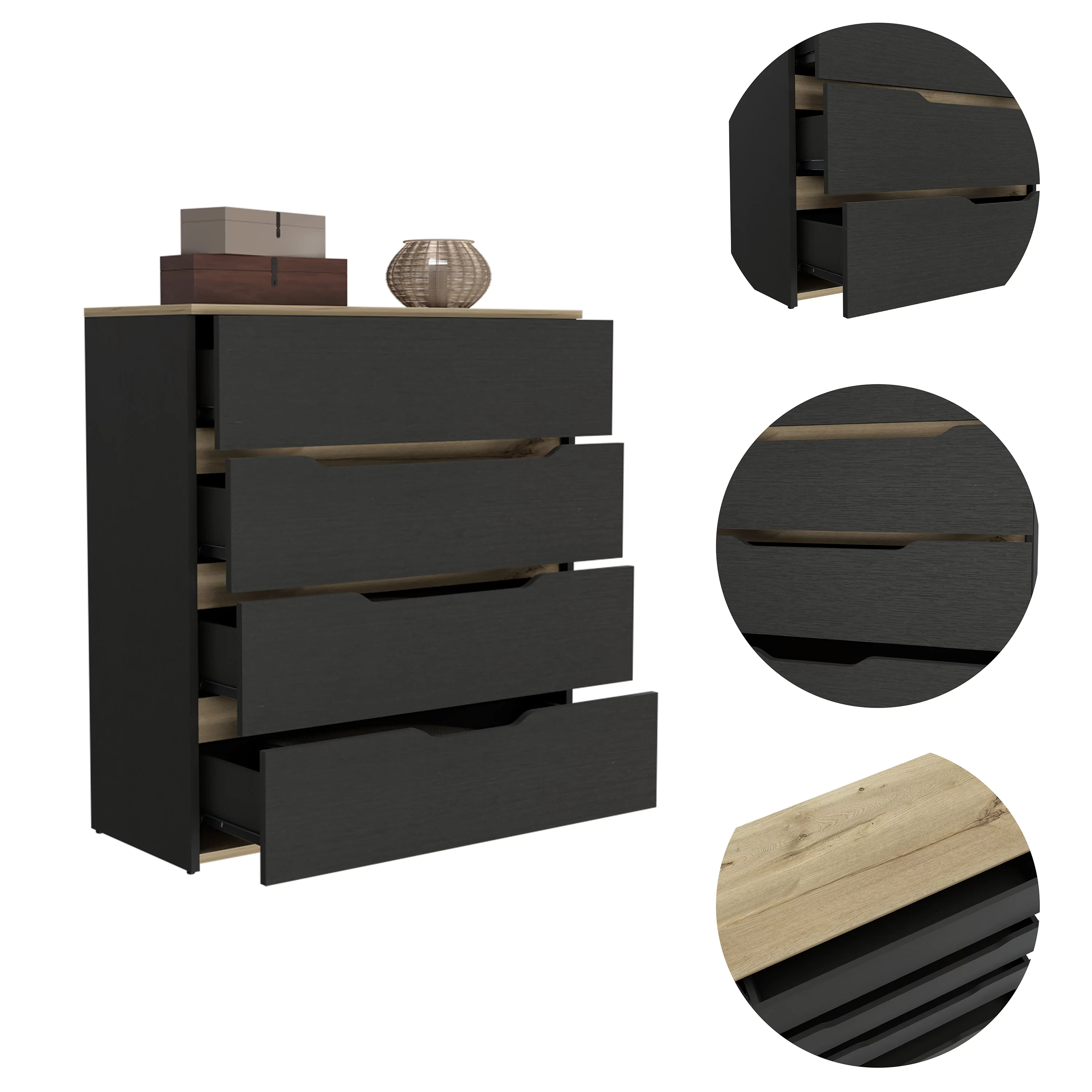 HomeRoots 524569 39 in. Solid Wood Four Drawer Chest, Gray & Ivory