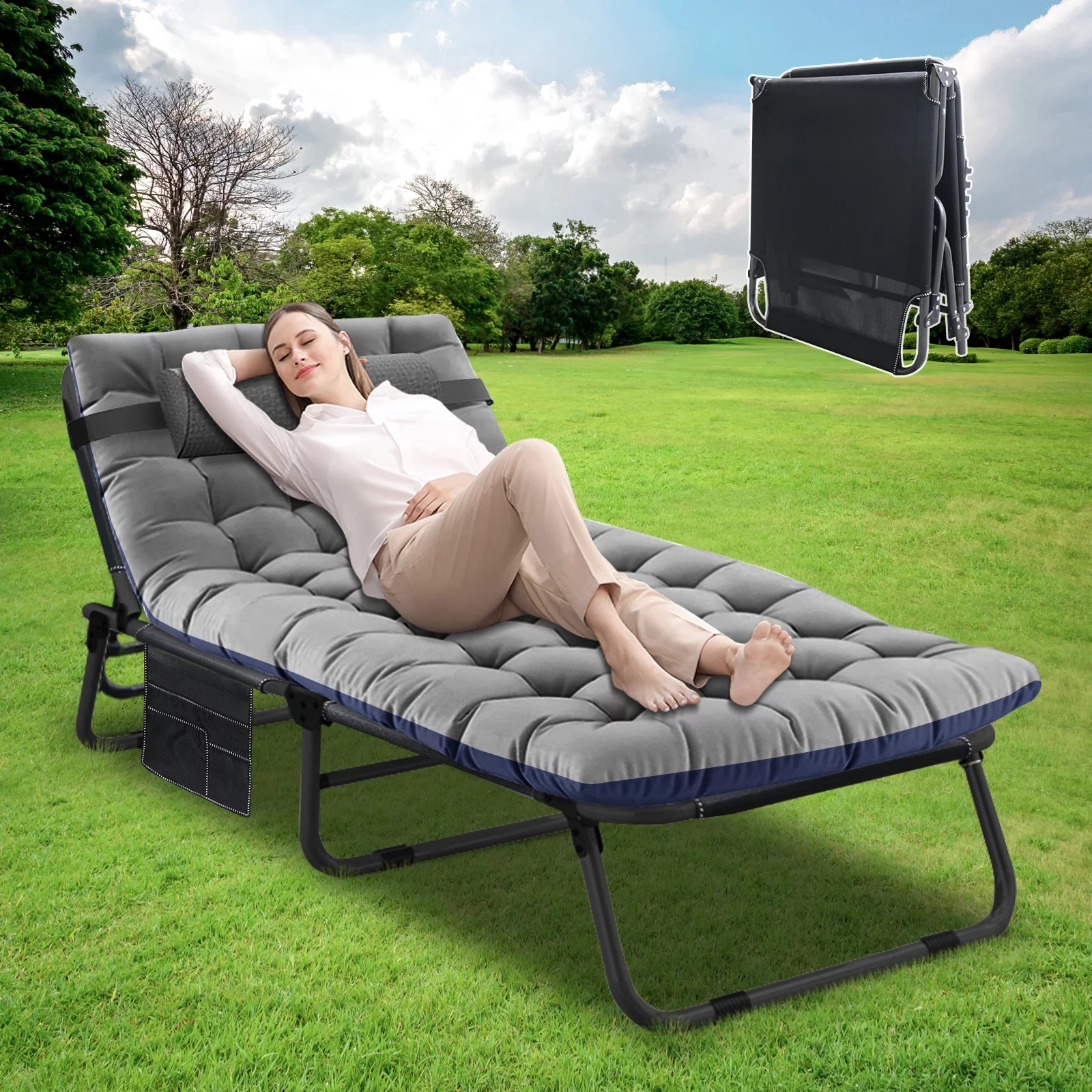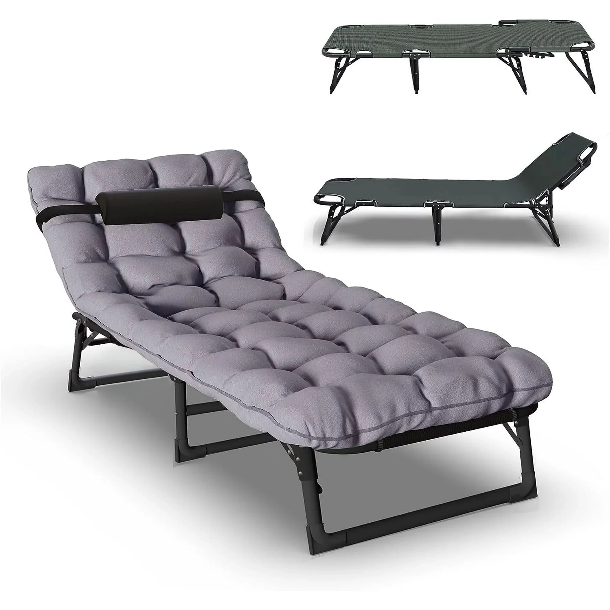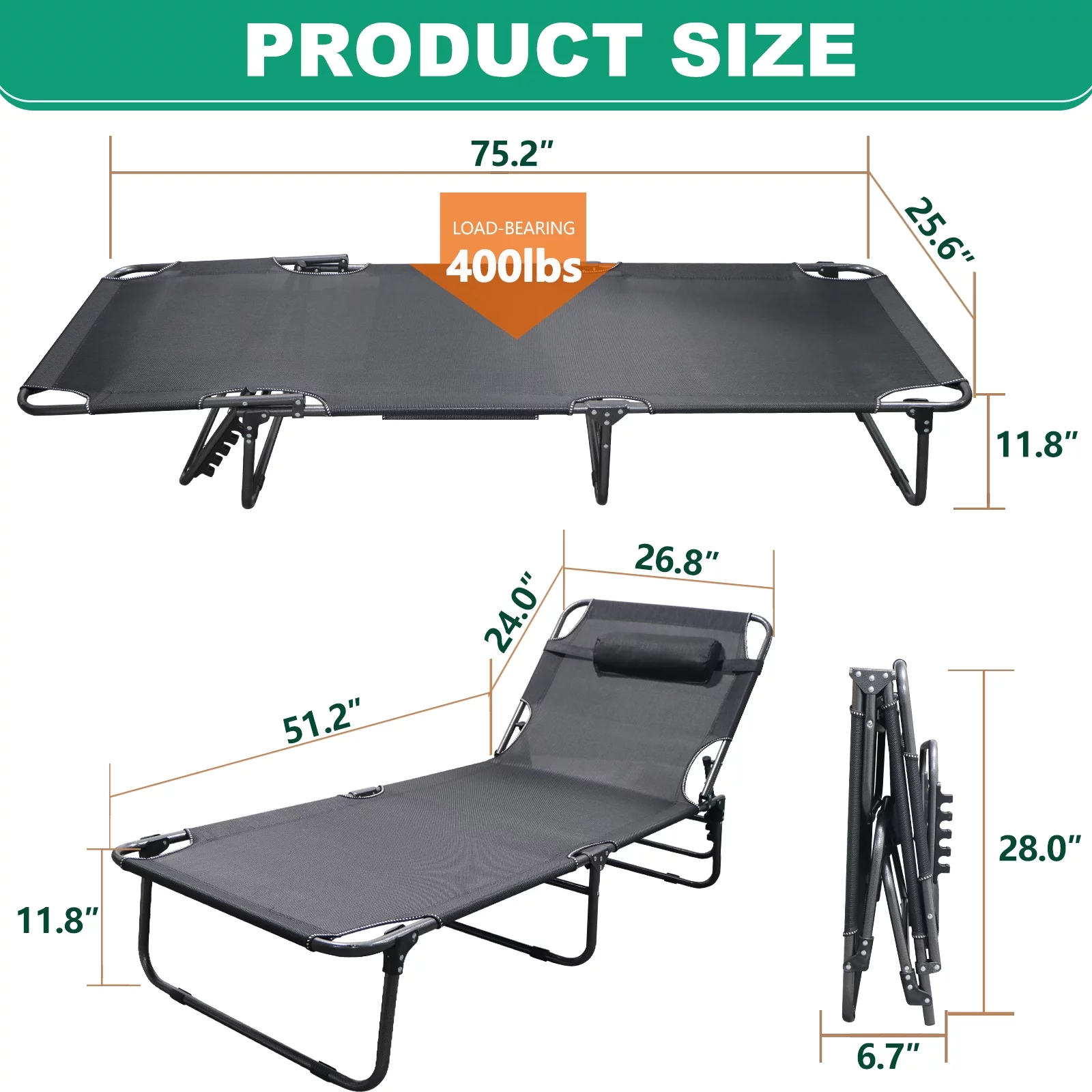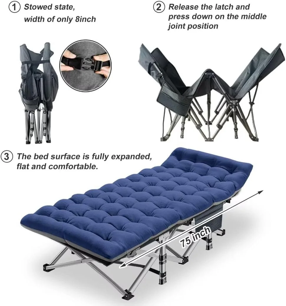 FICISOG Folding Camping Cot, Outside Adults 4-Fold Sleeping Cots with Pillow, up to 400 lbs