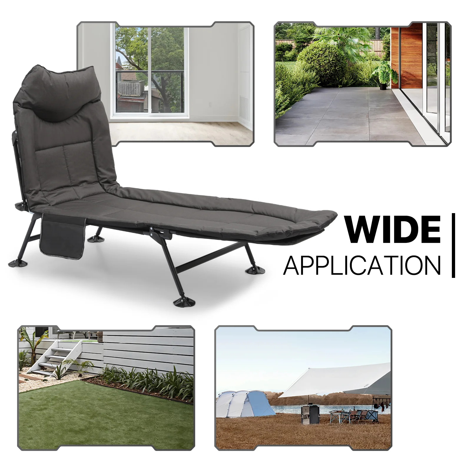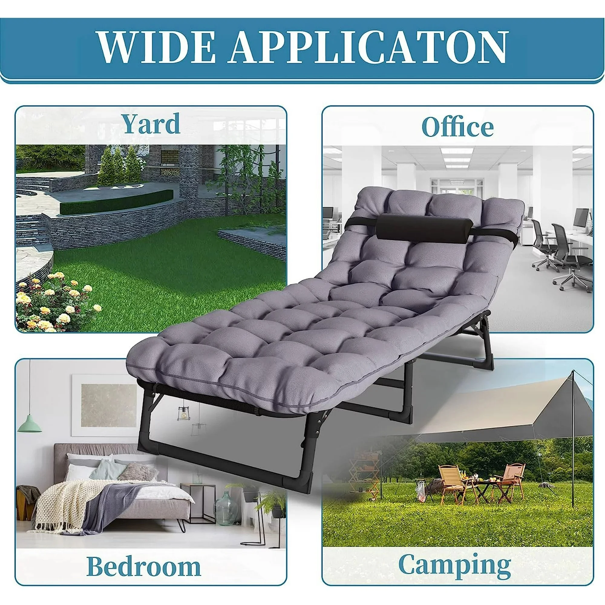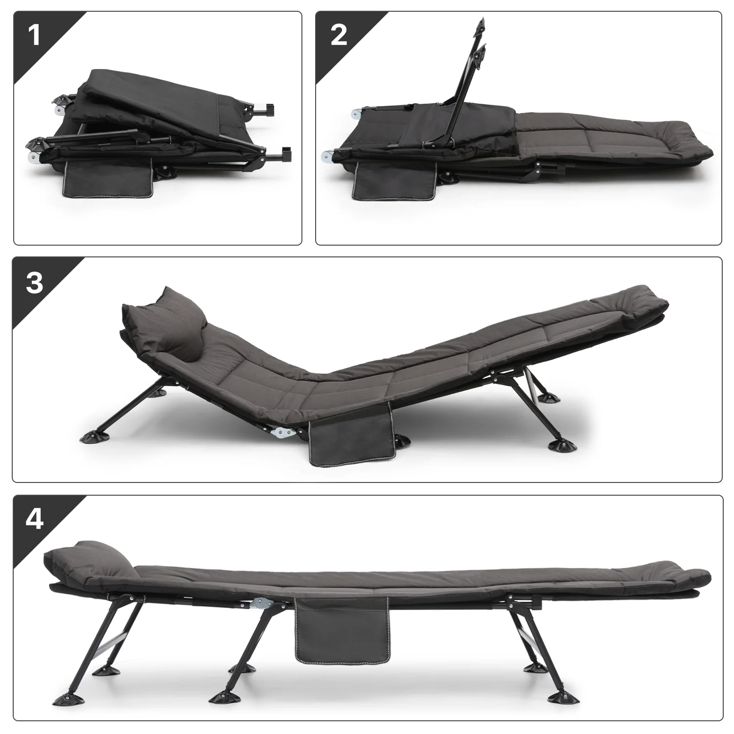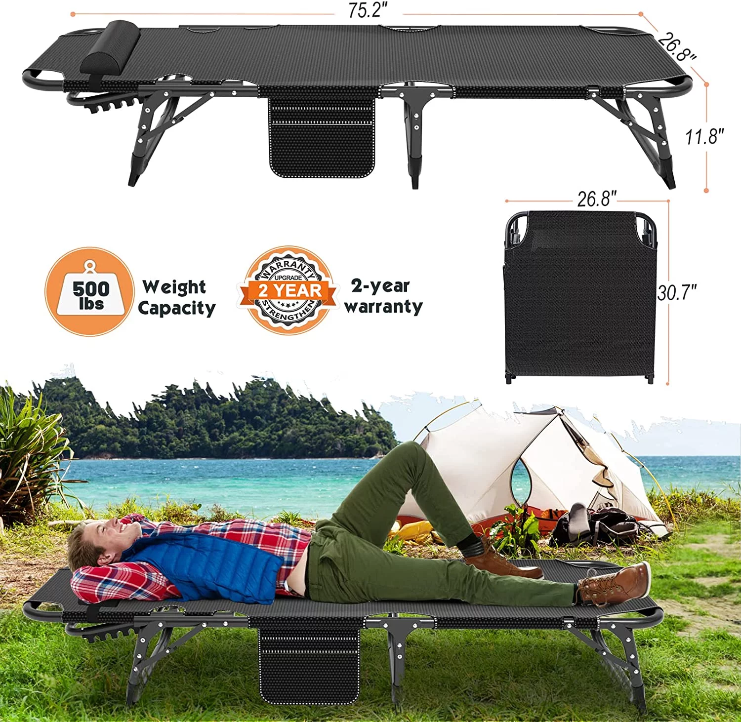FICISOG Folding Camping Cot, Outside Adults 4-Fold Sleeping Cots with Pillow, up to 400 lbs