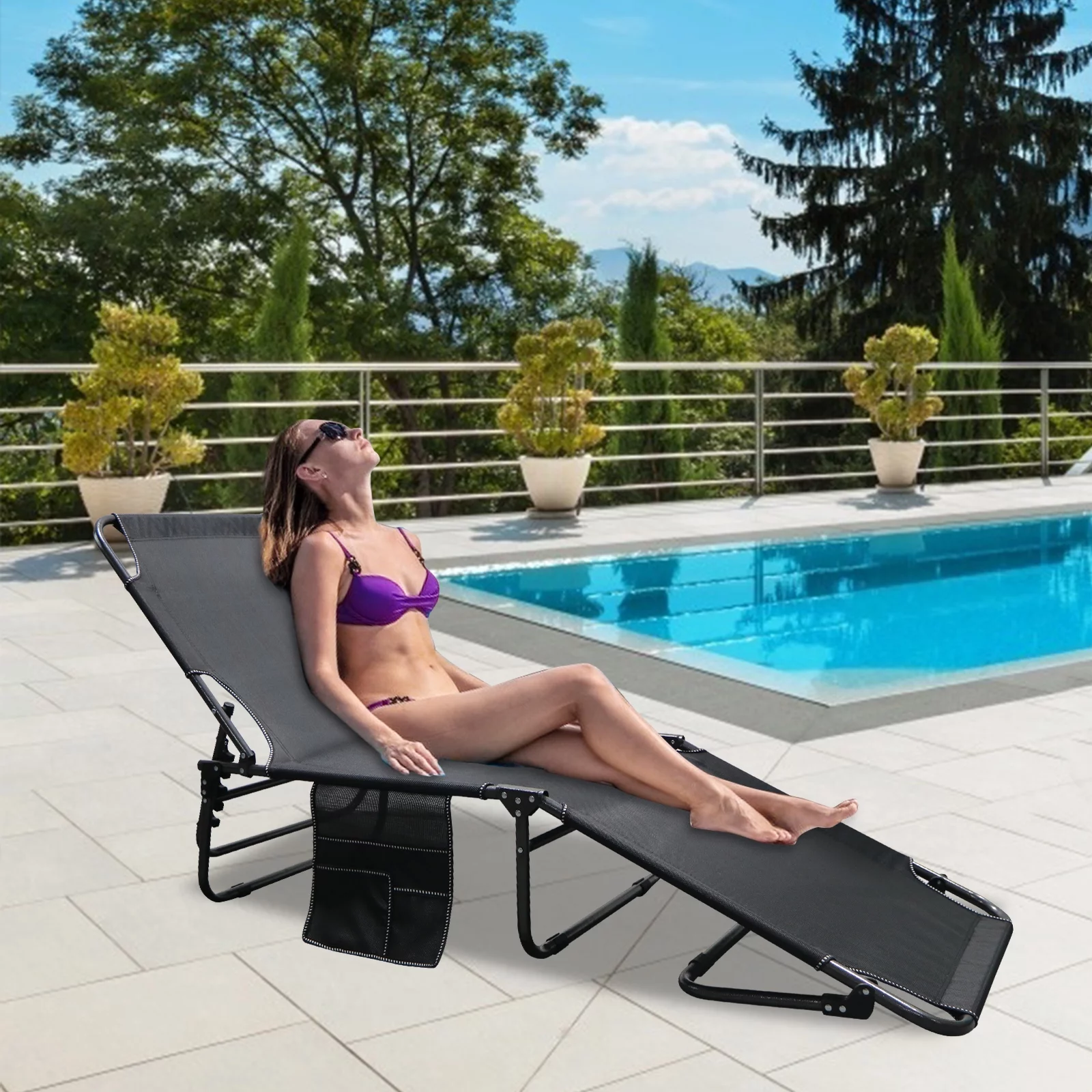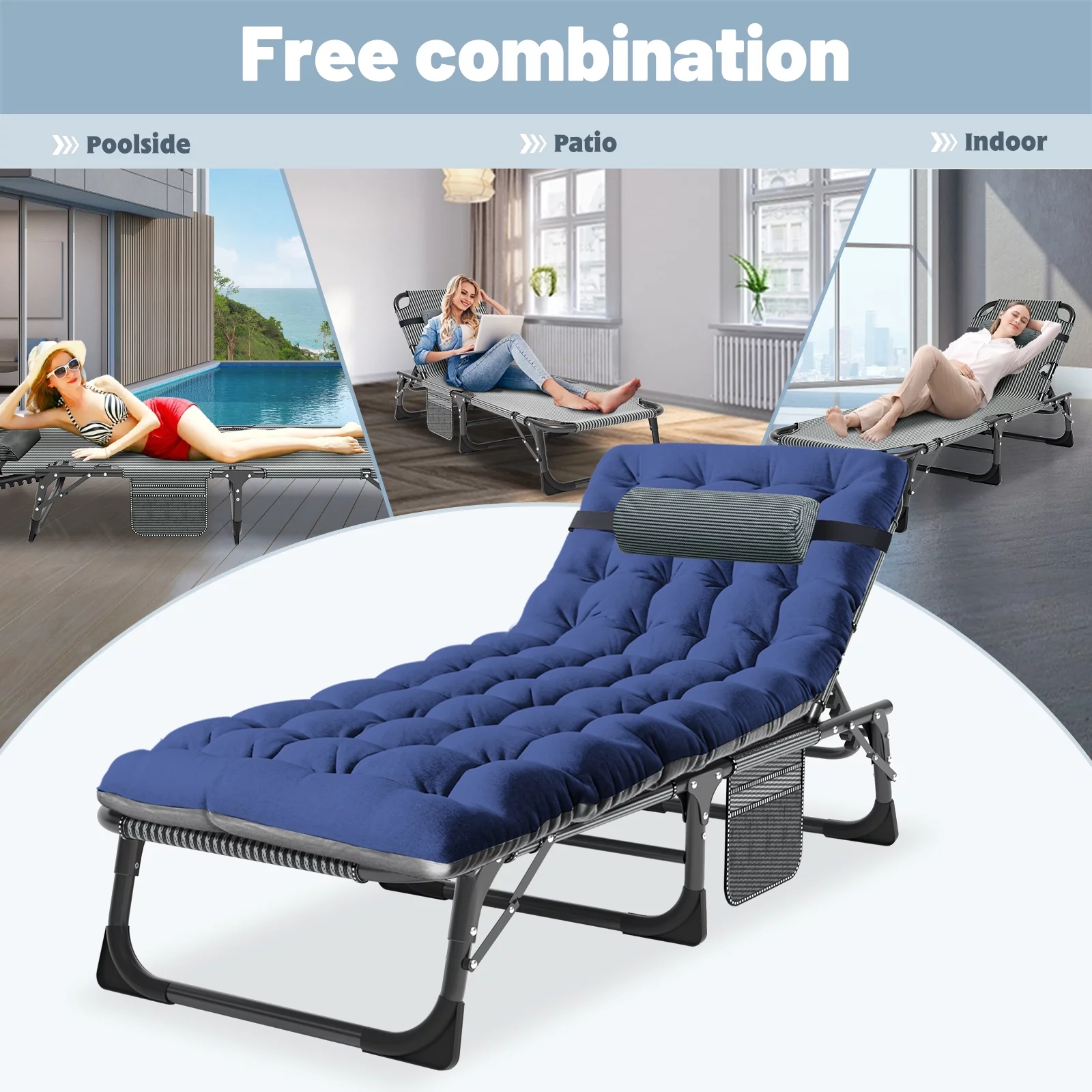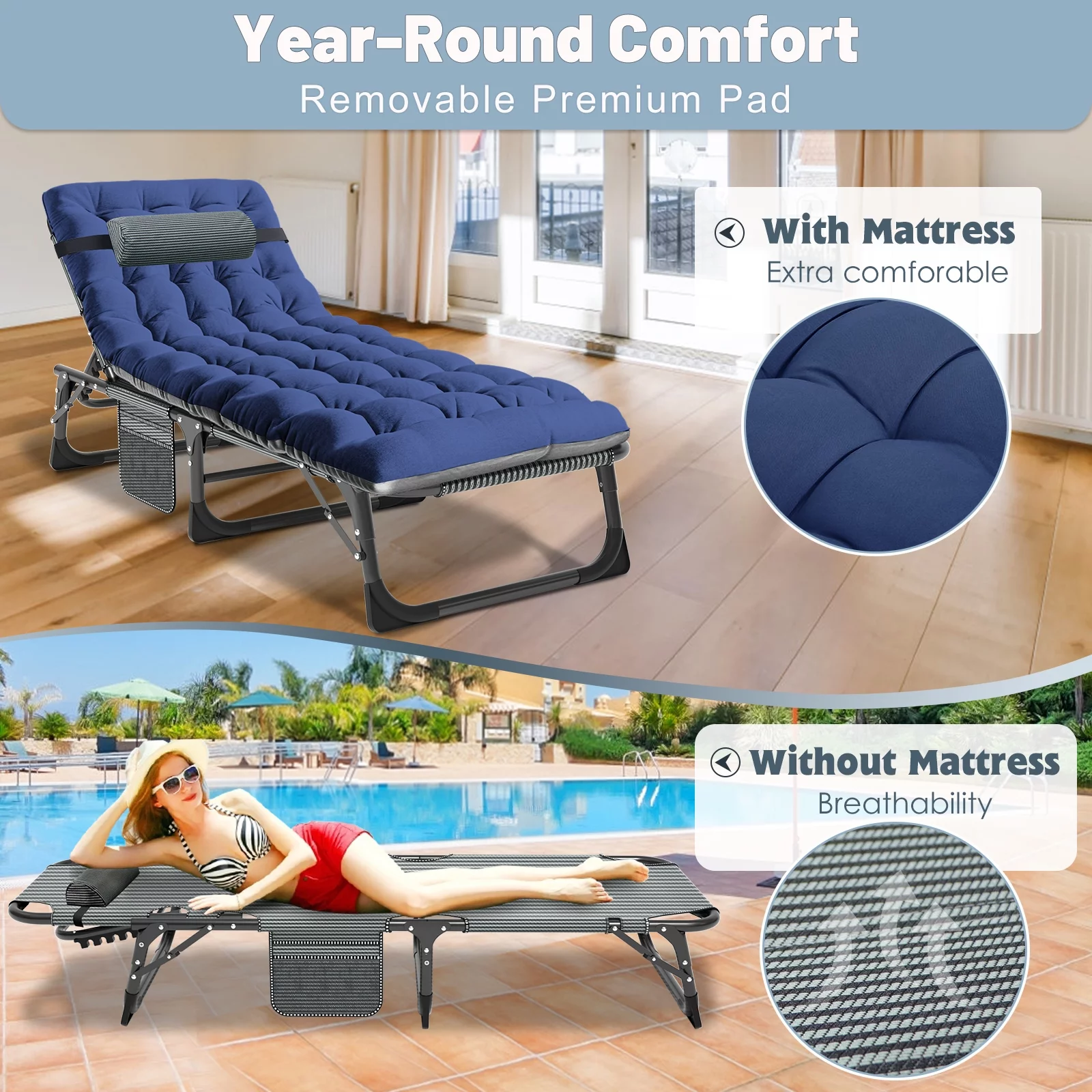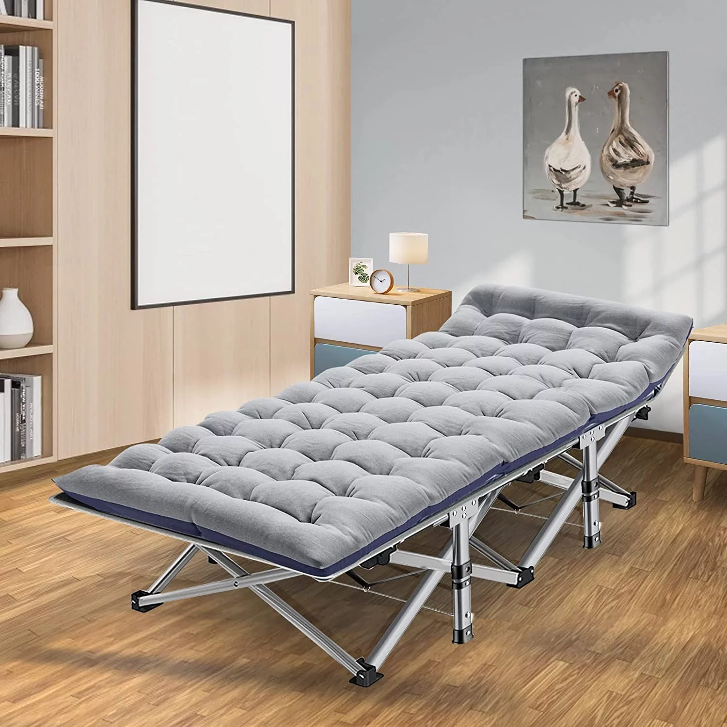 FICISOG Folding Camping Cot, Outside Adults 4-Fold Sleeping Cots with Pillow, up to 400 lbs