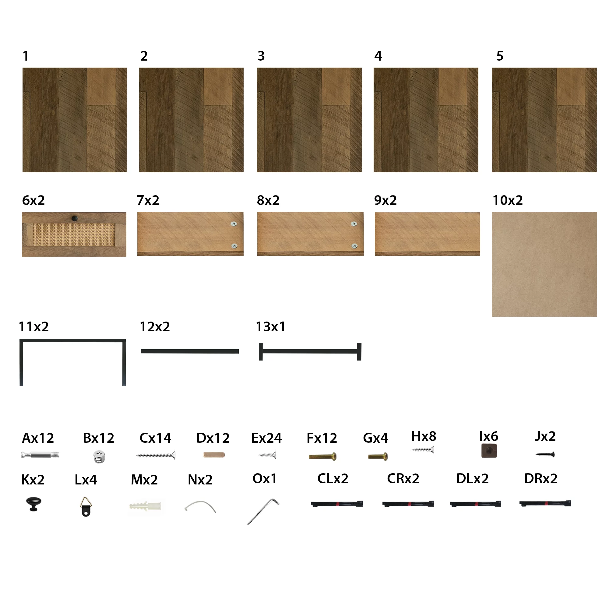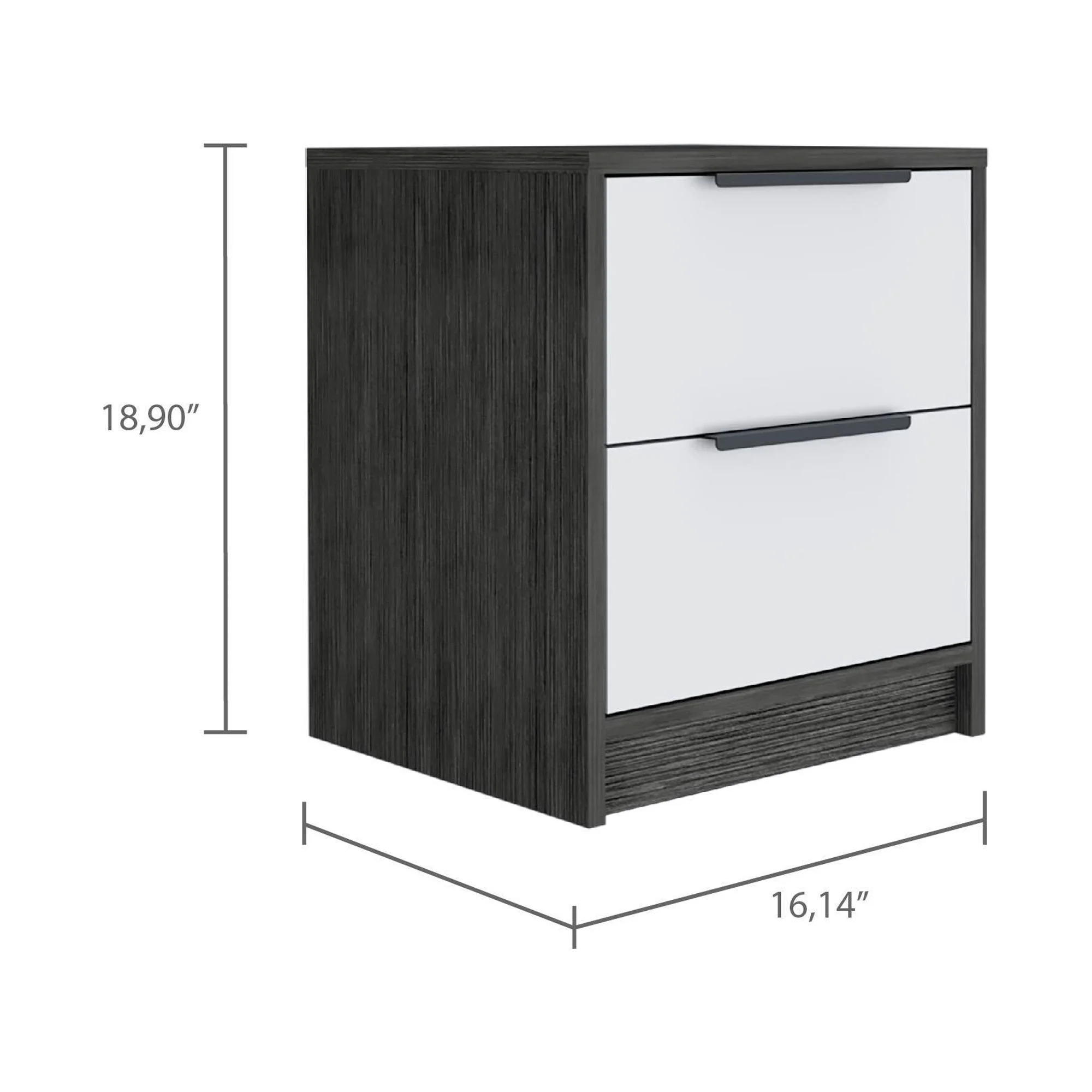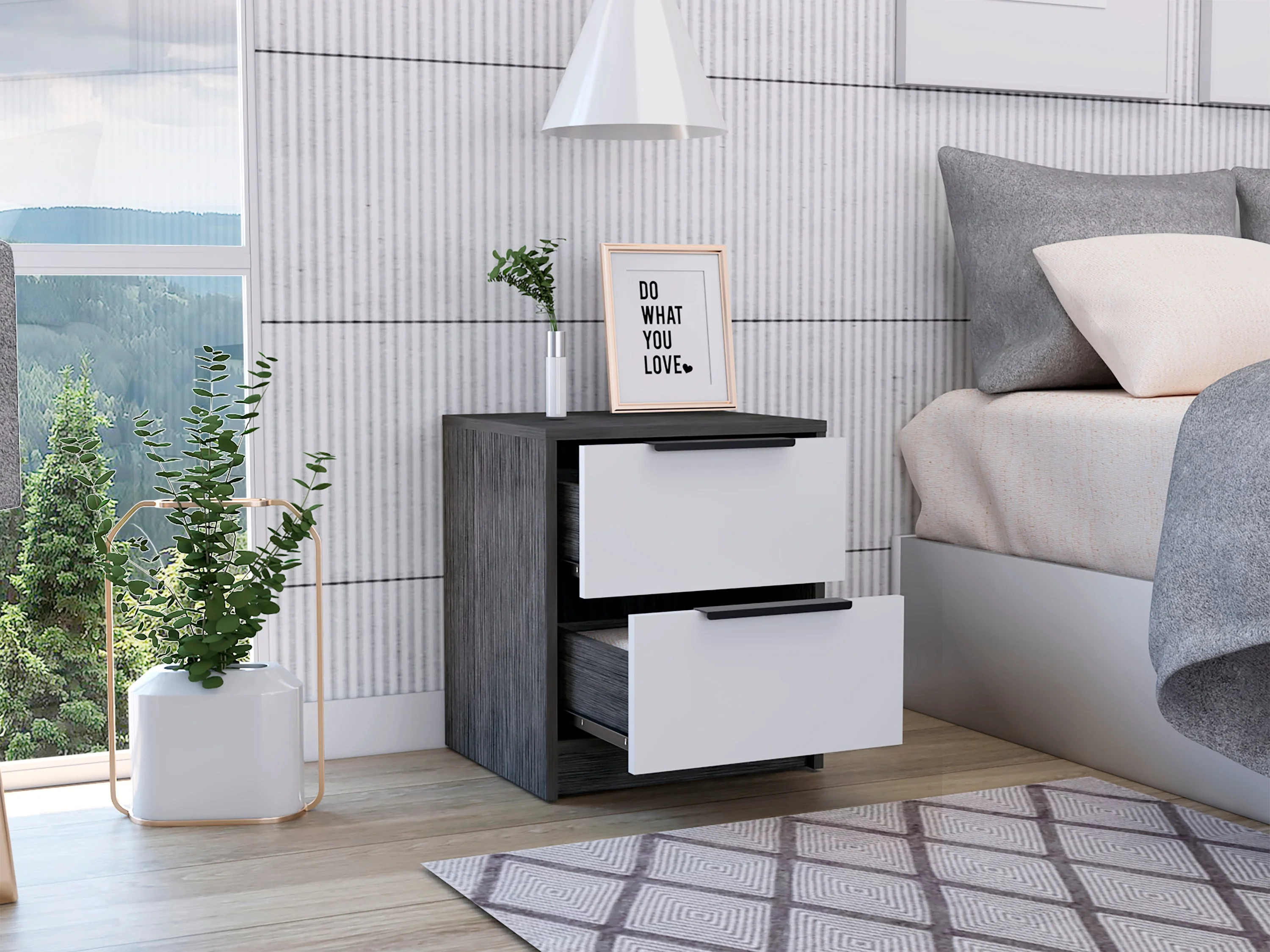 GIA Design Group 25 Inch Rattan Nightstand with 2Drawer,End Table with Black Metal Base,Mix Oak