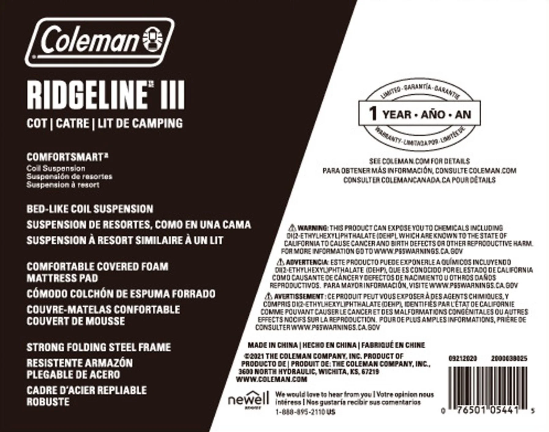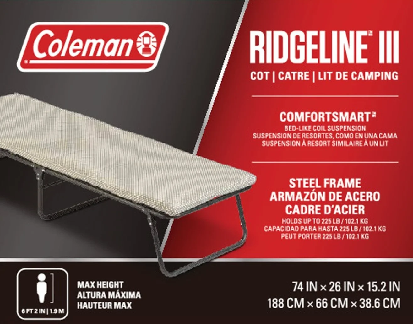 Coleman Ridgeline Camping Cot with Foam Sleeping Pad, 26 x 13 x 75 in, Green