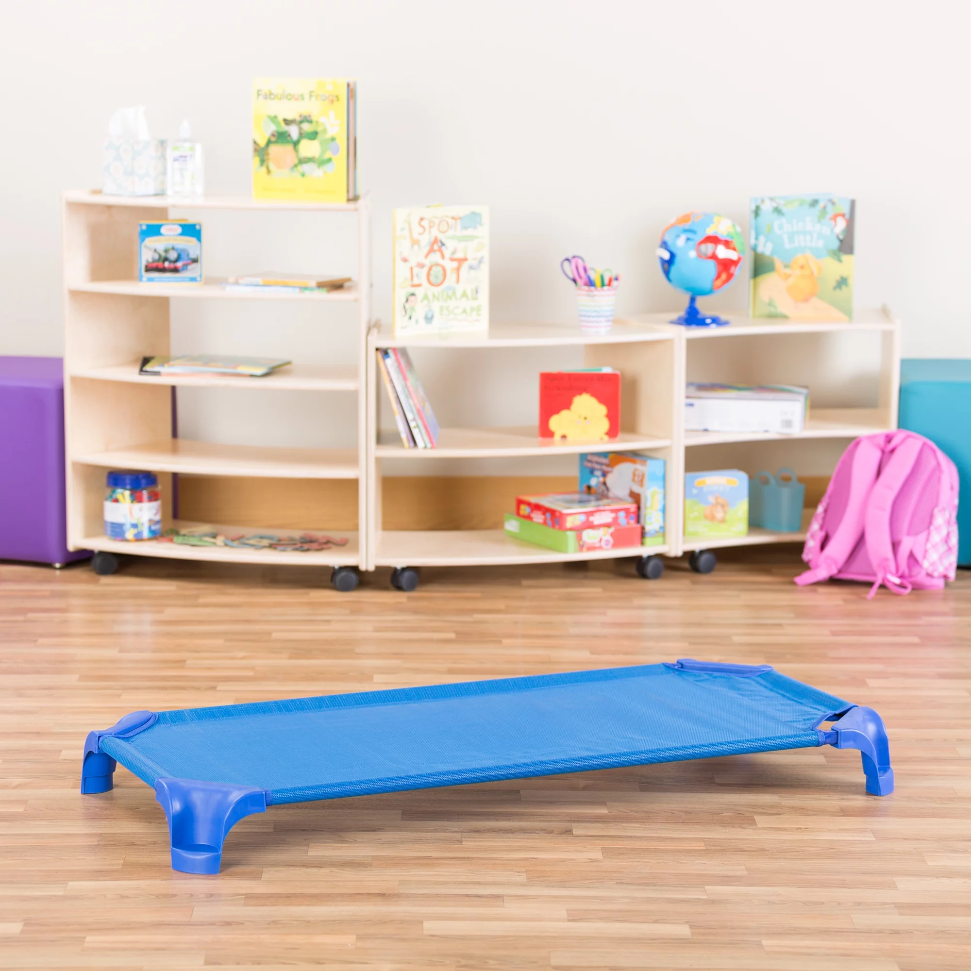 Sprogs Deluxe Heavy-Duty Stackable Daycare Naptime Cots with Easy Lift Corners - Toddler 40'' L, 6-Pack - Blue