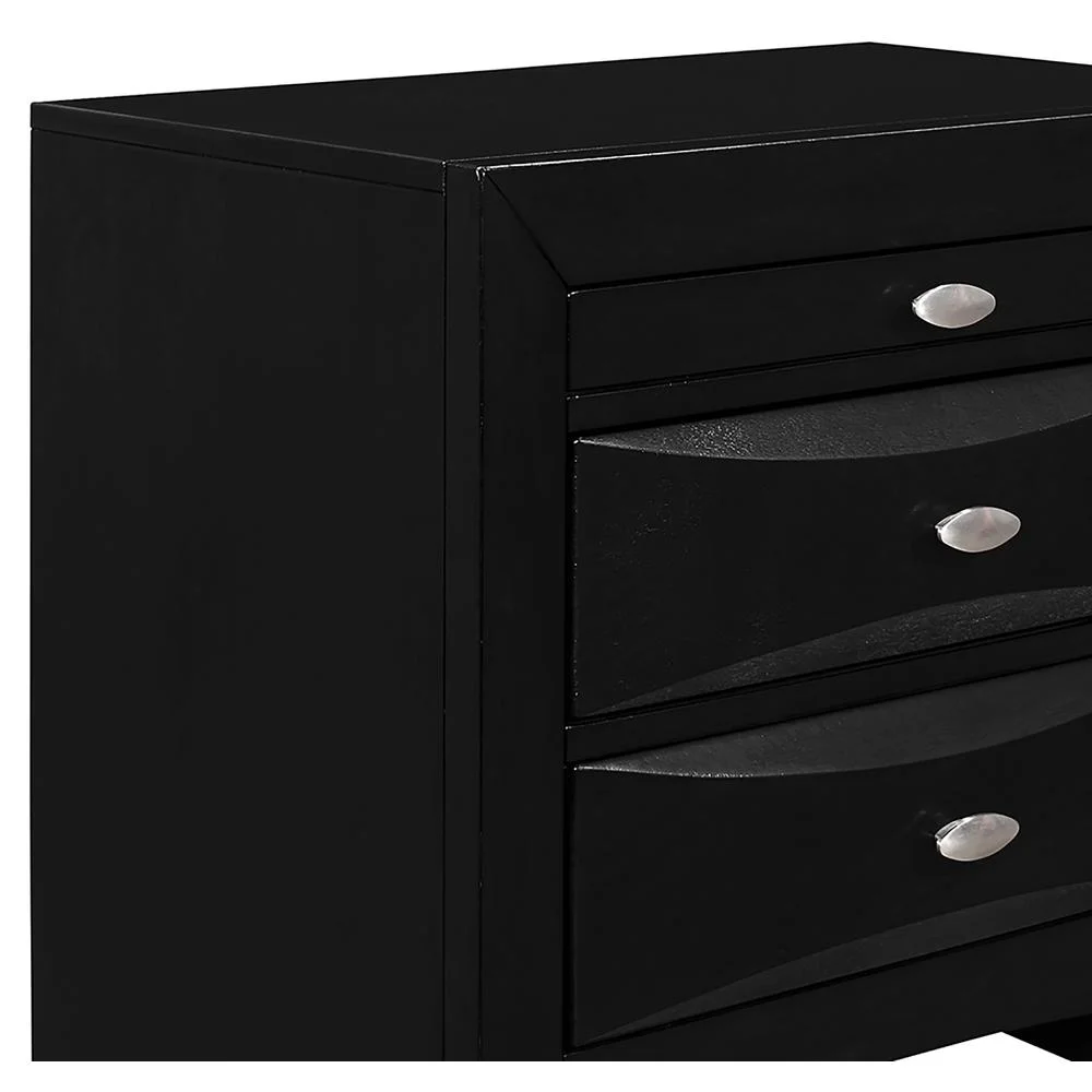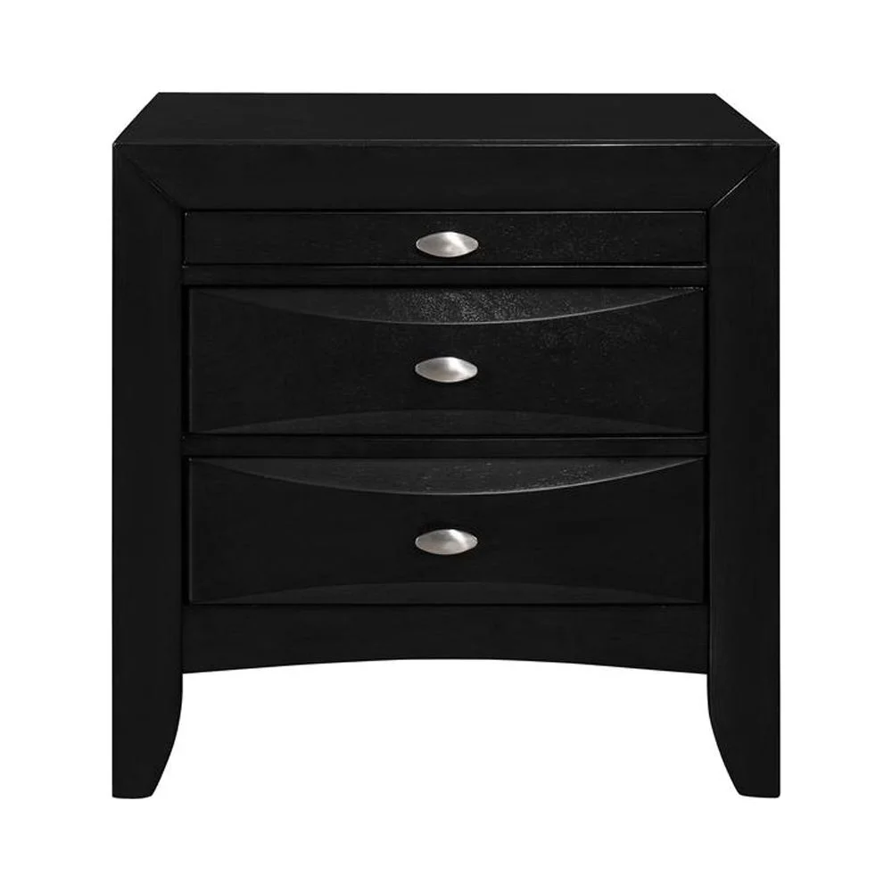 Miri 25 Inch 3 Drawer Nightstand, Brass Carved Accents, Cherry Oak Brown