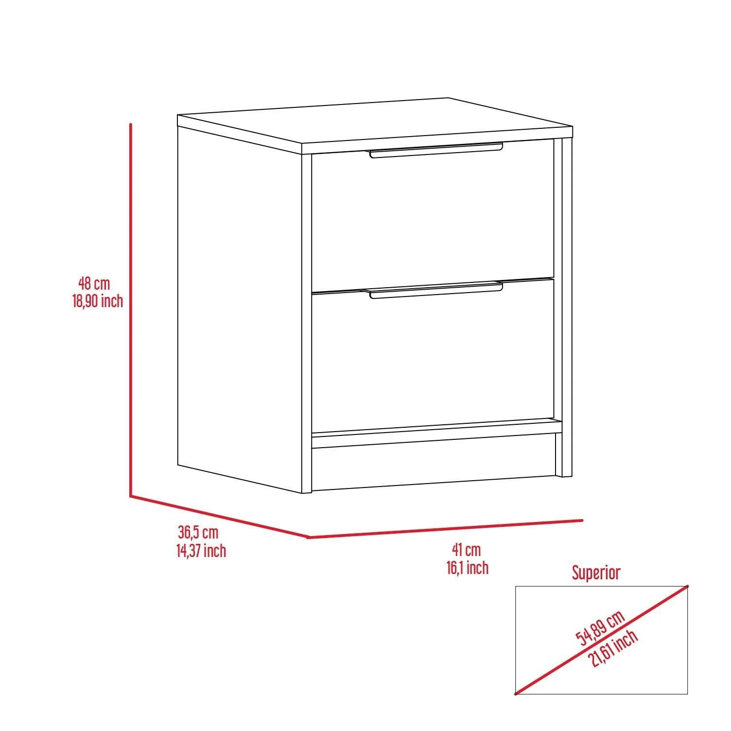 Ras 26 Inch 2 Drawer Nightstand, Felt Lined, 2 USB Ports, Walnut Brown