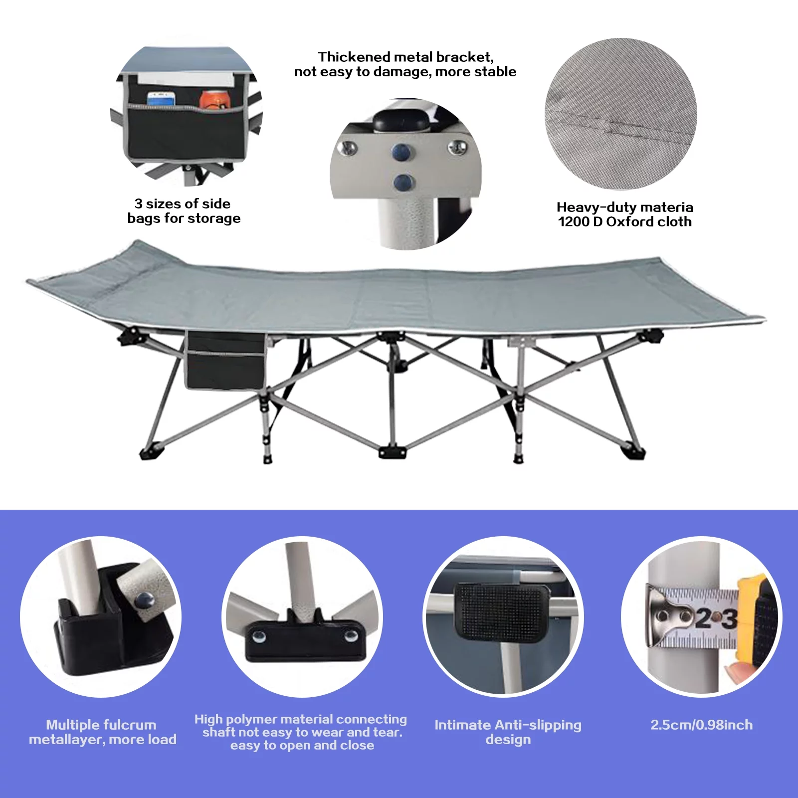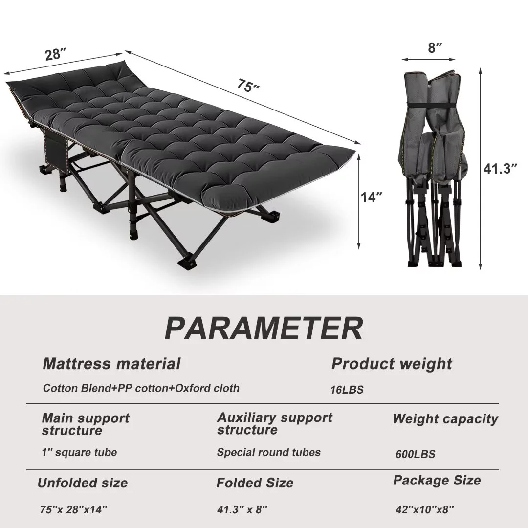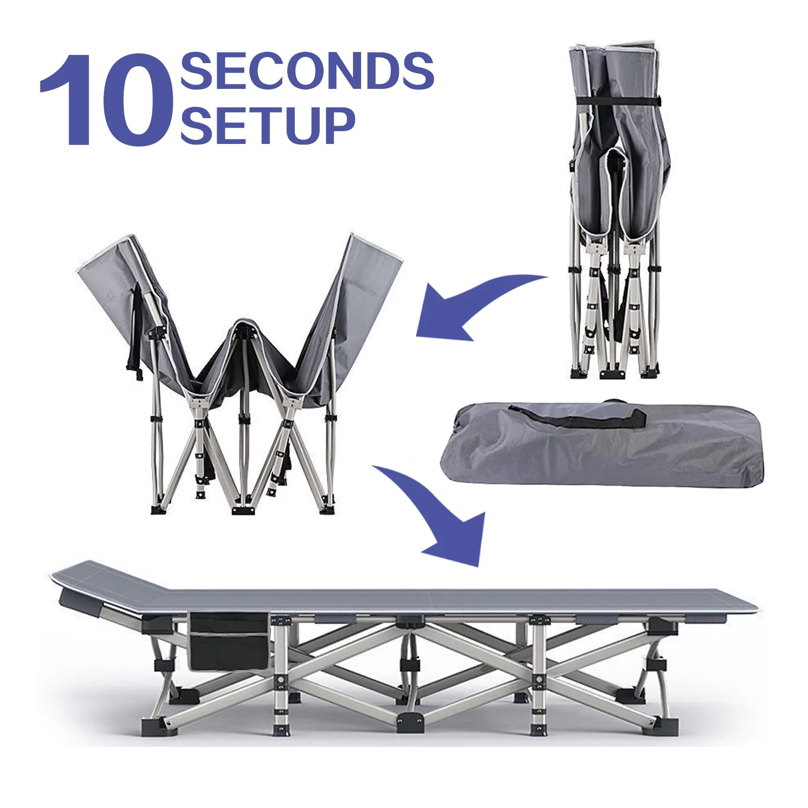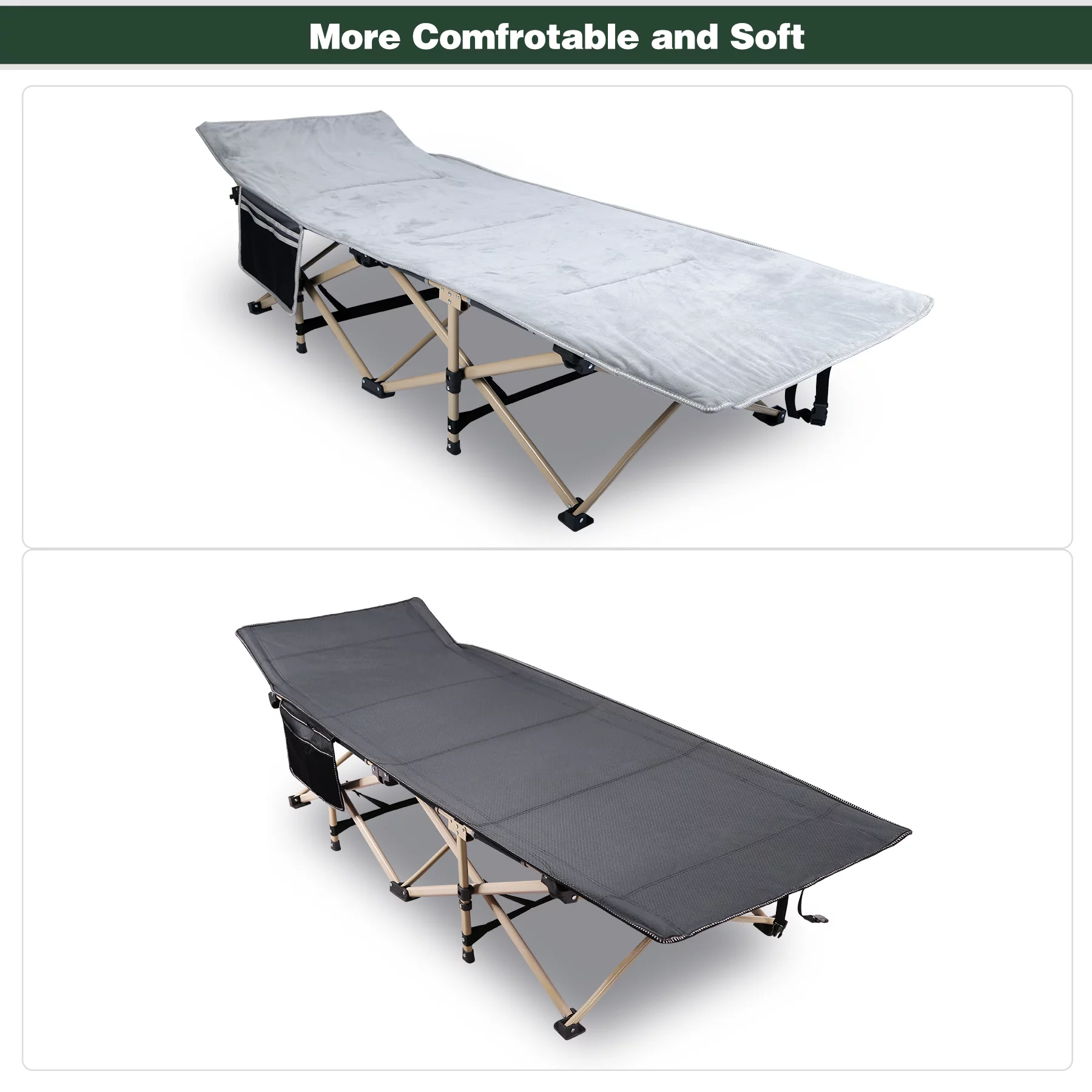 SUGIFT 2 Pack Camping cot for Adults 75x28 inch Portable Cot with Mattress, Supports 450 lbs, Gray Blue