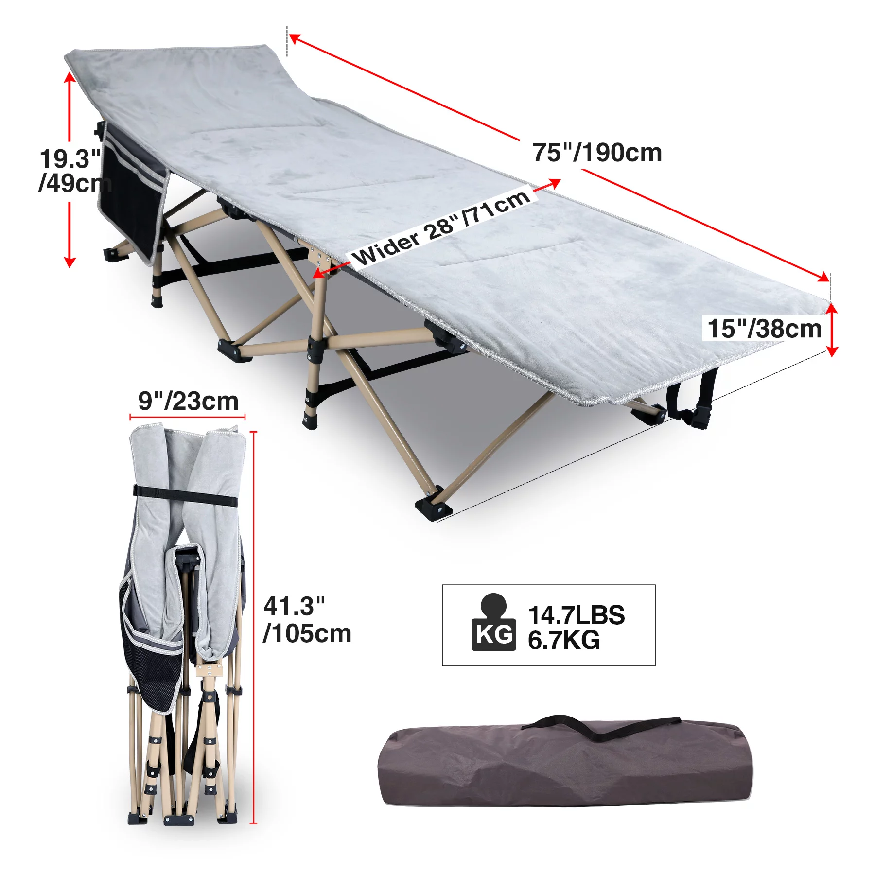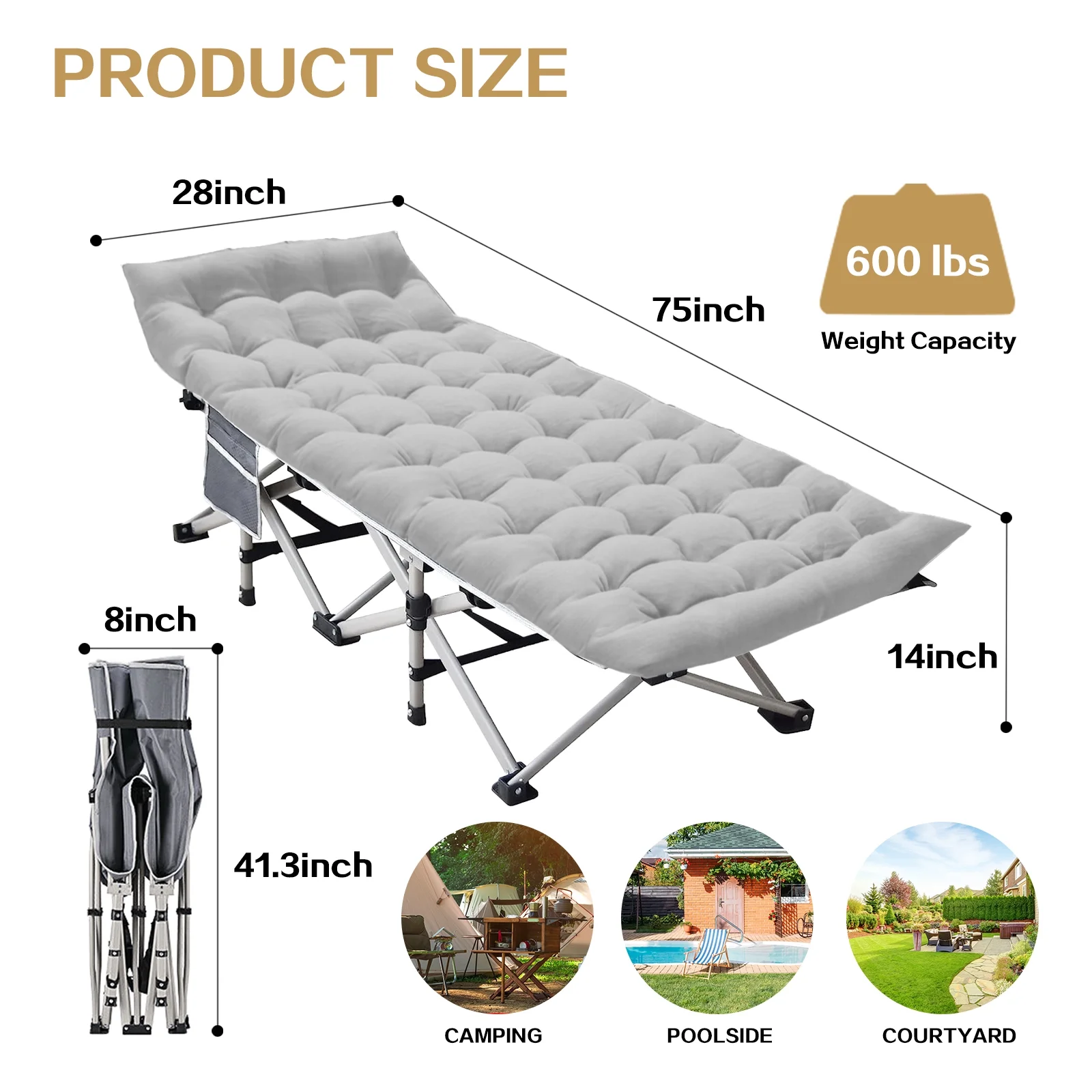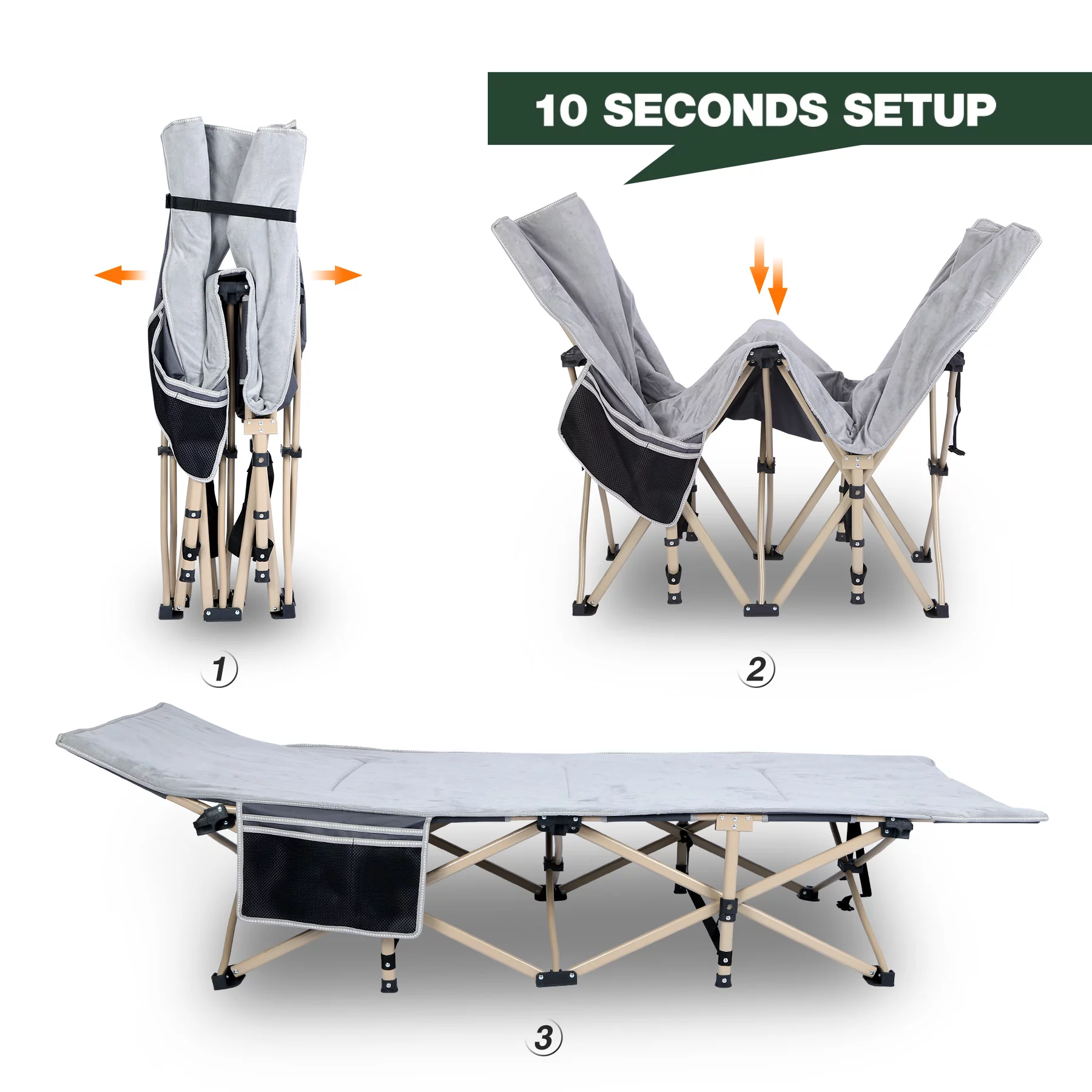 SUGIFT 2 Pack Camping cot for Adults 75x28 inch Portable Cot with Mattress, Supports 450 lbs, Gray Blue
