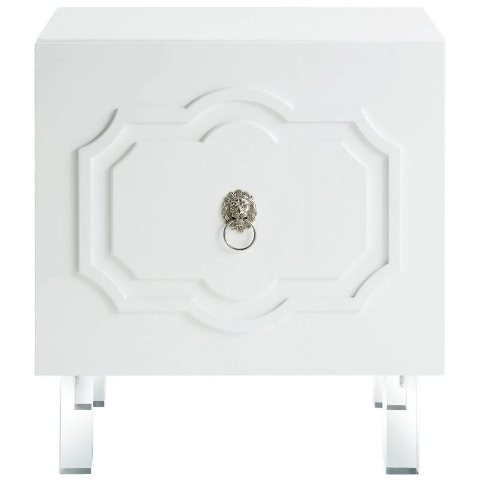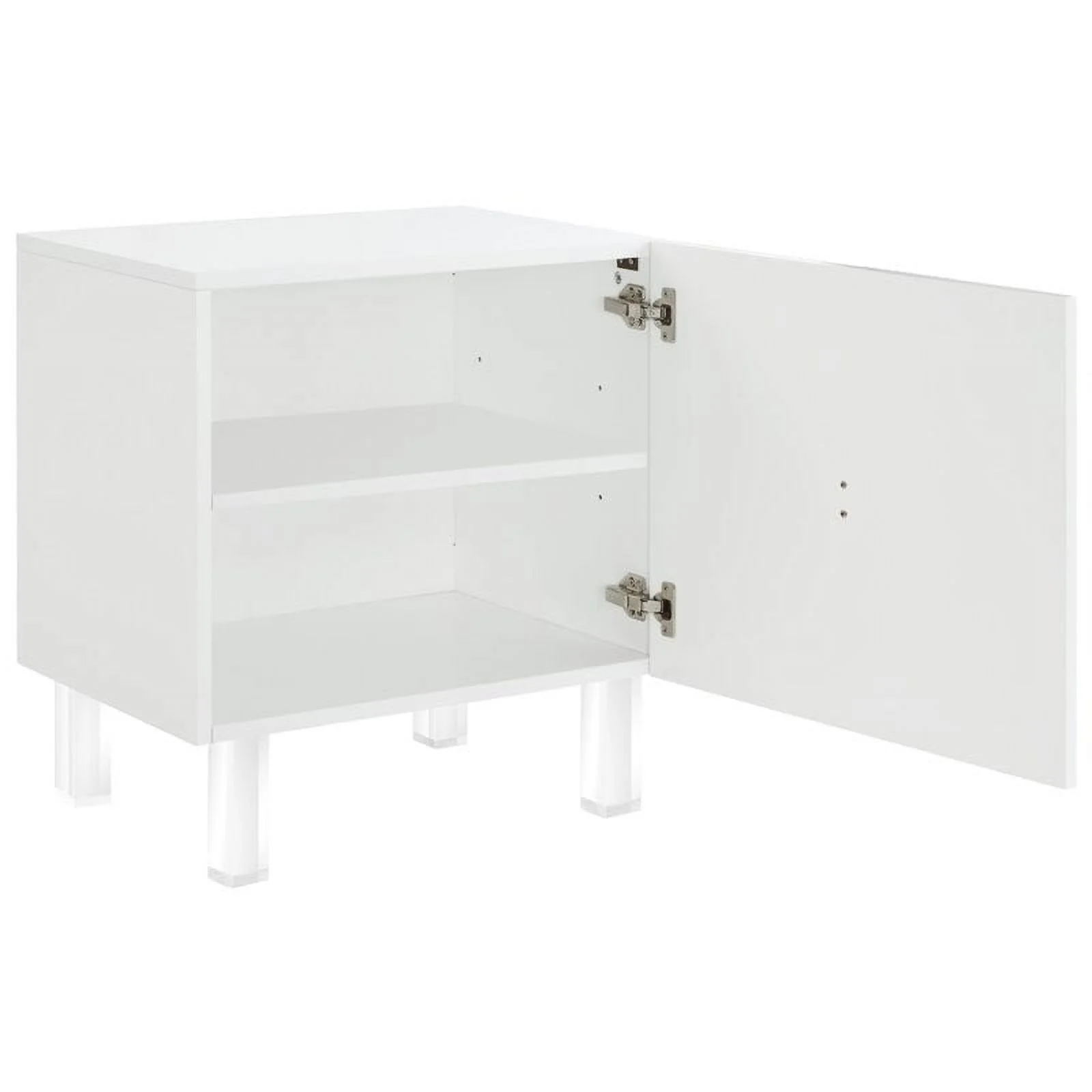 Posh Living Mackenzie 2-Hidden Shelf Nighstand with Lucite Legs in White