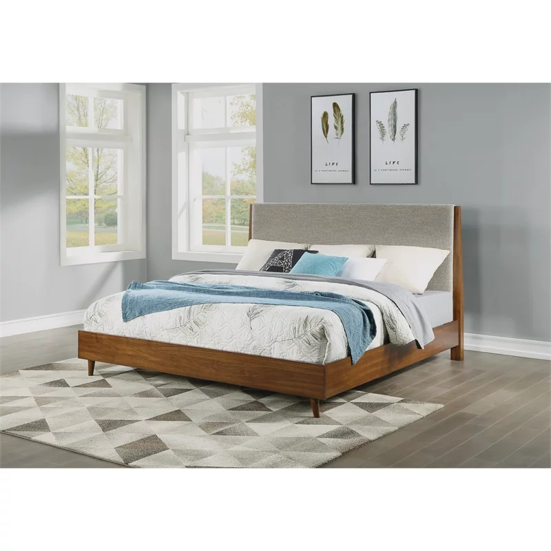 Modern Contemporary Urban Design Three PCS Queen Size Bedroom Bed Set, Grey Gray, Fabric Wood