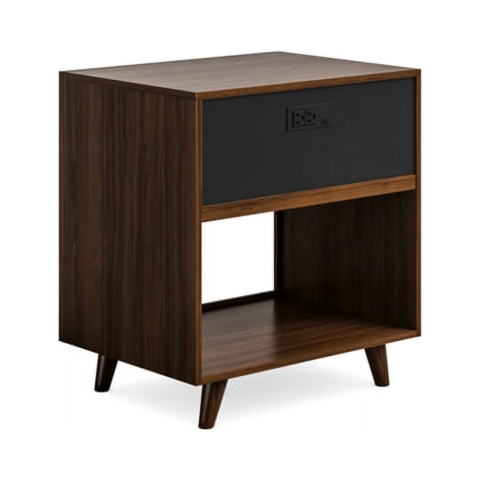 J & M Furniture 18772-NS 22.5 x 24 x 16 in. Travertine Night Stand, Dark Oak & Gray - Bronze Marble