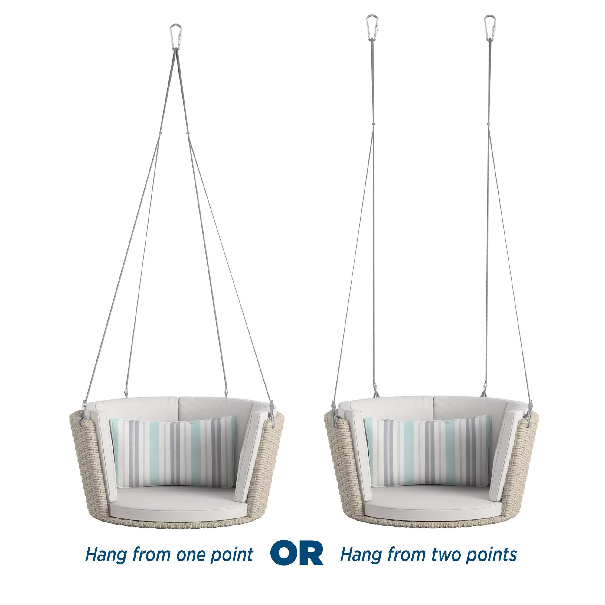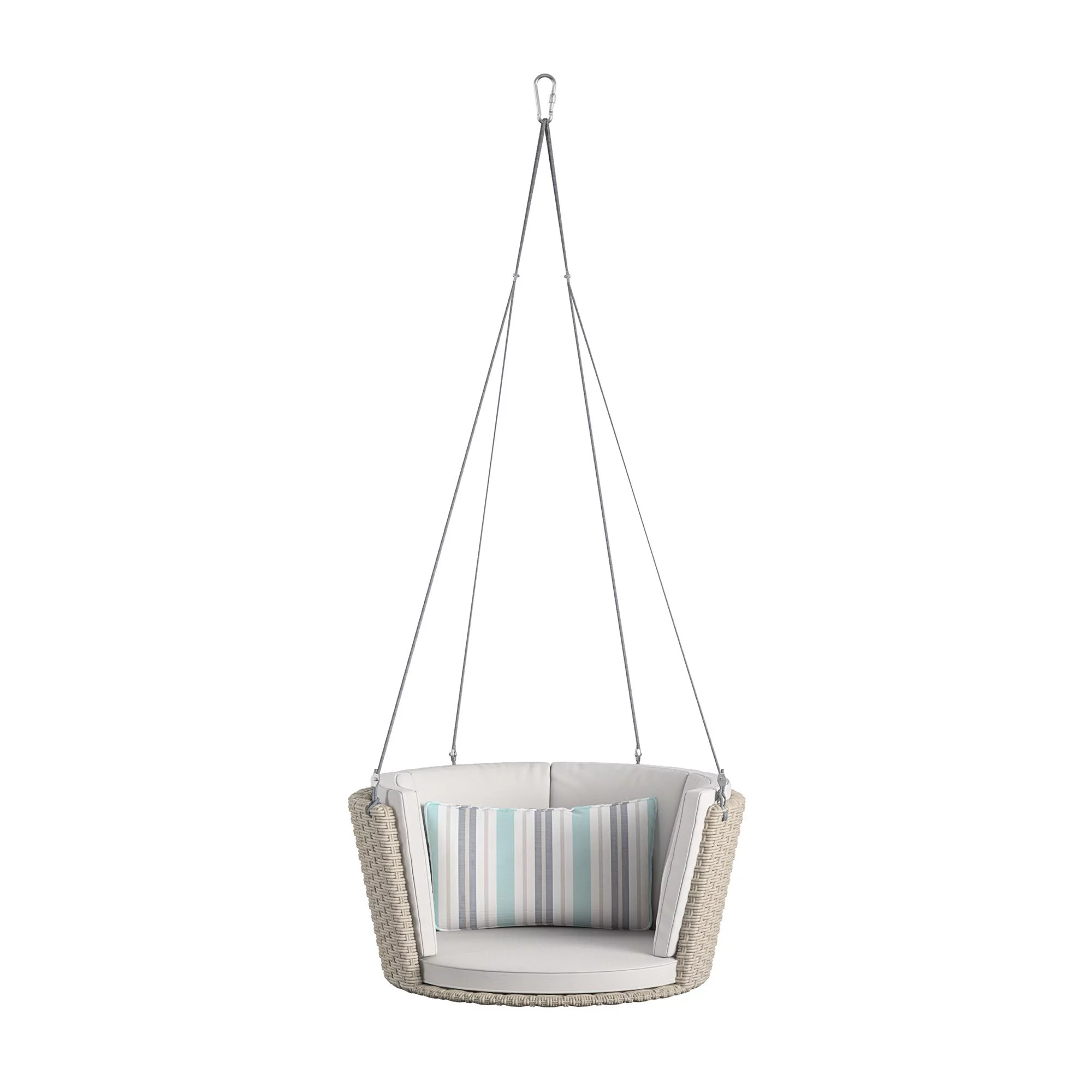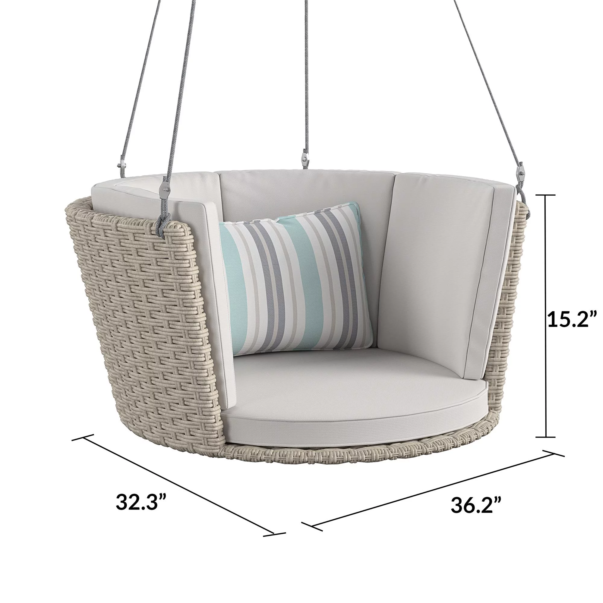 Novogratz Poolside Gossip Collection, Sally Patio Swing, Harbor Grey Cushions, Light Taupe Wicker