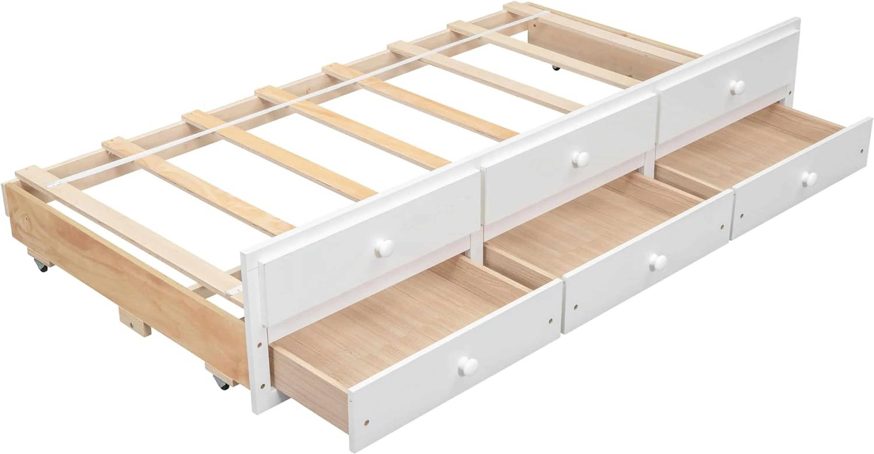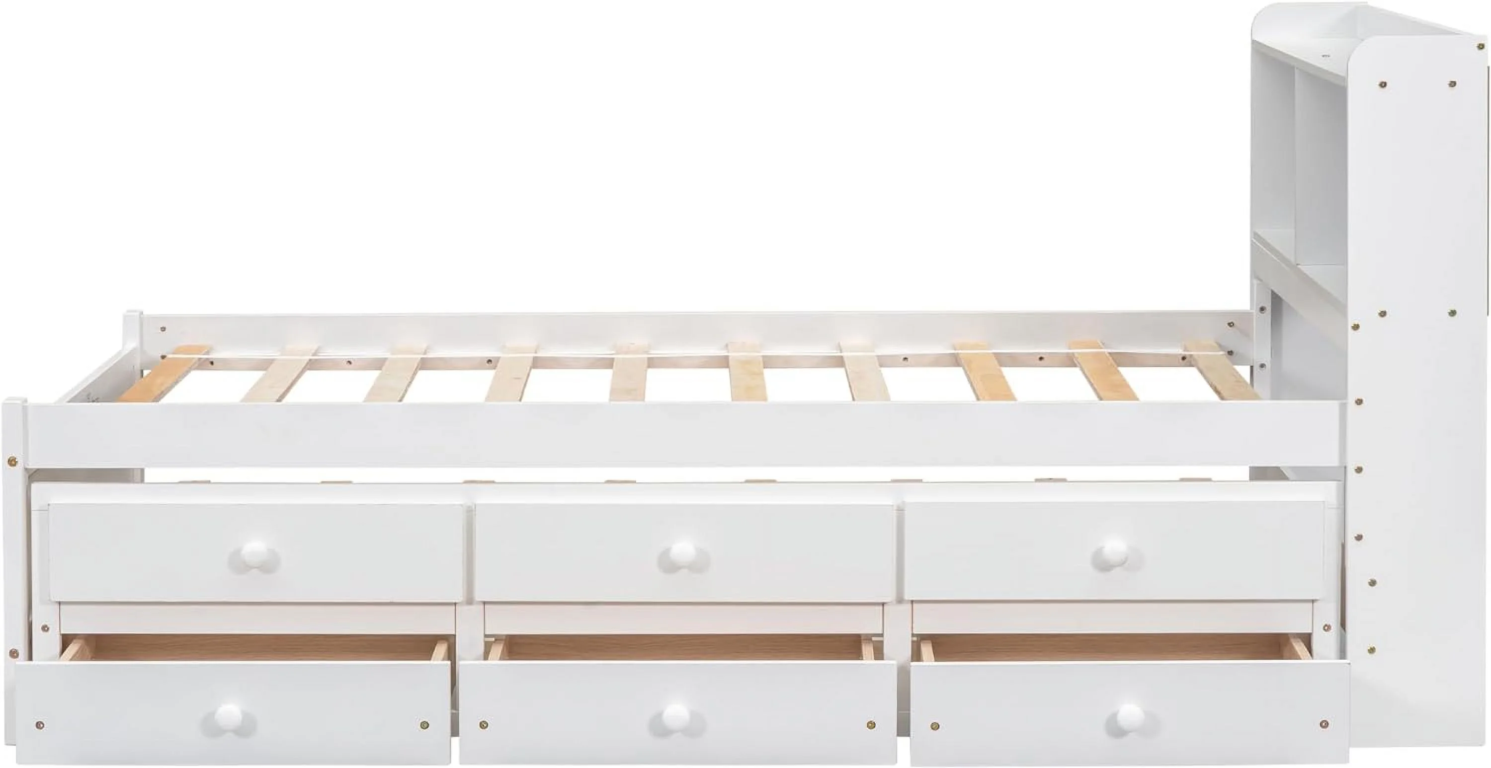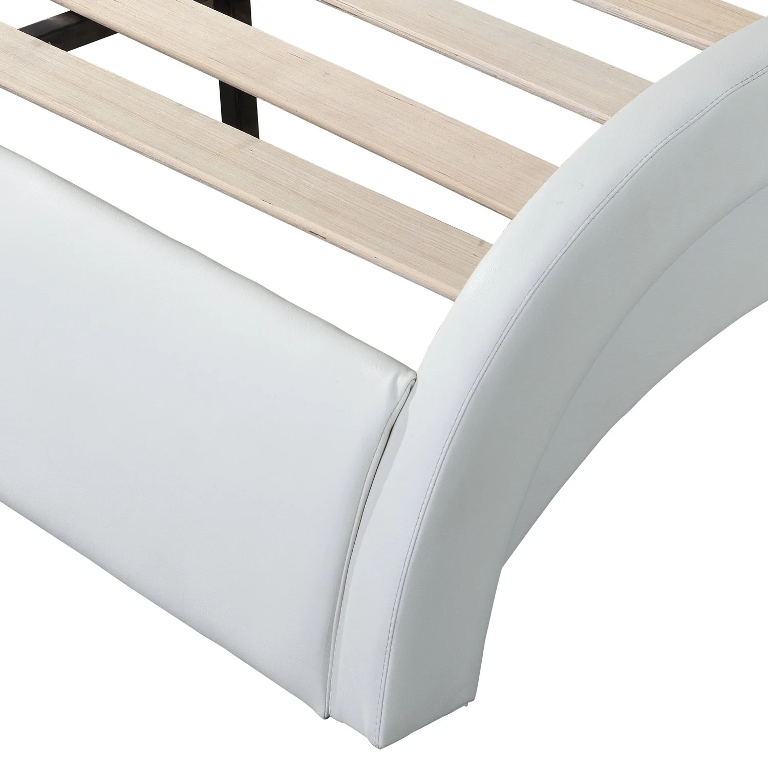 Modern Multifuntional Queen Size Faux Leather Upholstered Platform Bed with Curved Design and Wood Slat Support, White