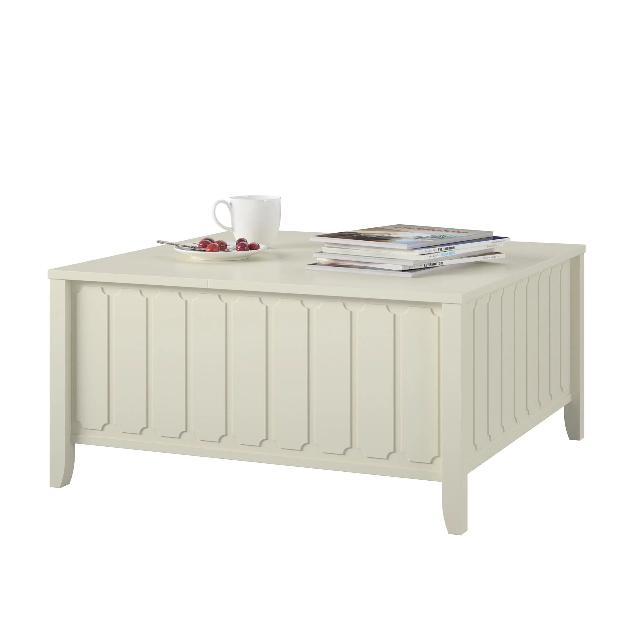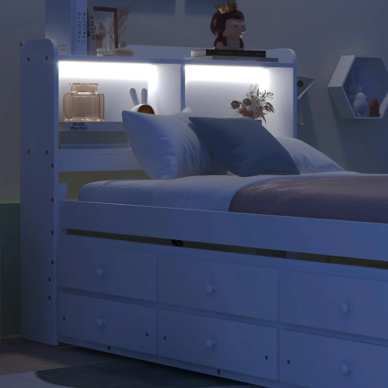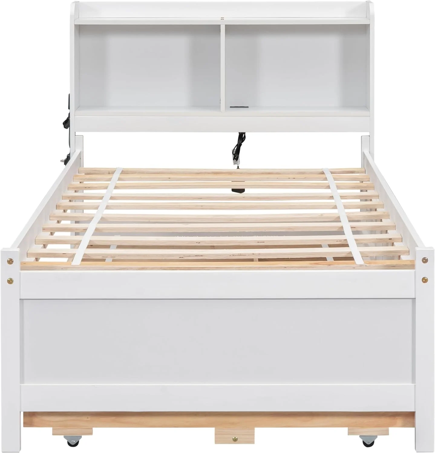 Modern Multifuntional Queen Size Faux Leather Upholstered Platform Bed with Curved Design and Wood Slat Support, White