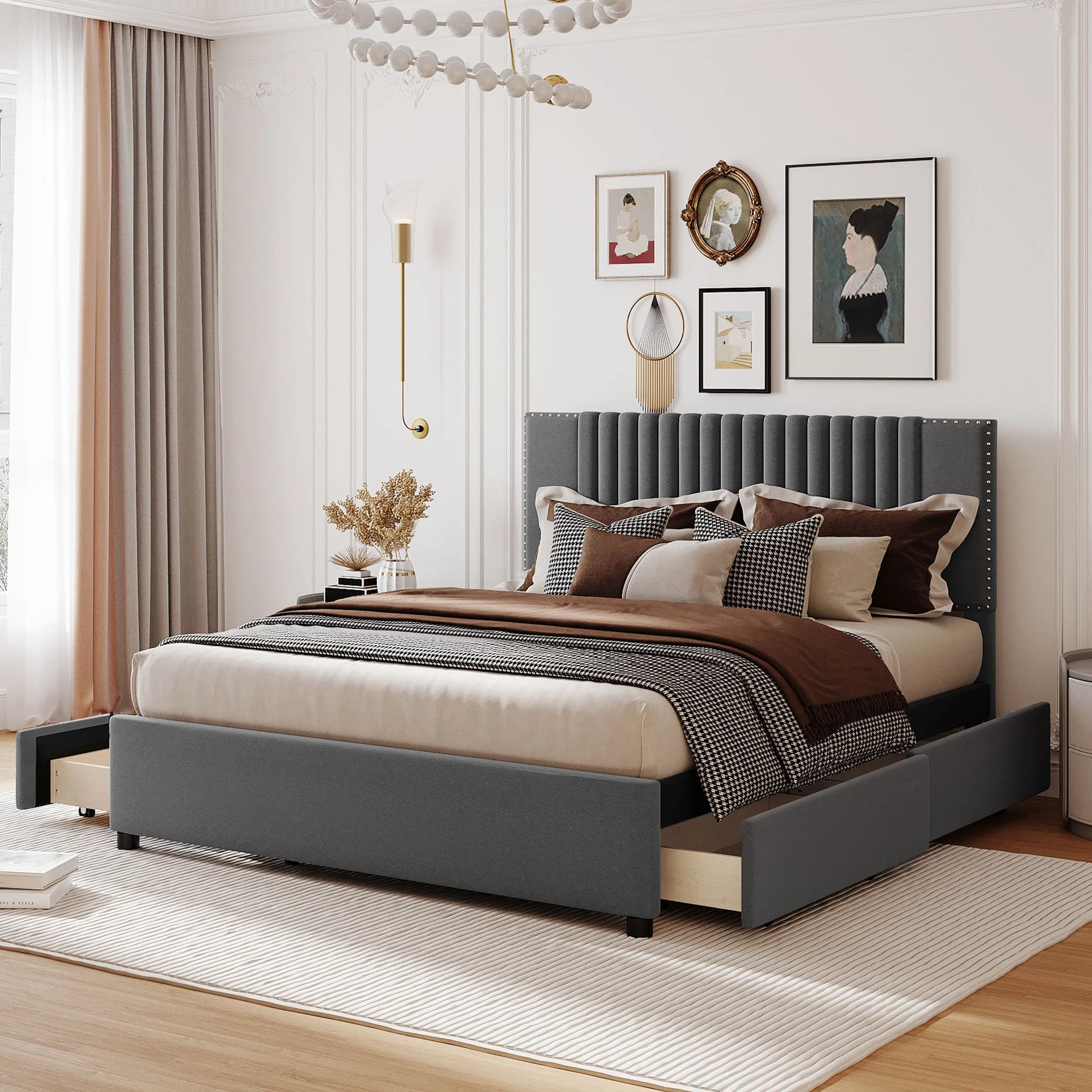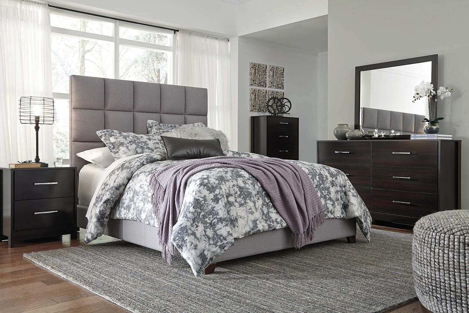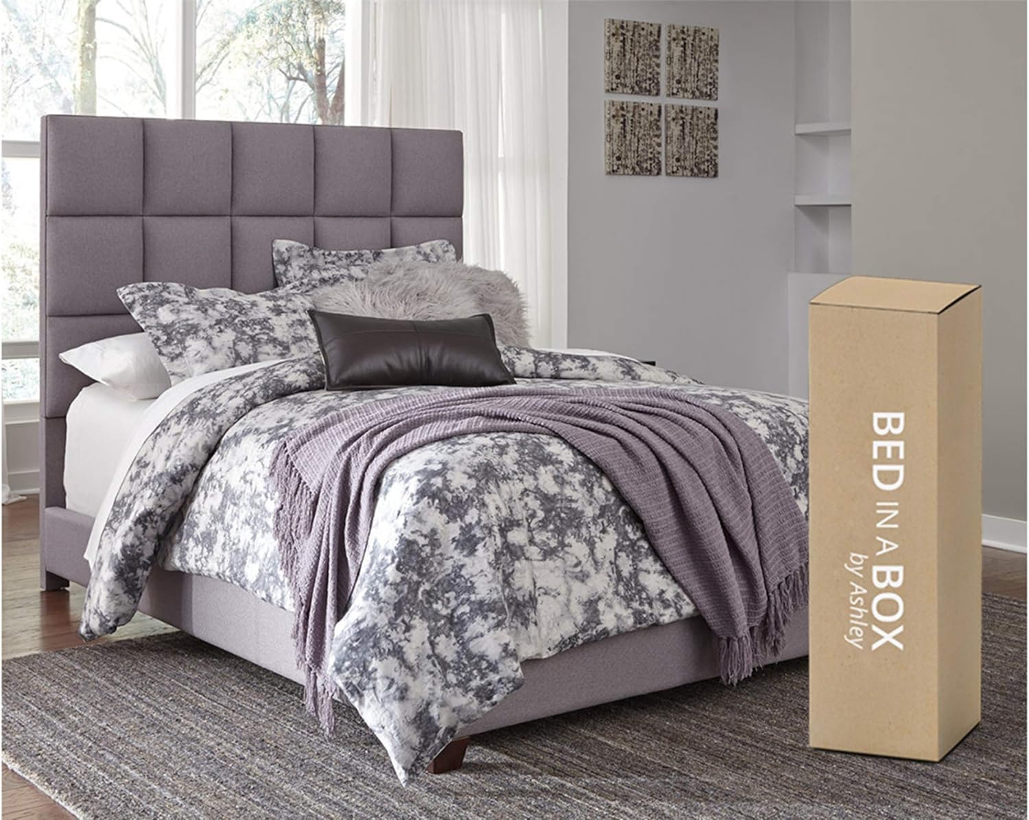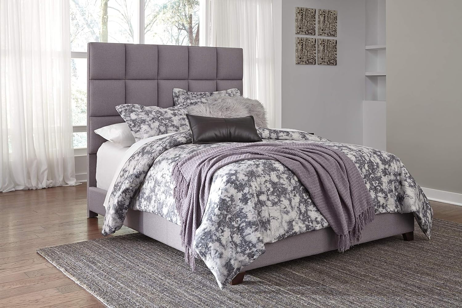 YINCHEN Dolante Modern Upholstered Square Tufted Platform Bed, King, Gray