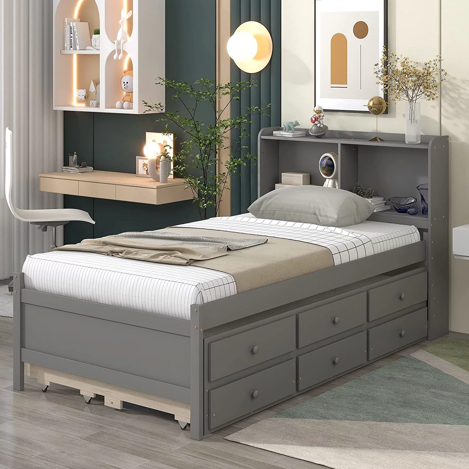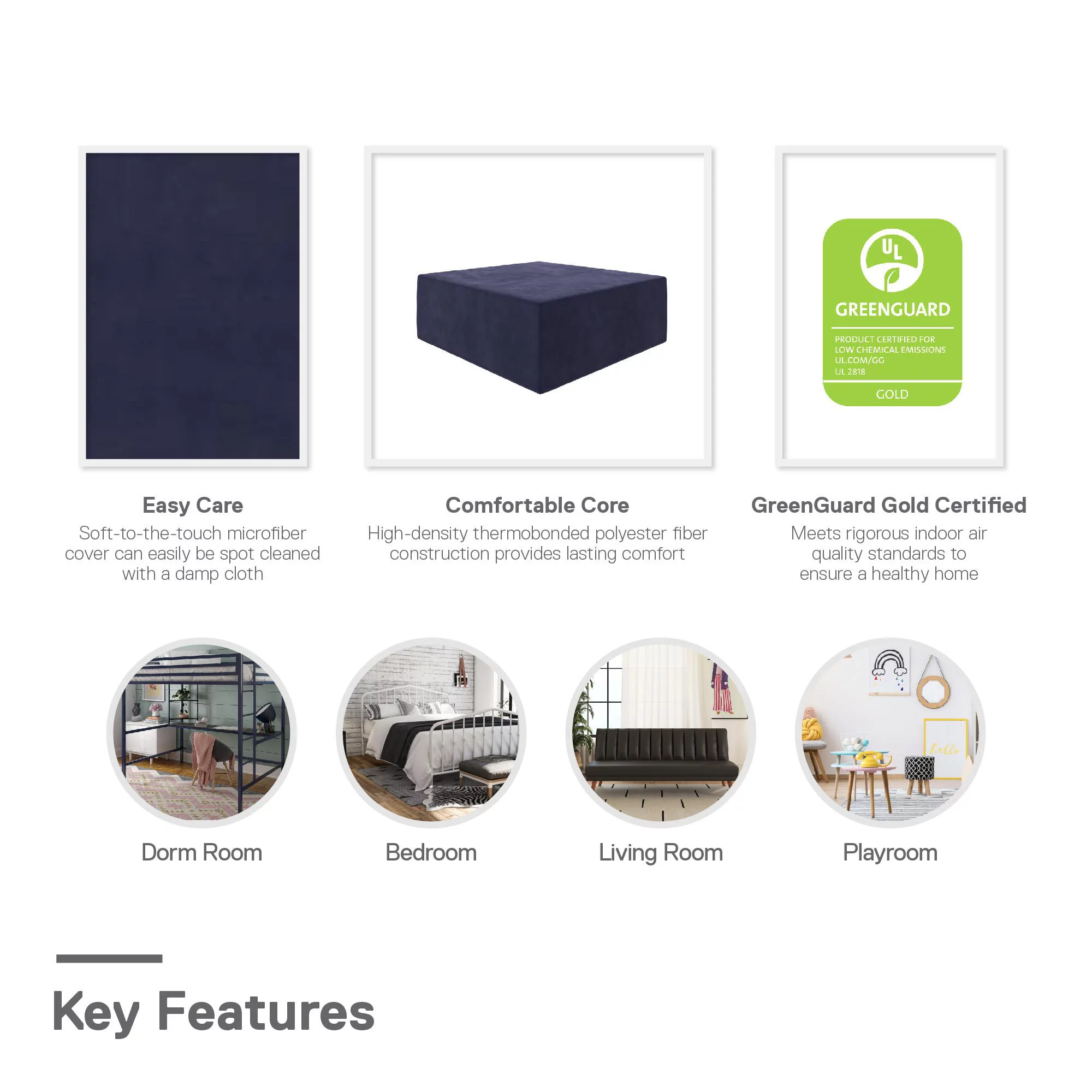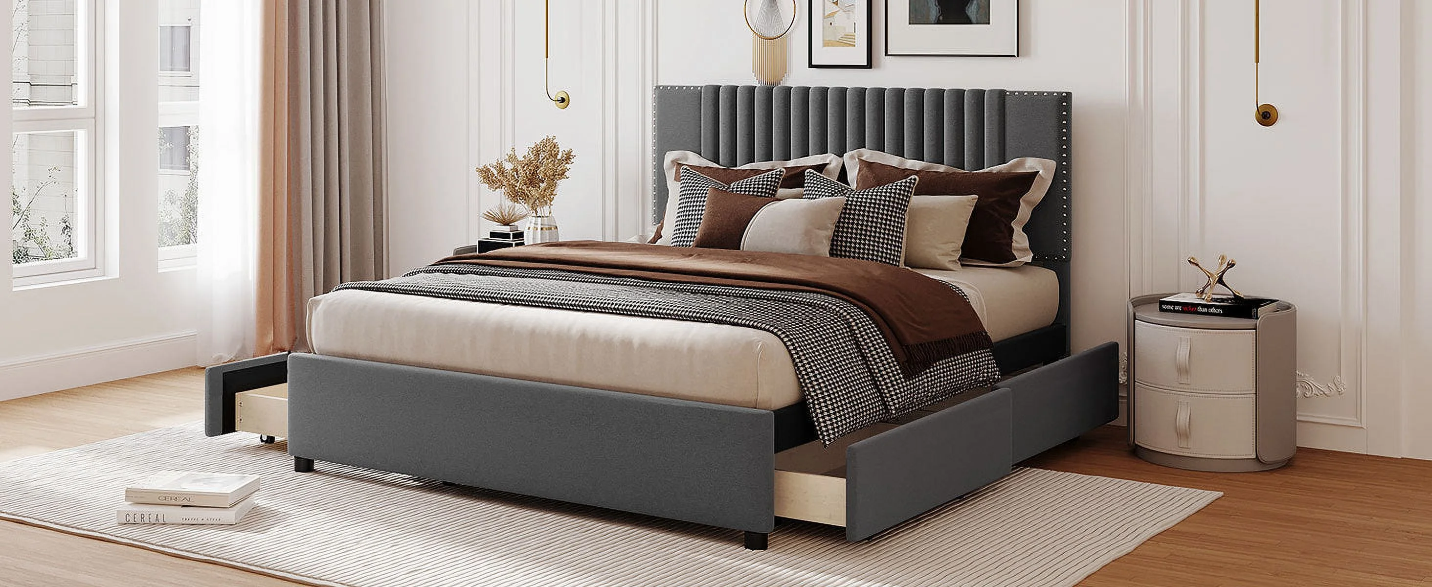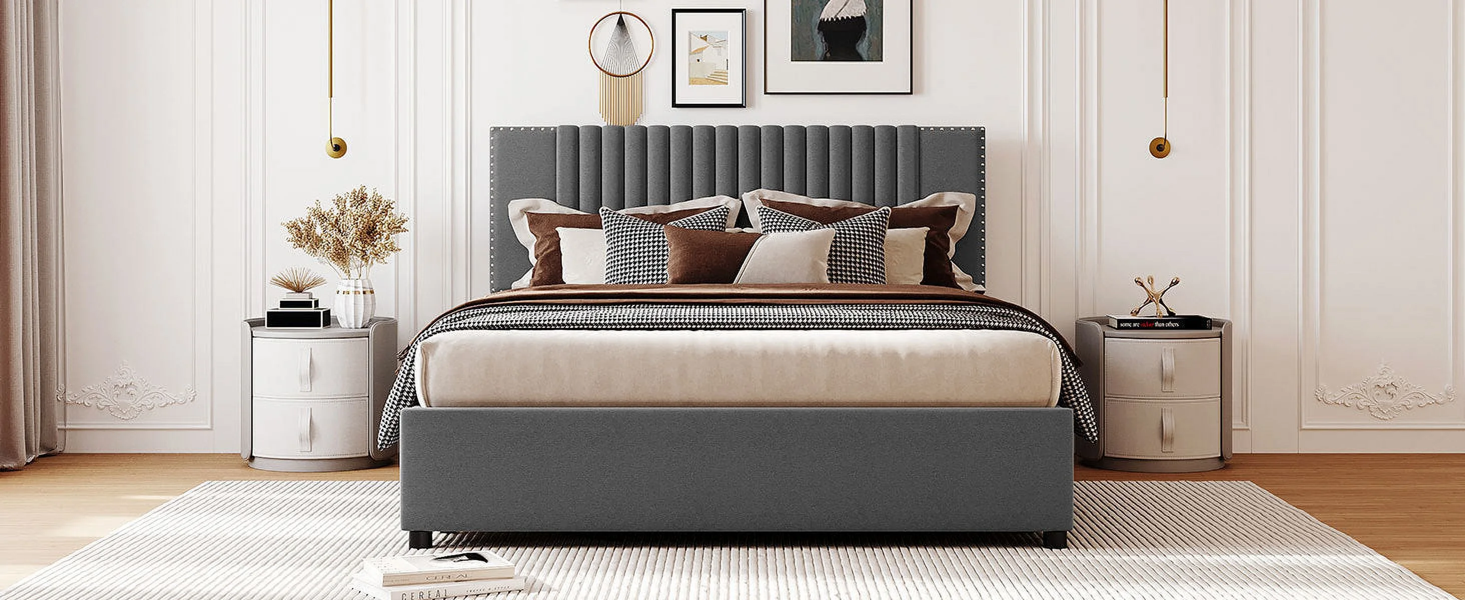 YINCHEN Dolante Modern Upholstered Square Tufted Platform Bed, King, Gray