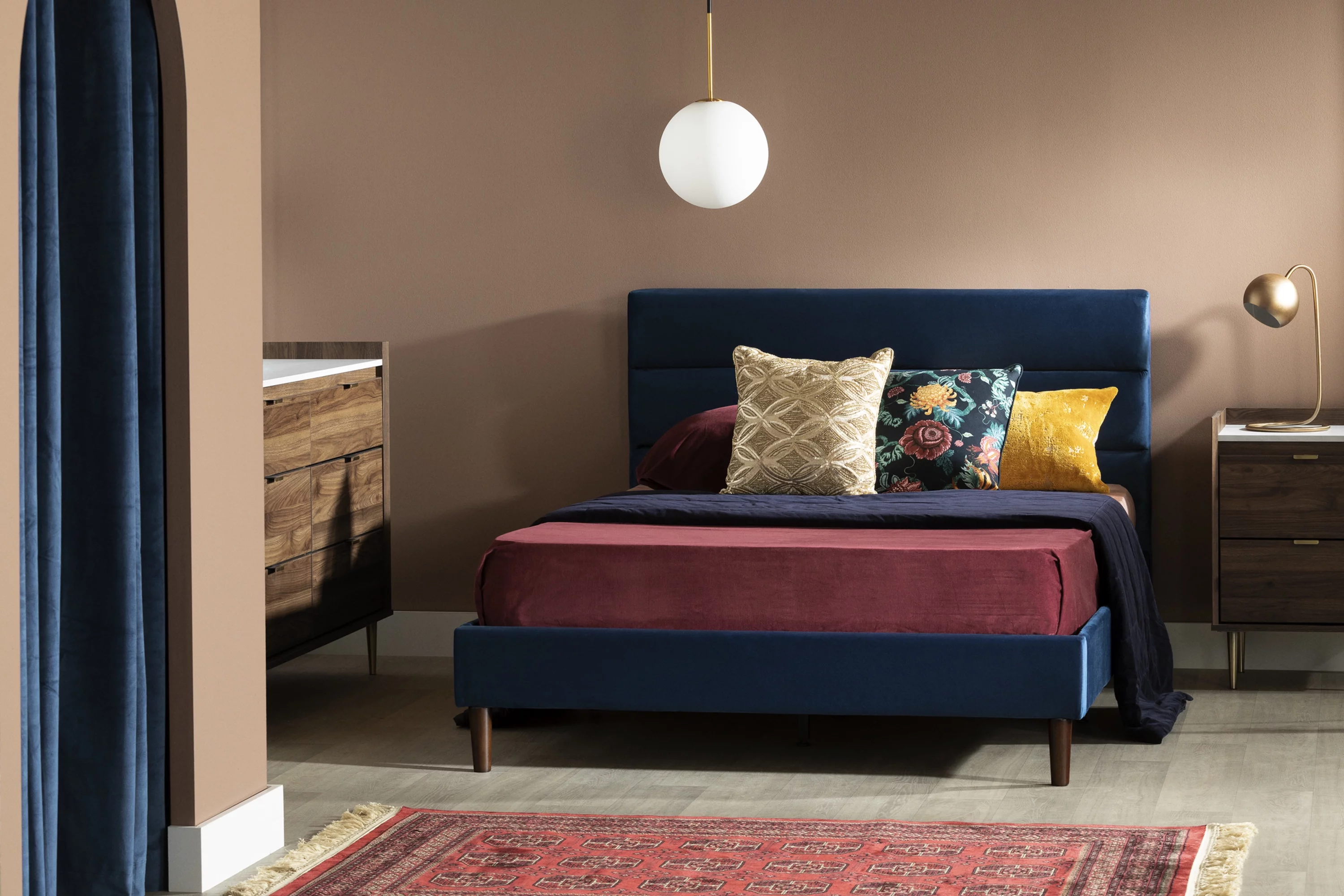 Primo International 48407 Olivia Upholstered Platform Bed, Light Brown - Full Size