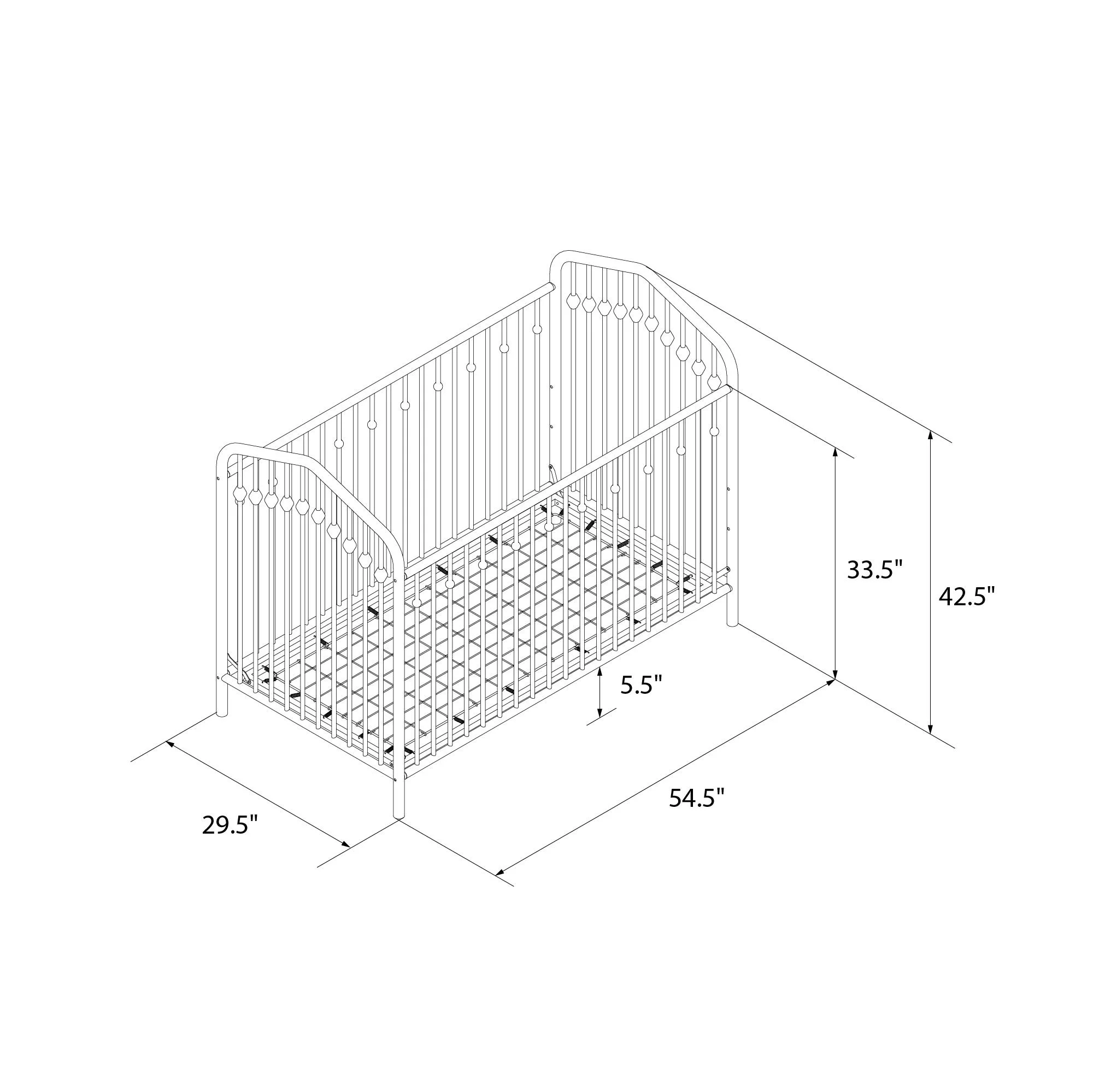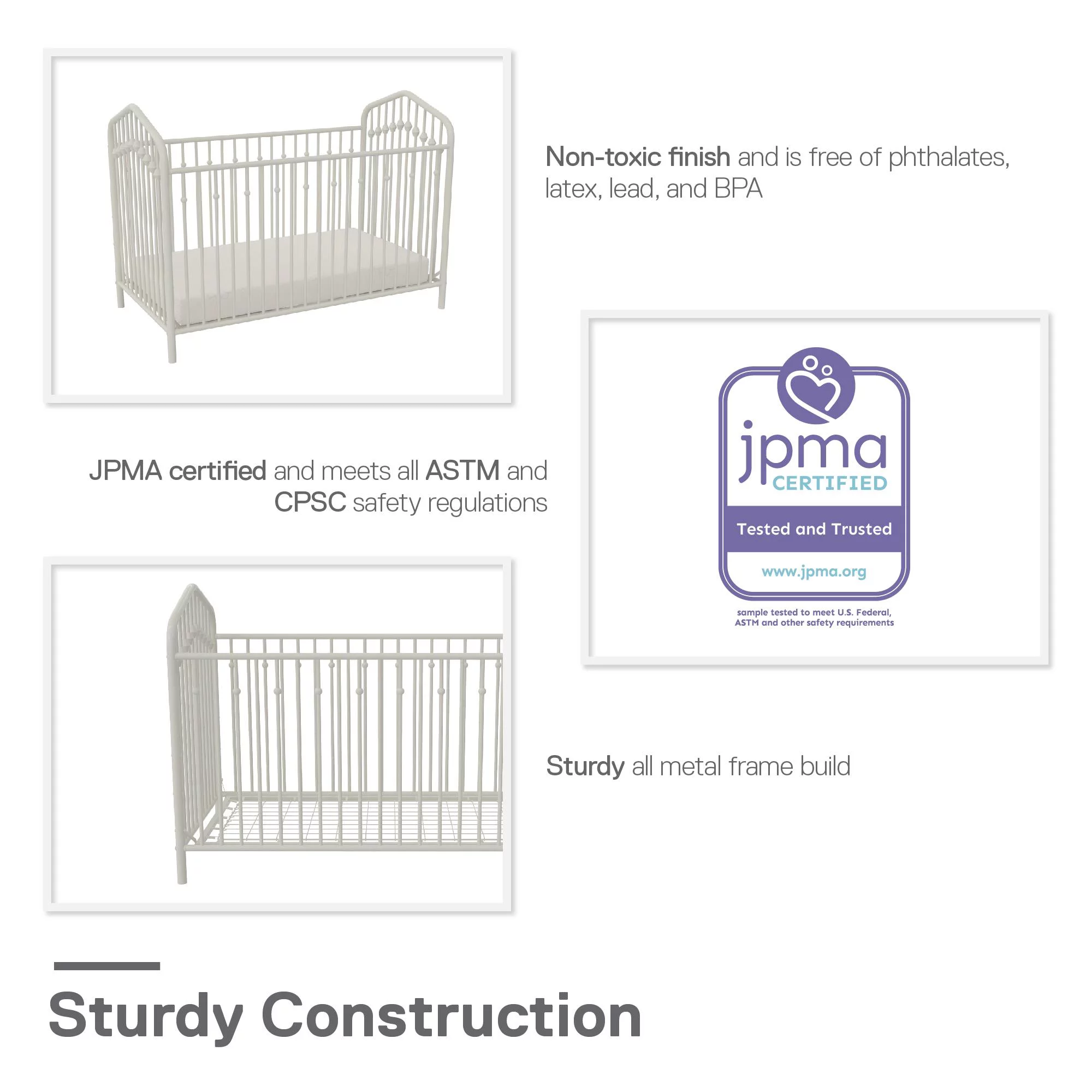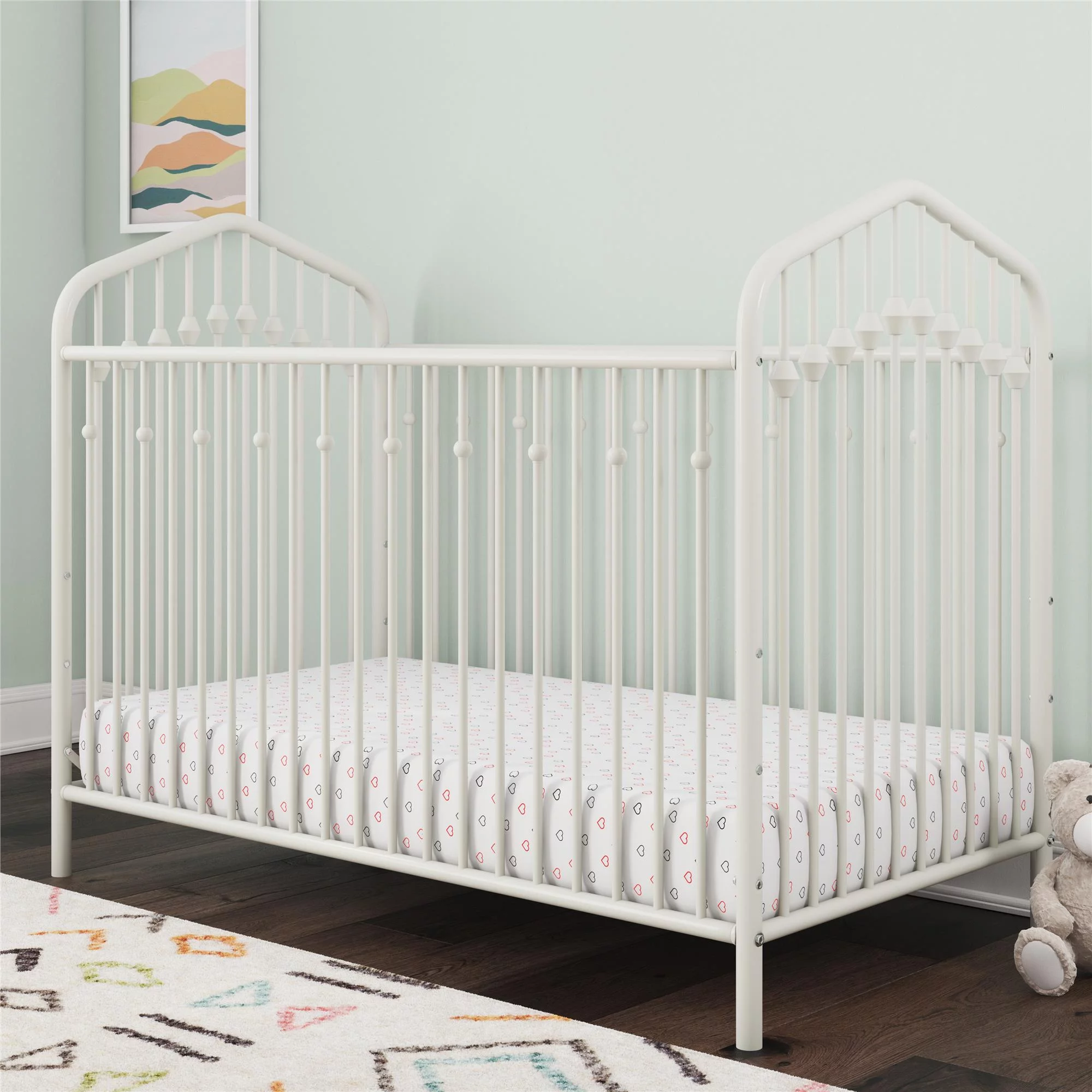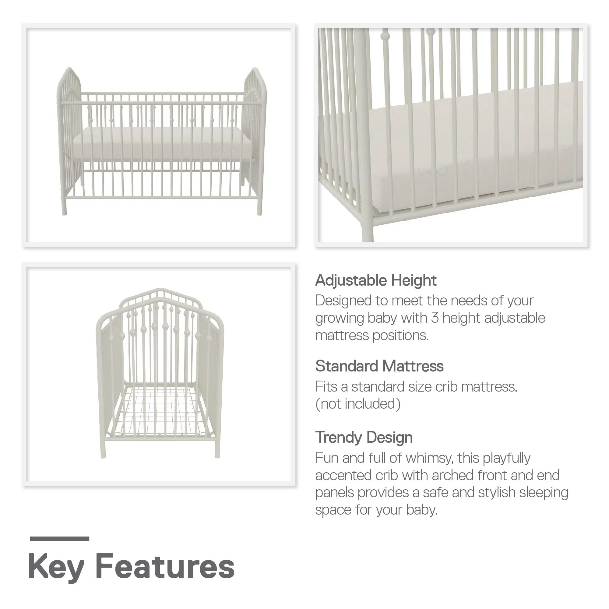Novogratz Bushwick Metal Crib with Adjustable Mattress Height, Off White