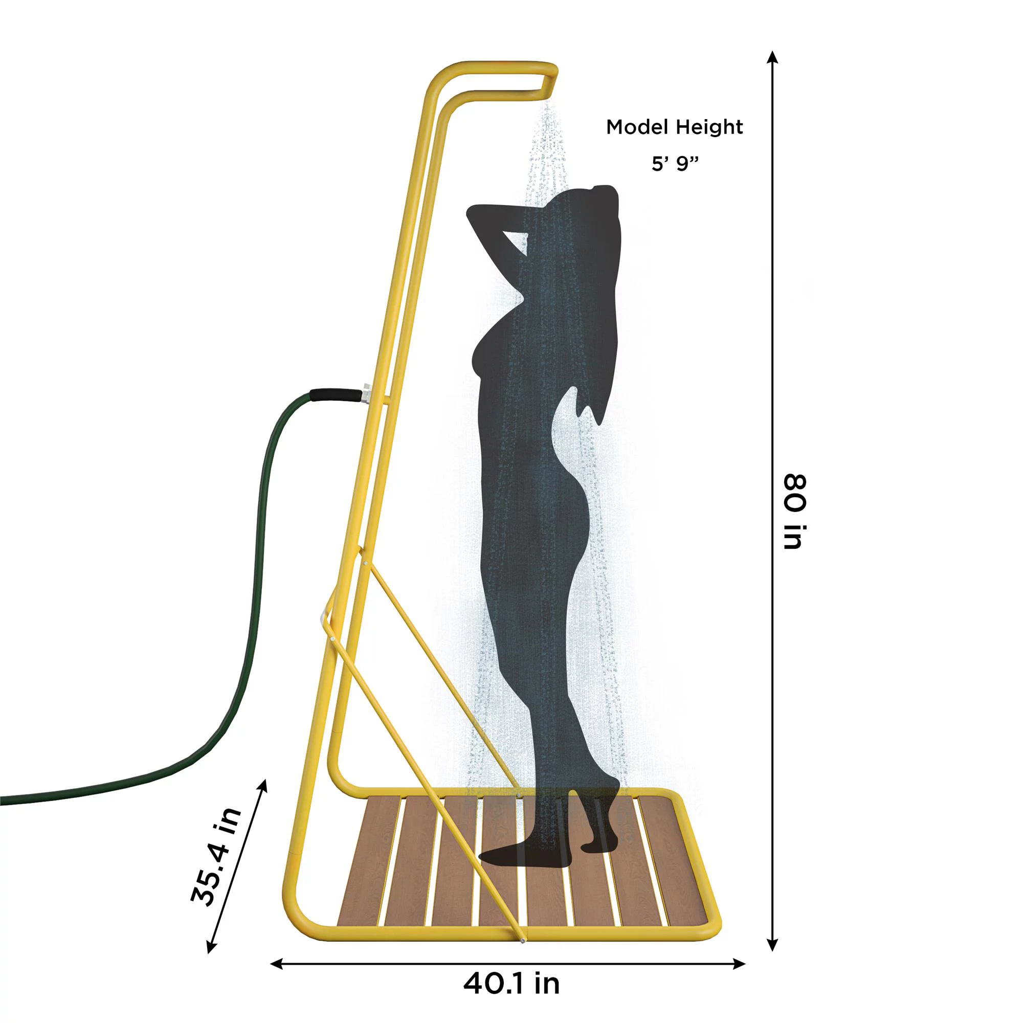 Novogratz Poolside Gossip, Rainey Outdoor Shower with XL Base and Waterfall Bar, Yellow