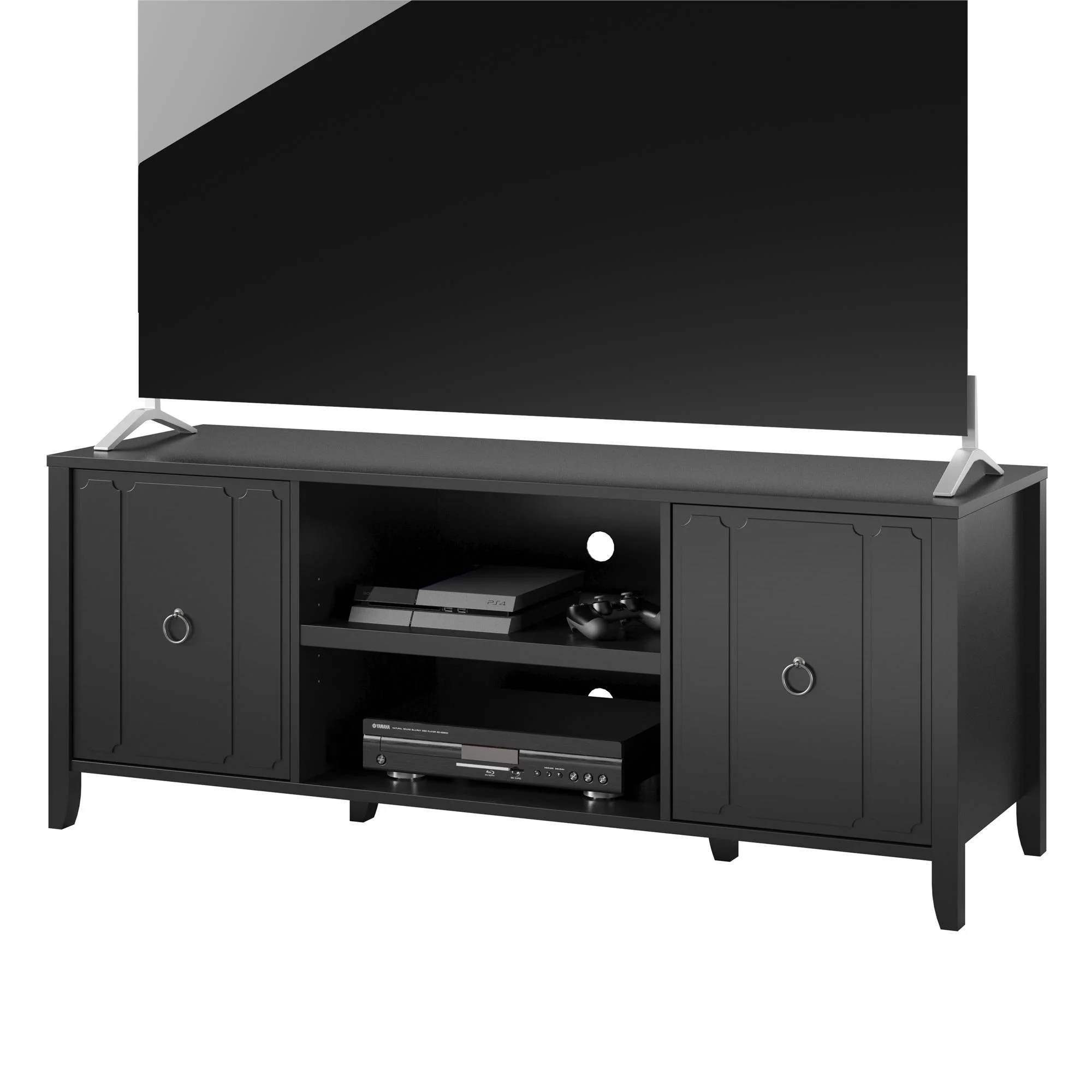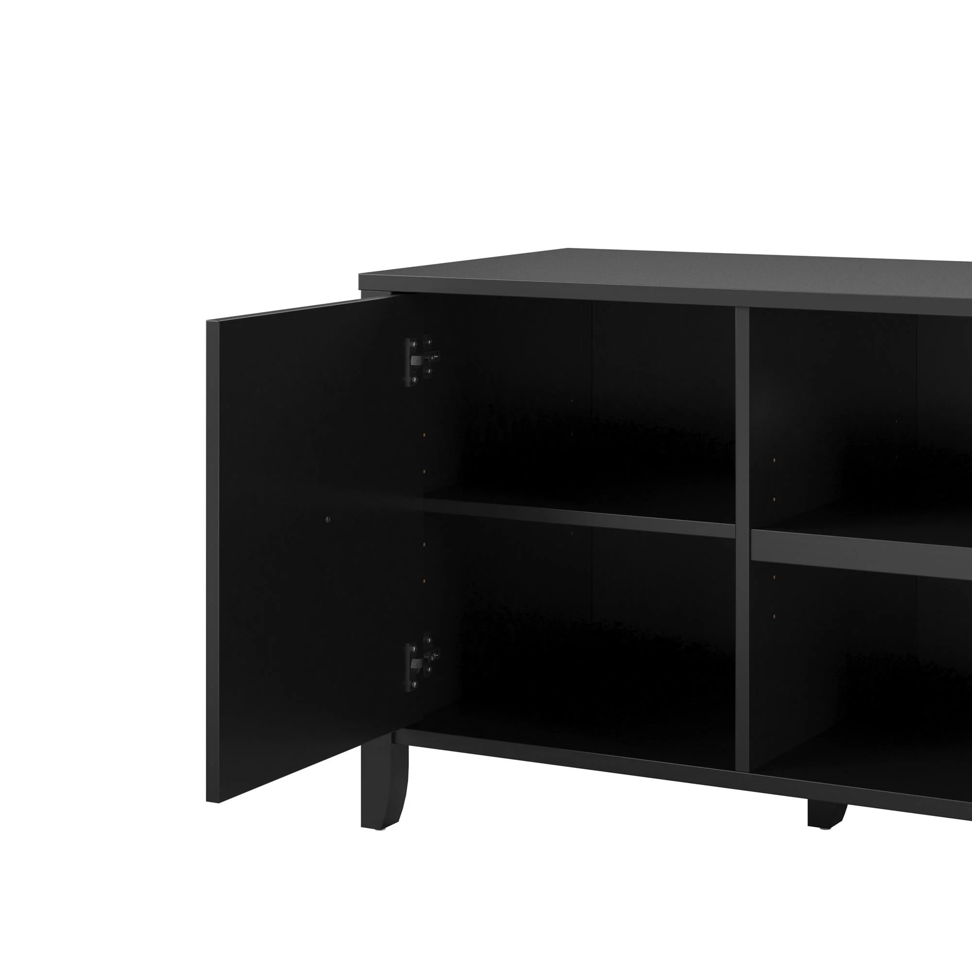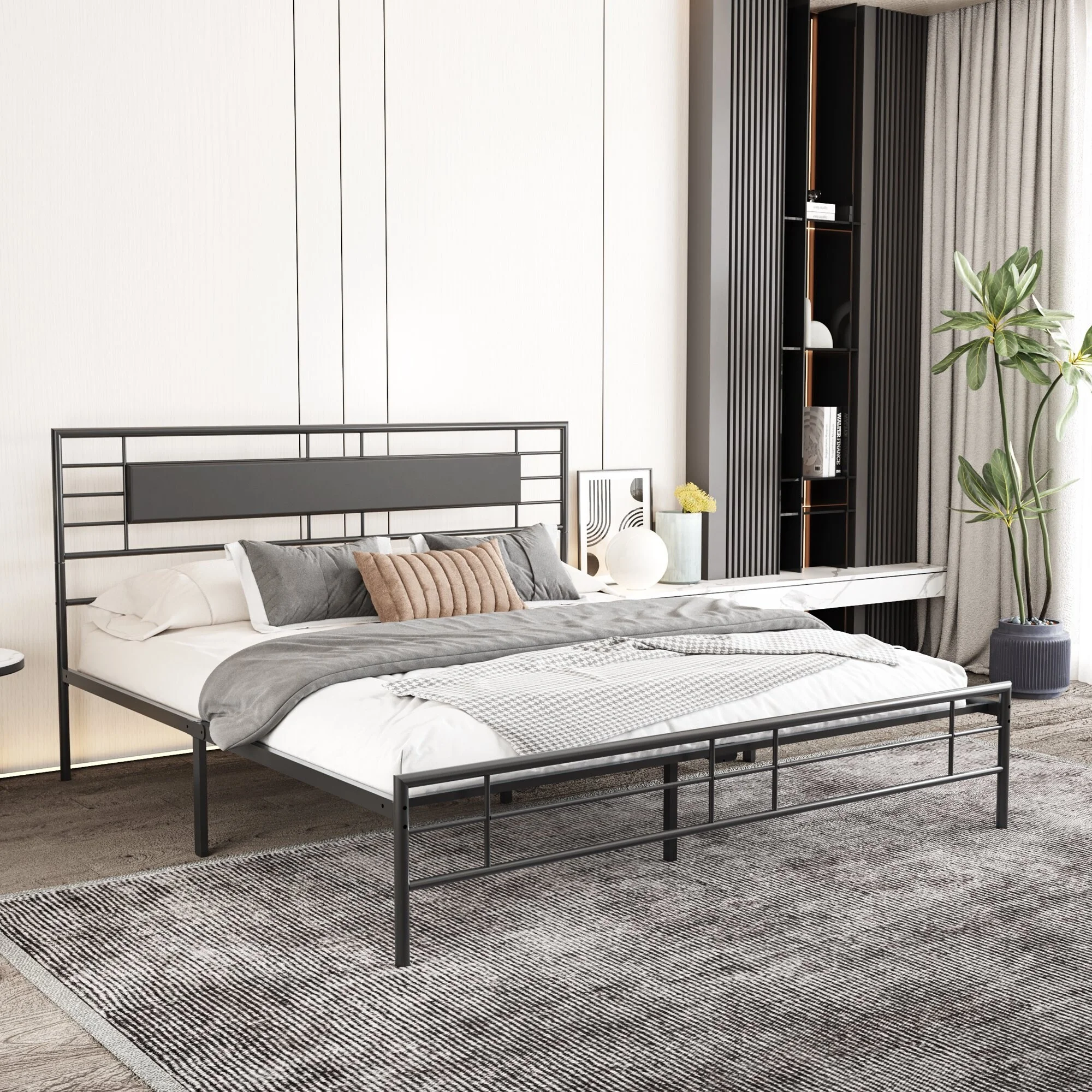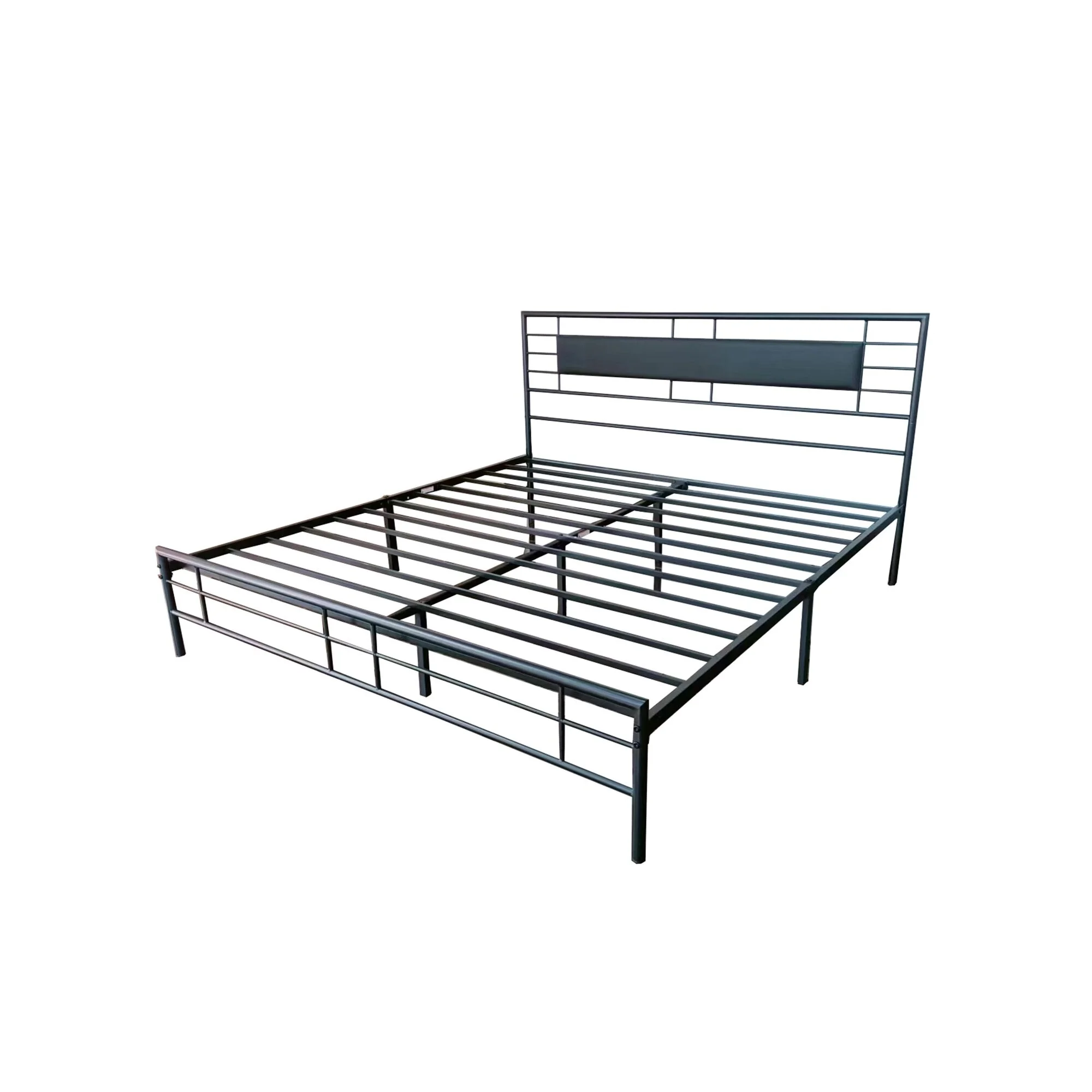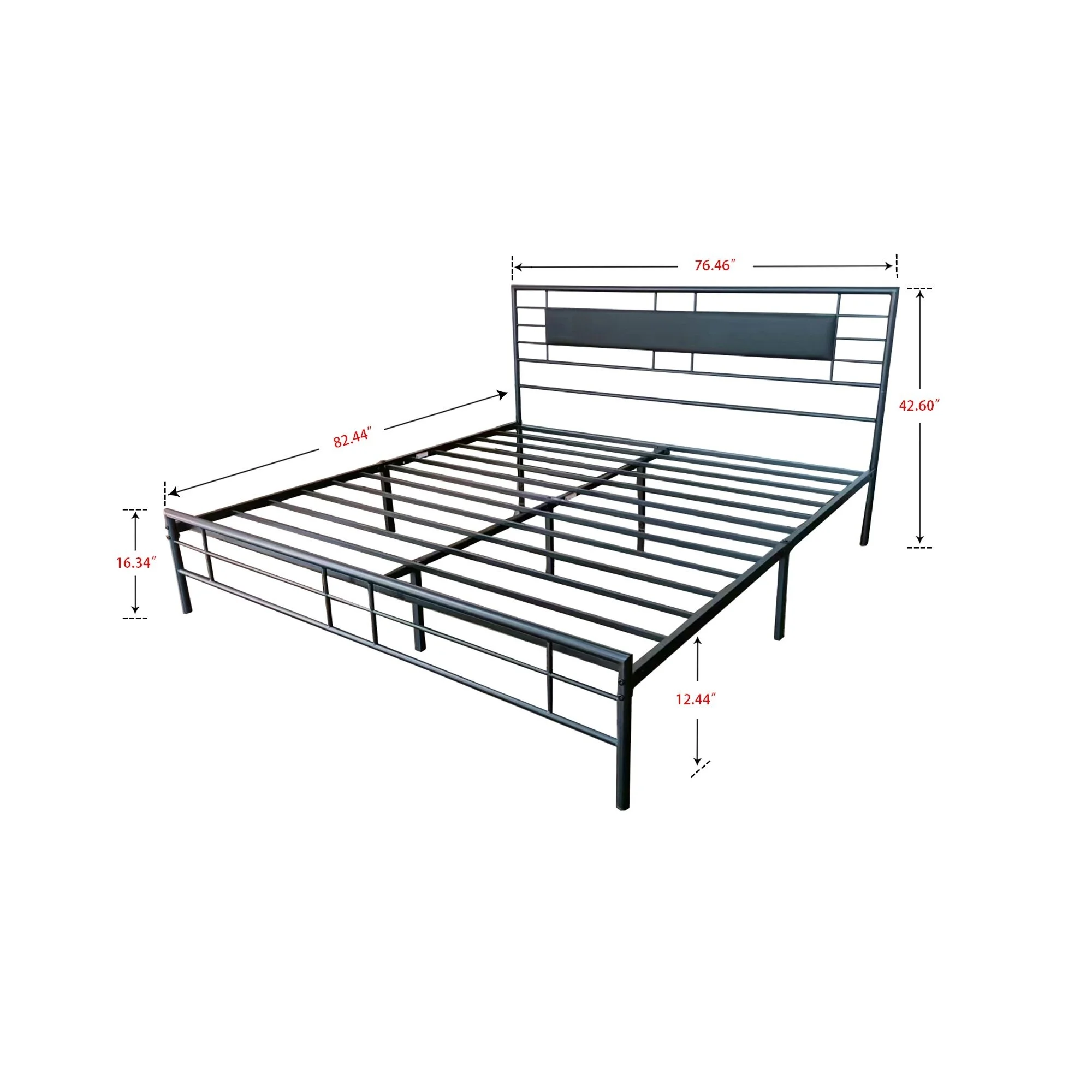 NNV Full Size Platform Metal Bed Frame with Leather Upholstered Headboard Black - King
