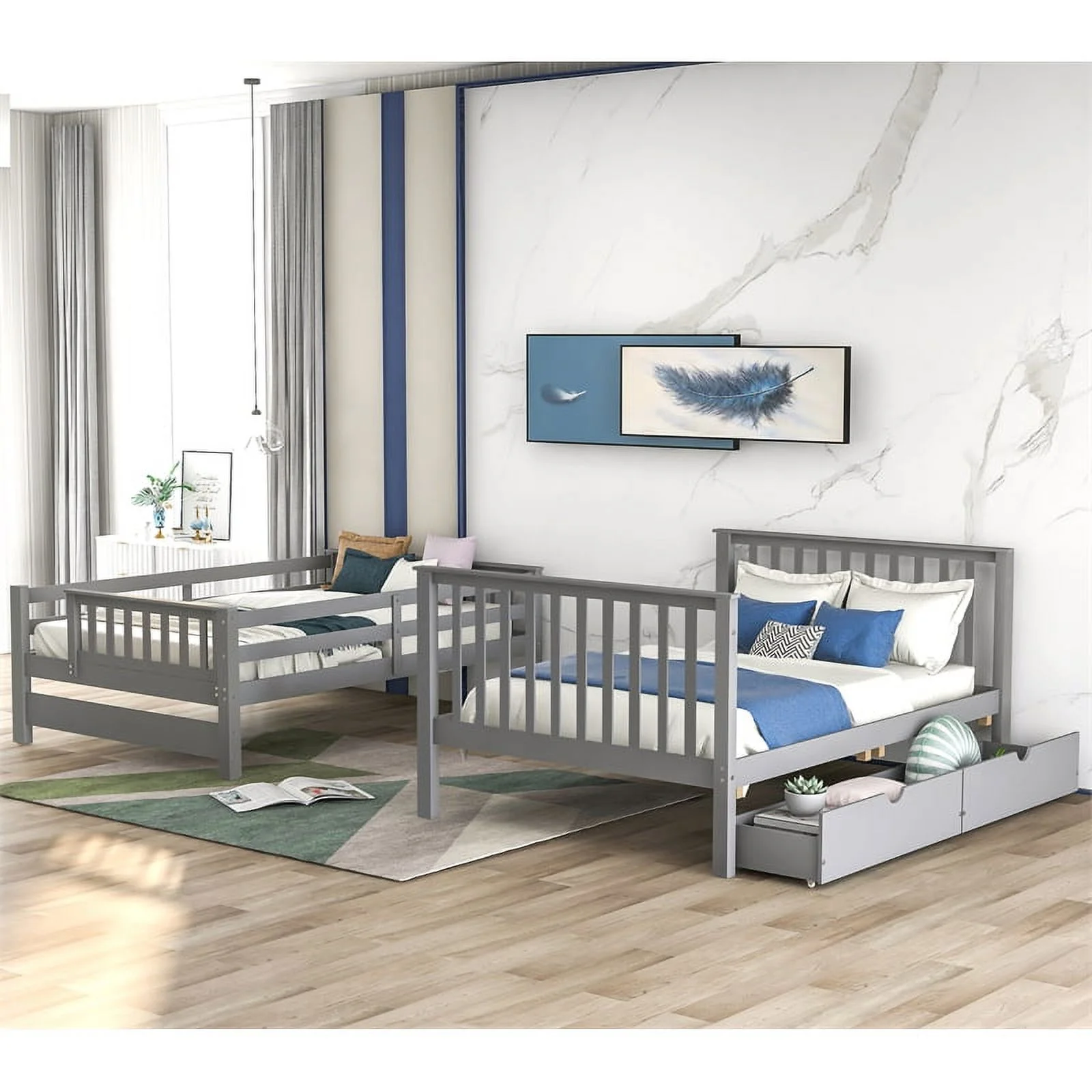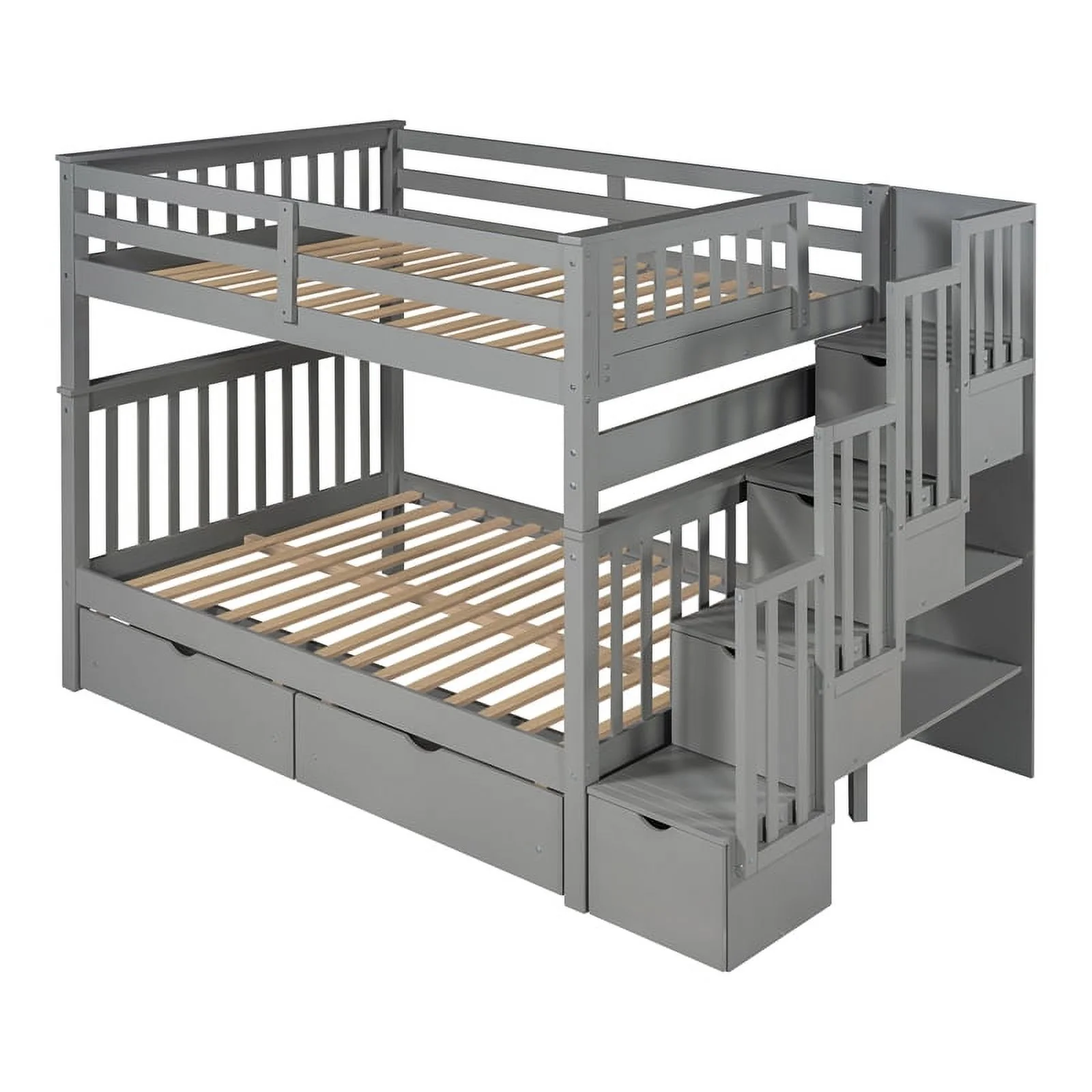 CRO Decor Full Over Full Bunk Bed with Shelves and 6 Storage Drawers (Gray)
