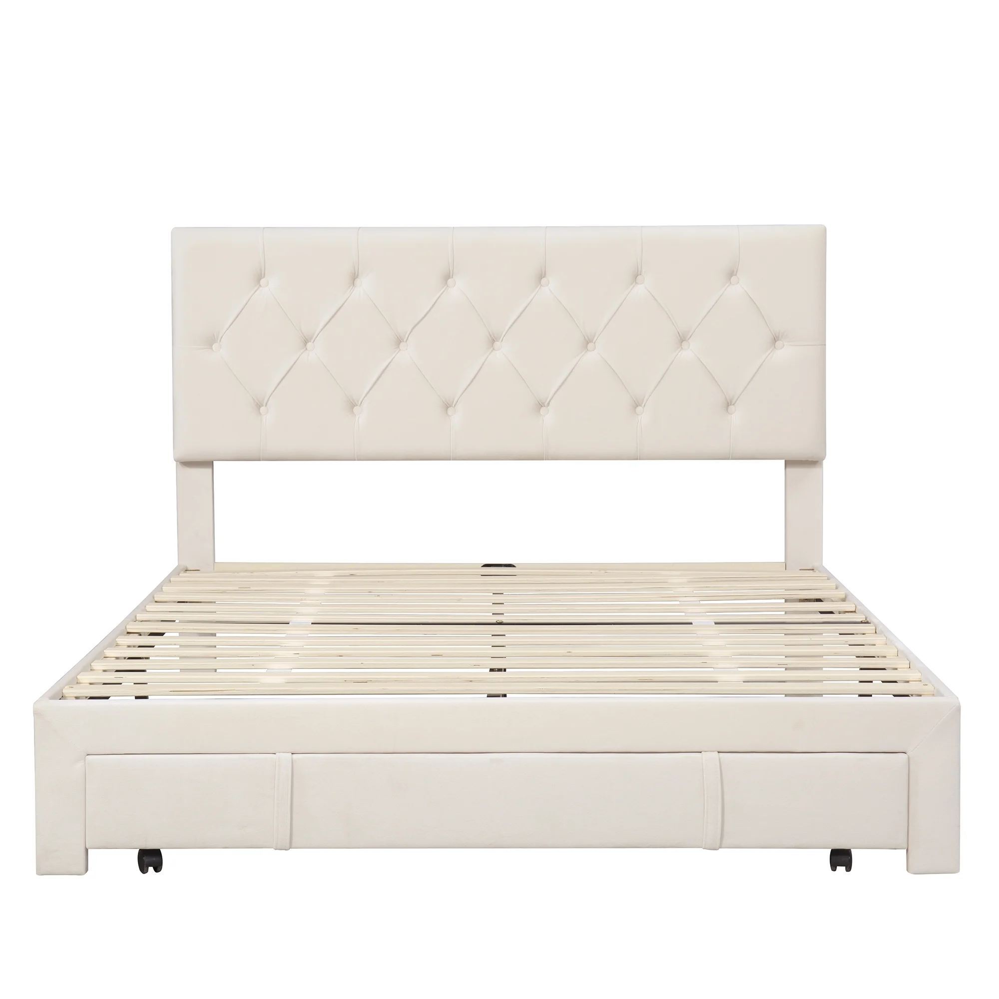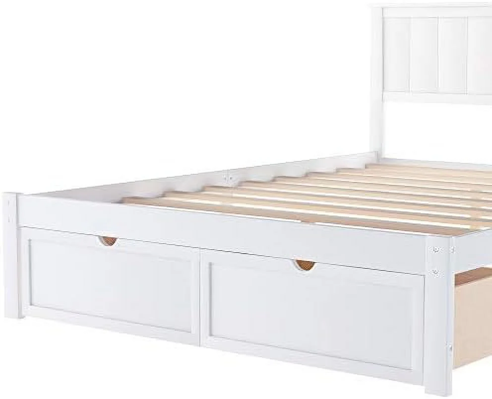 YZboomLife Twin Size Platform Bed with Drawer Wood Bed Frame with Headboard and Footboard No Box Spring White