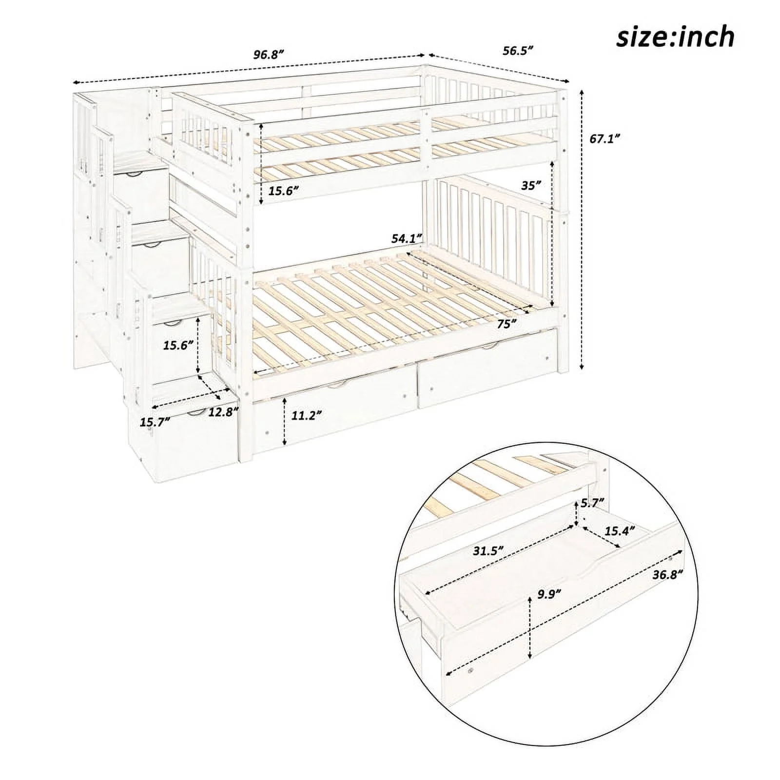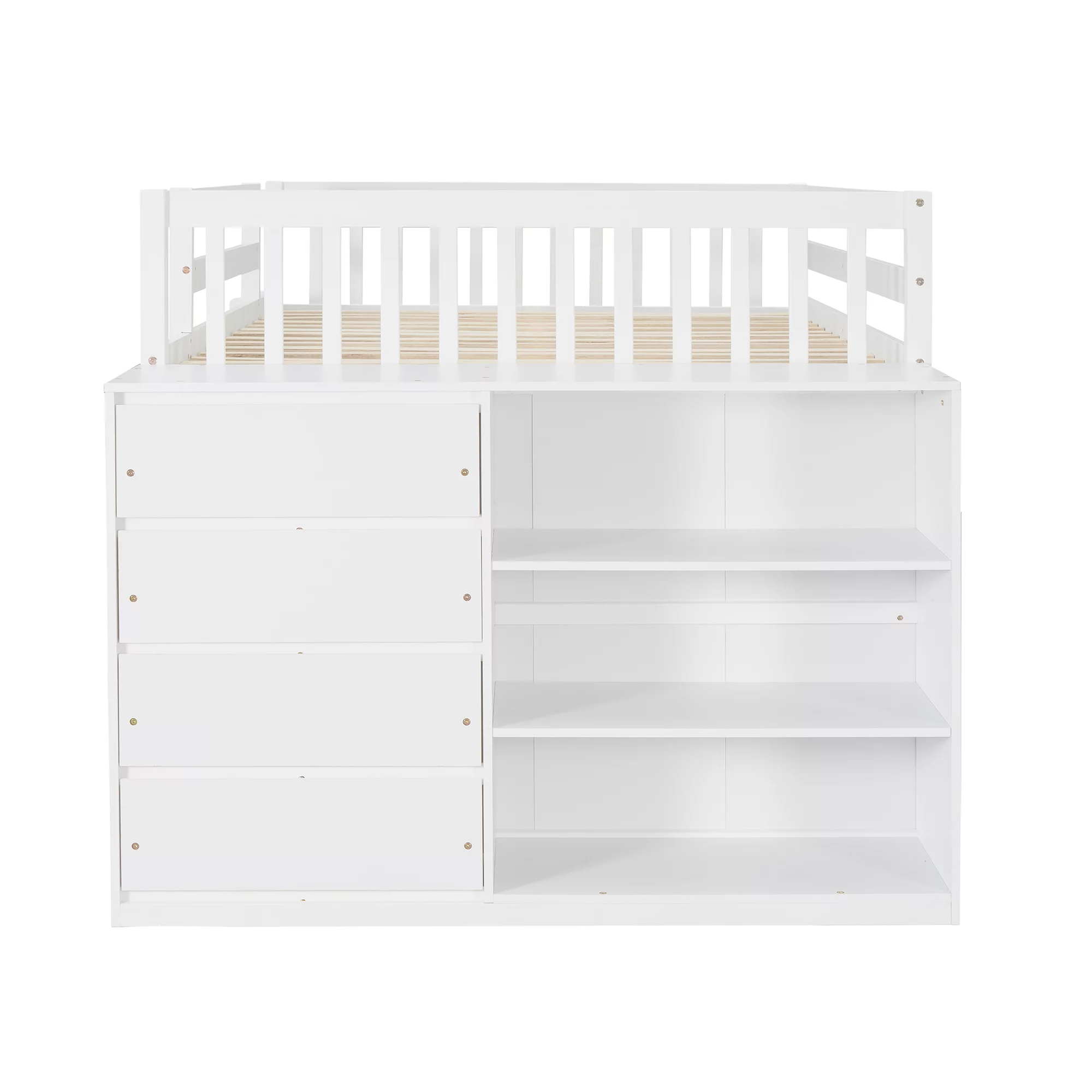 Twin over Twin Bunk Bed with 4 Drawers and 3 Shelves-White(OLD SKU: LP000067AAK)
