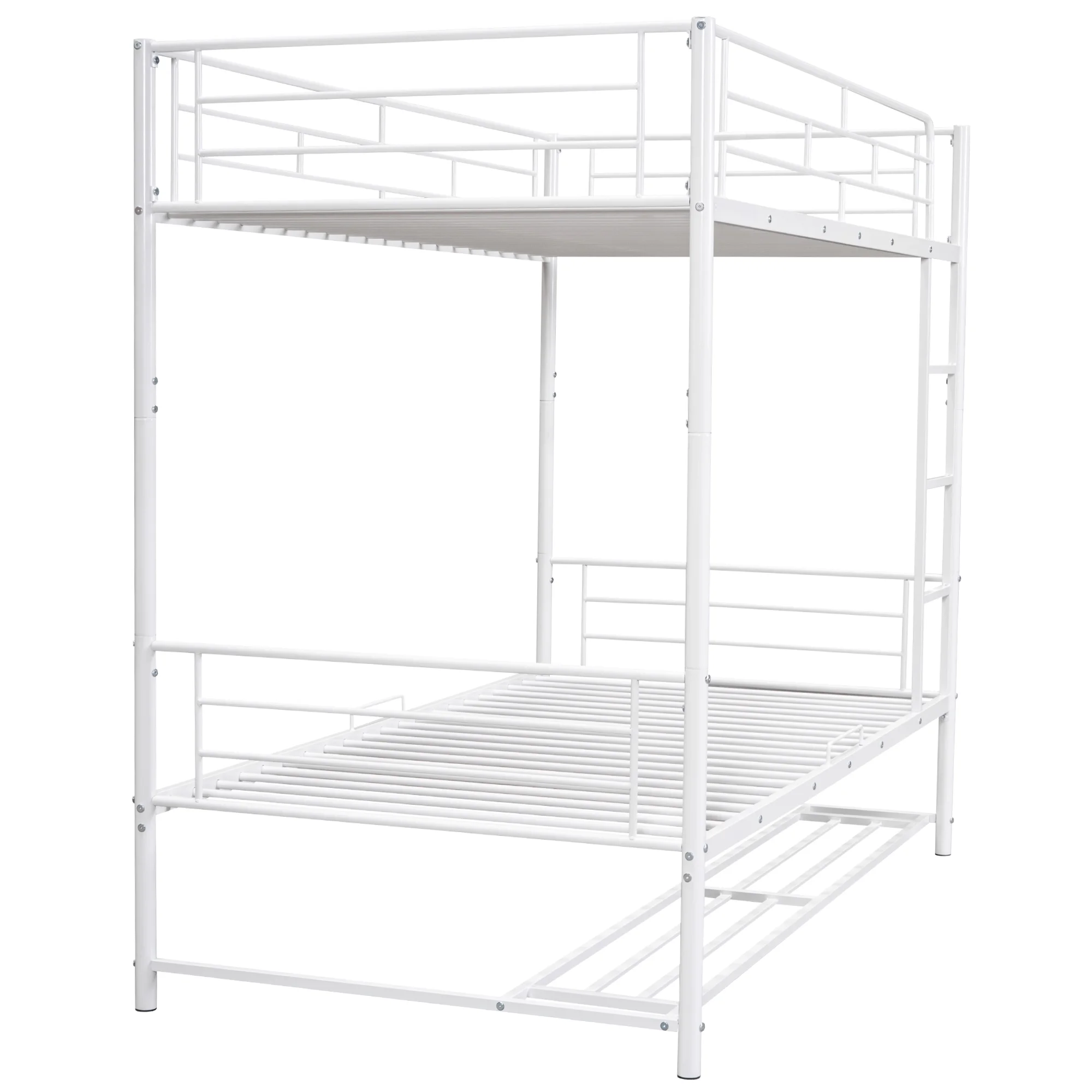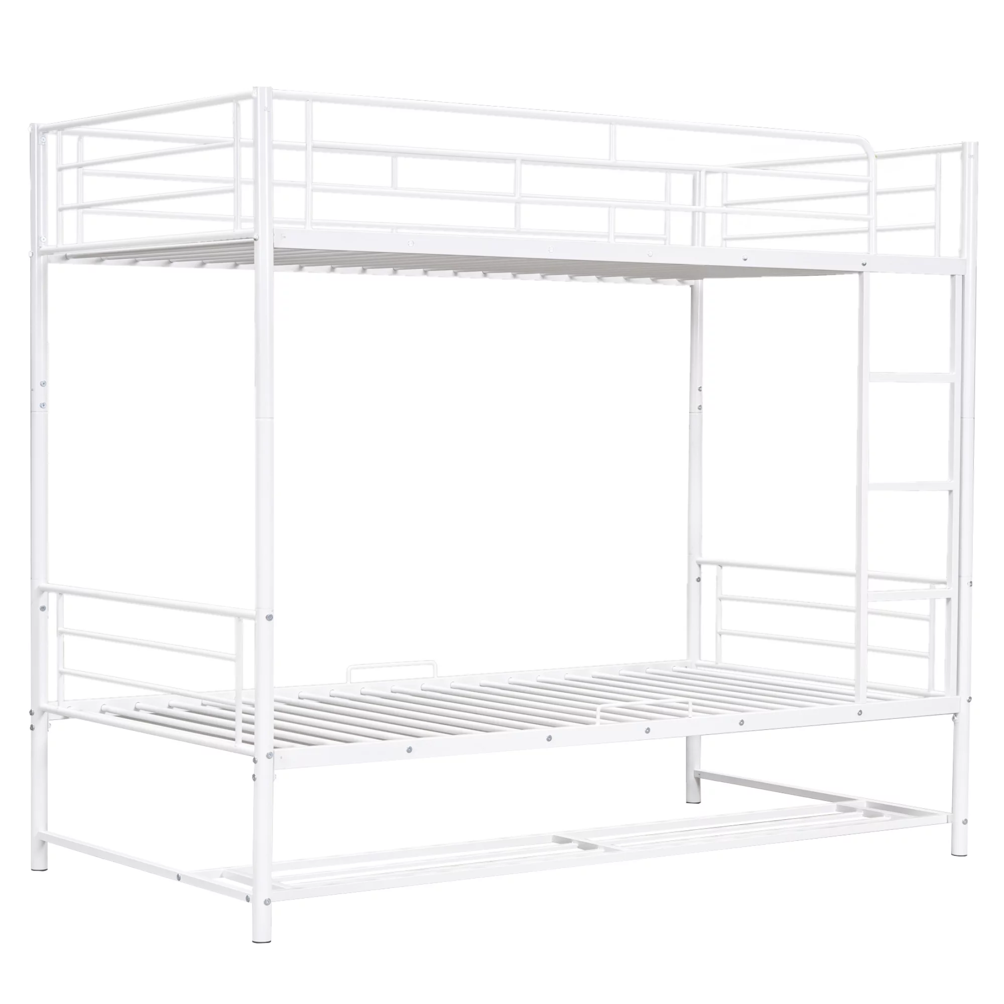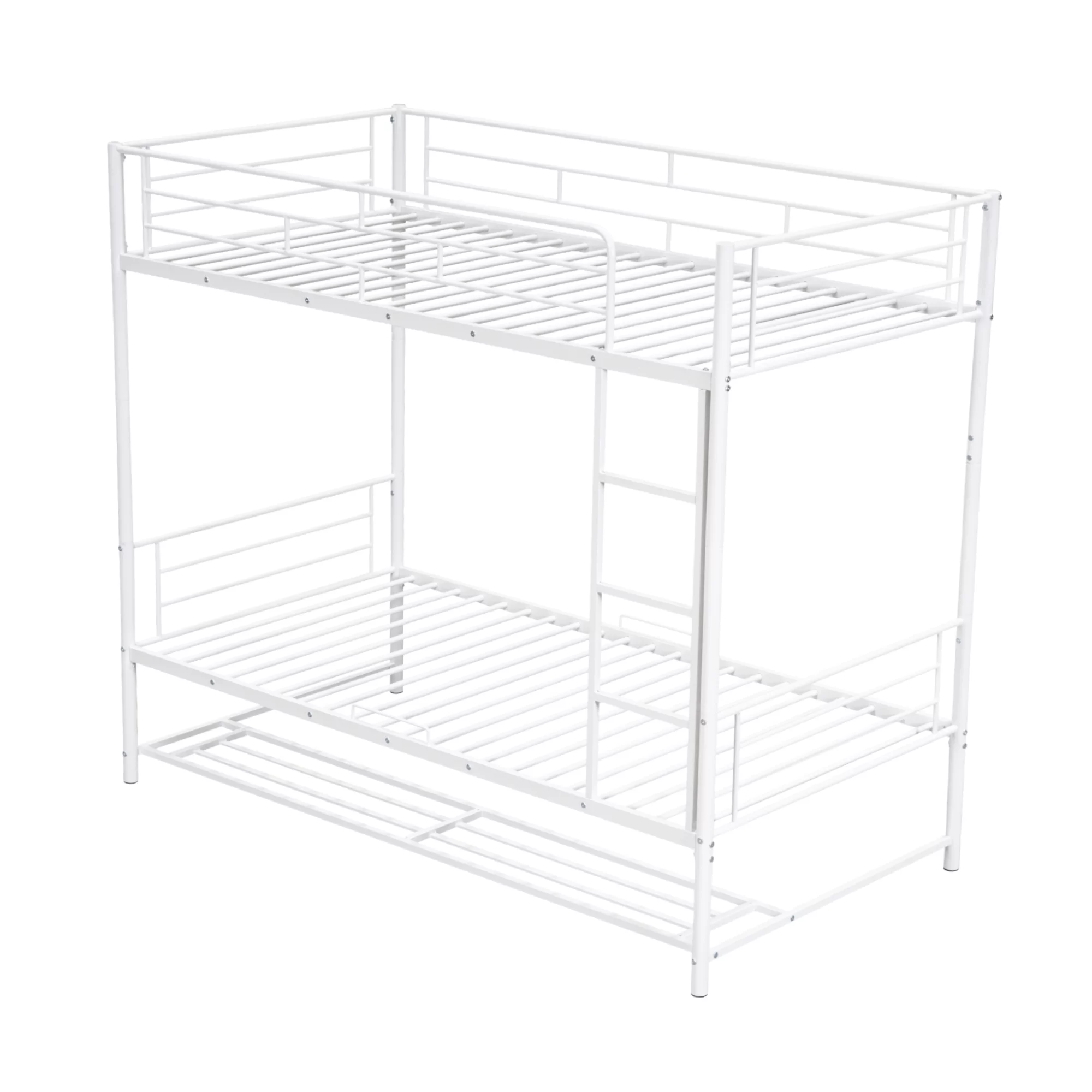 CoSoTower Twin over Twin Metal Bunk Bed with Shelf and Guardrails, White