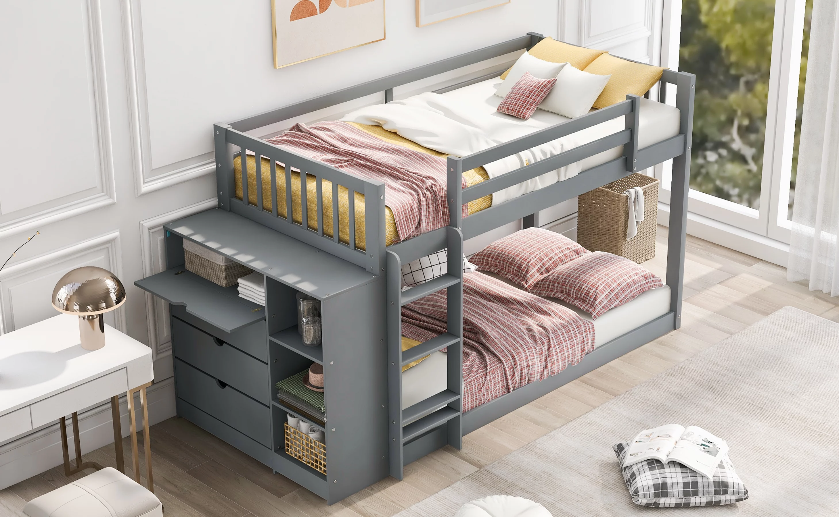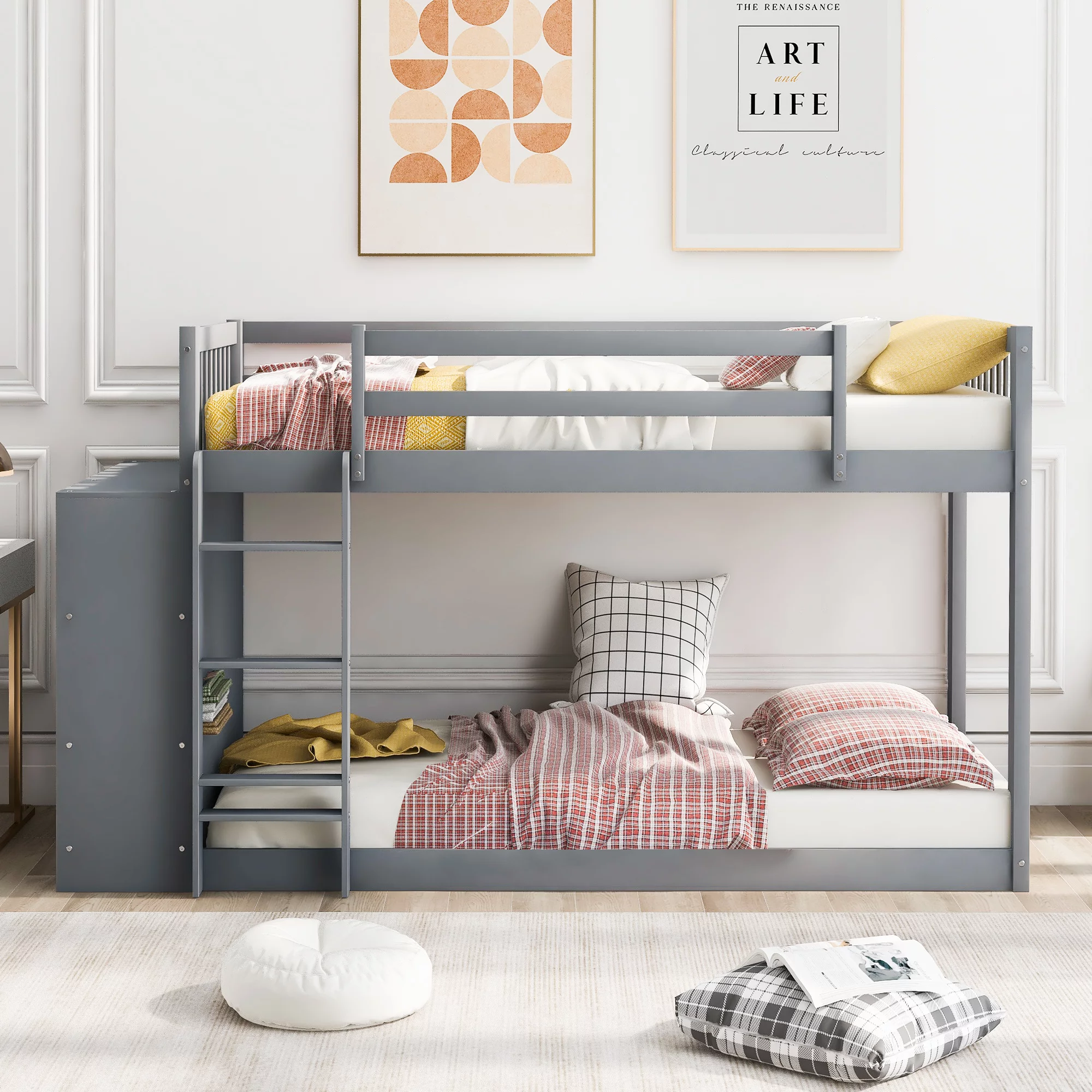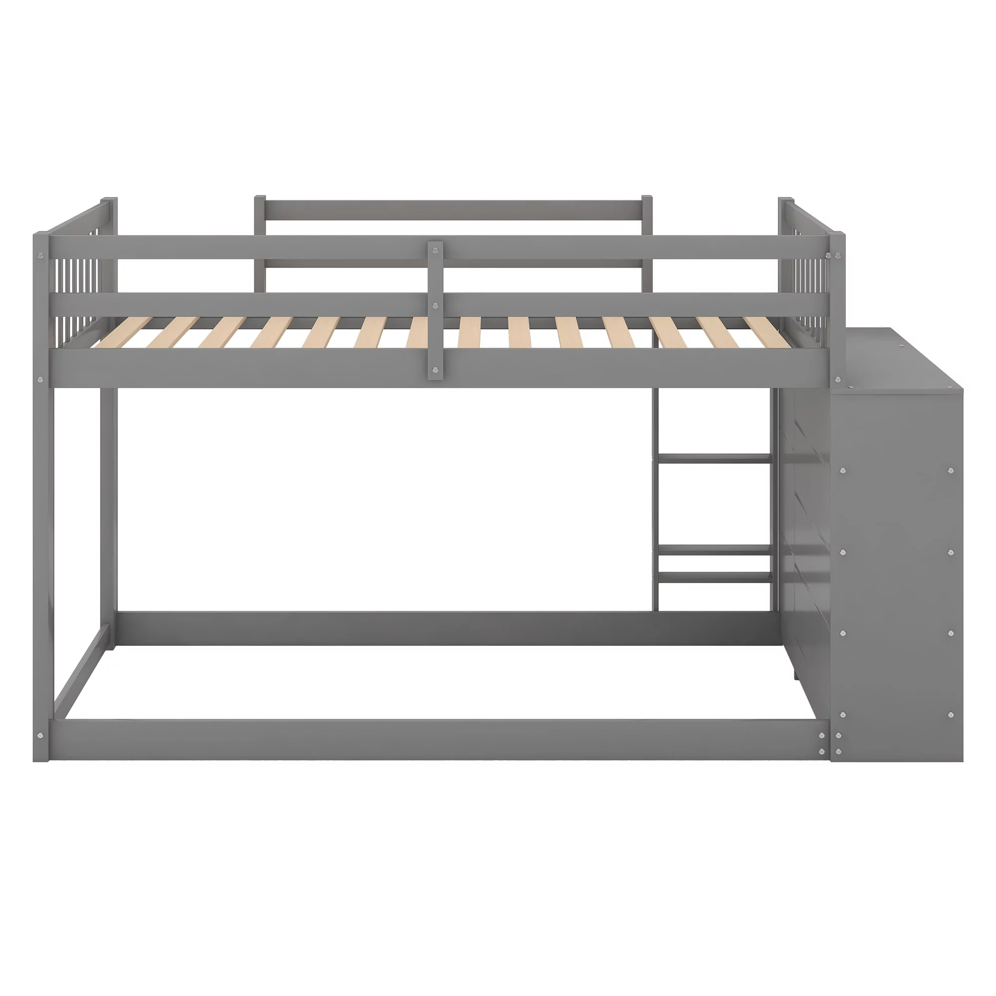 ikayaa Twin over Twin Bunk Bed with Attached Cabinet and Shelves Storage ,Gray (OLD SKU:GX000513AAE)