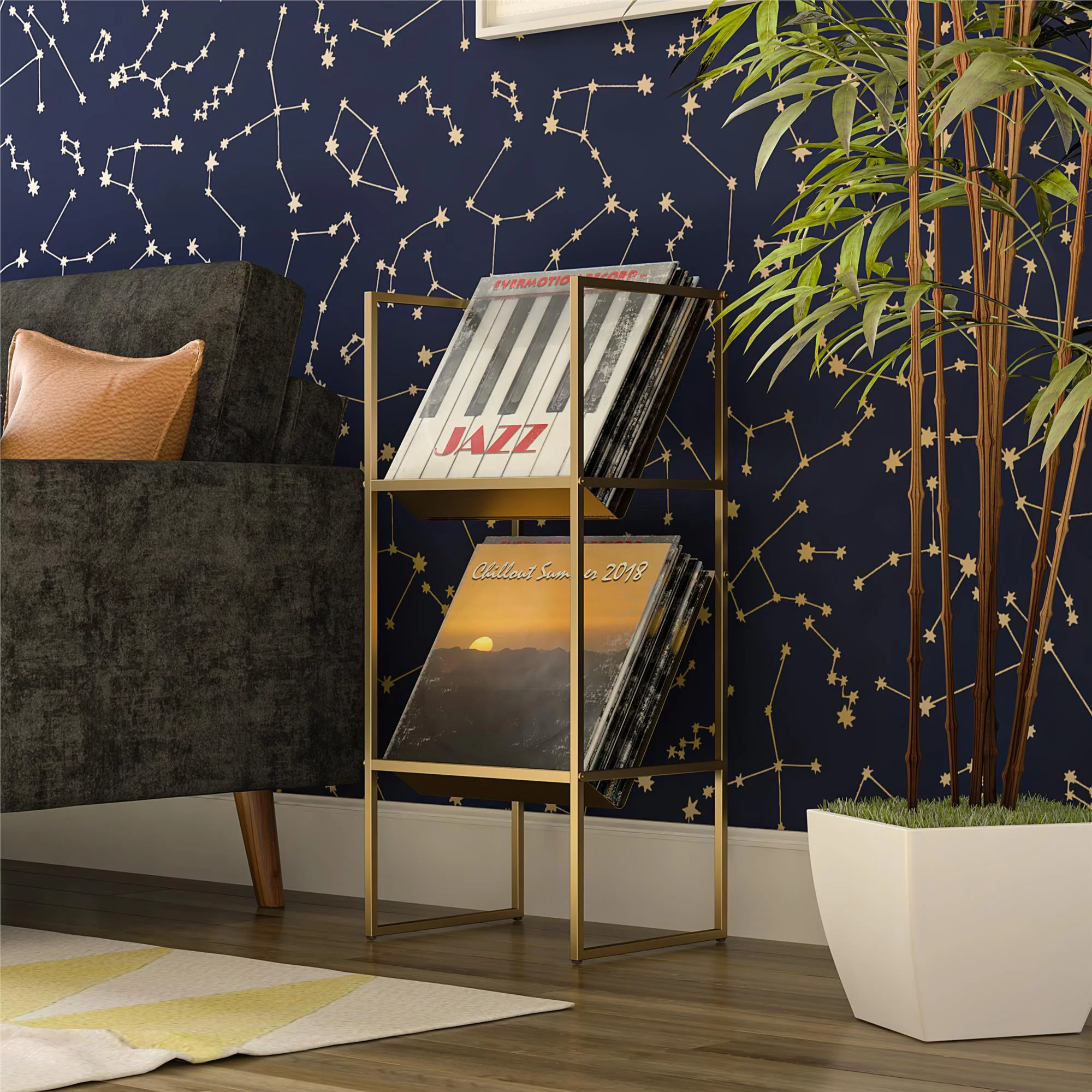 The Novogratz 19", 14"W Silver Stainless Steel Metal Mirrored Tray, 2-Pieces