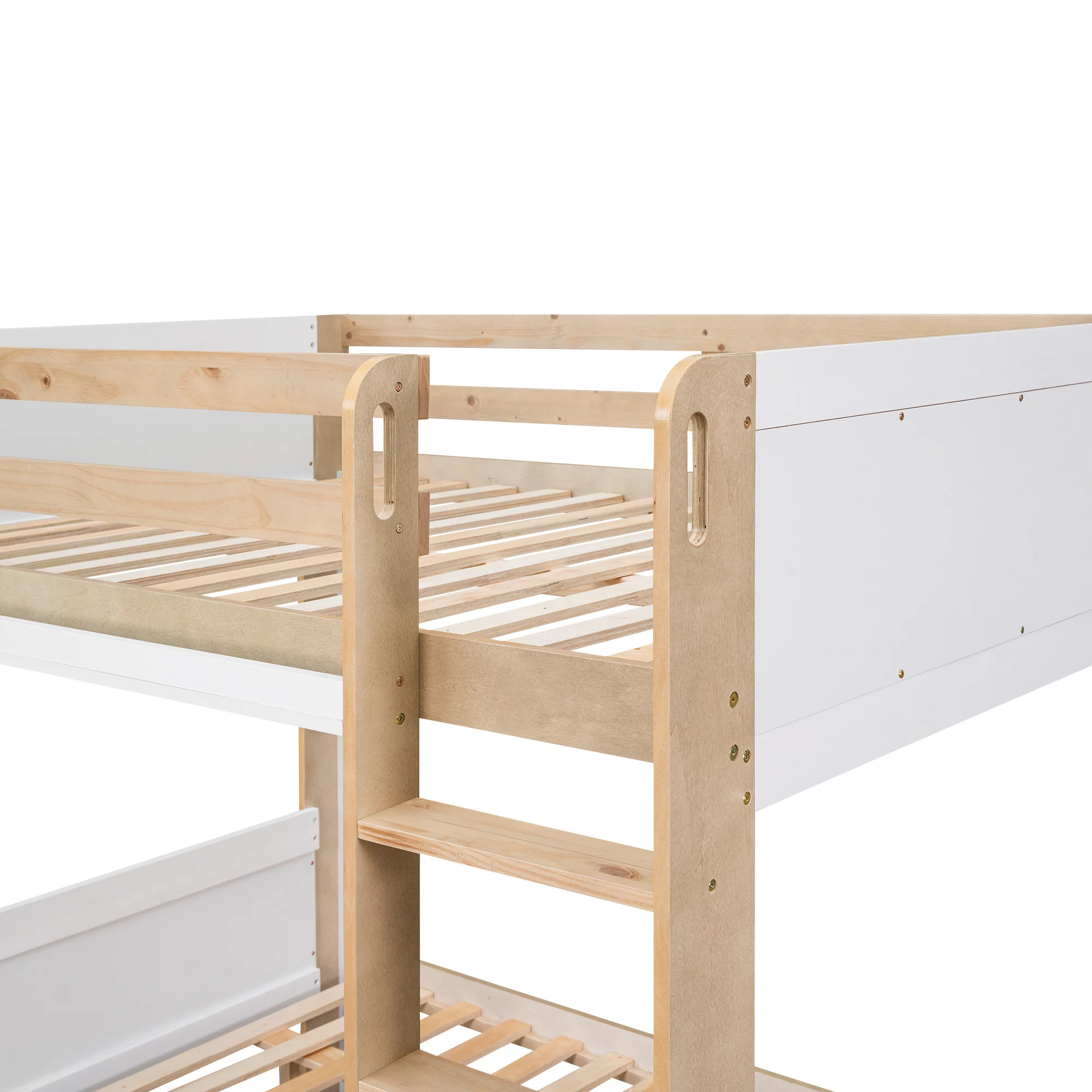 Solid Wood Bunk Bed Frame, Twin Over Twin Boat Shaped Bunk Bed with Storage Shelves, Bunk Bed for Kids