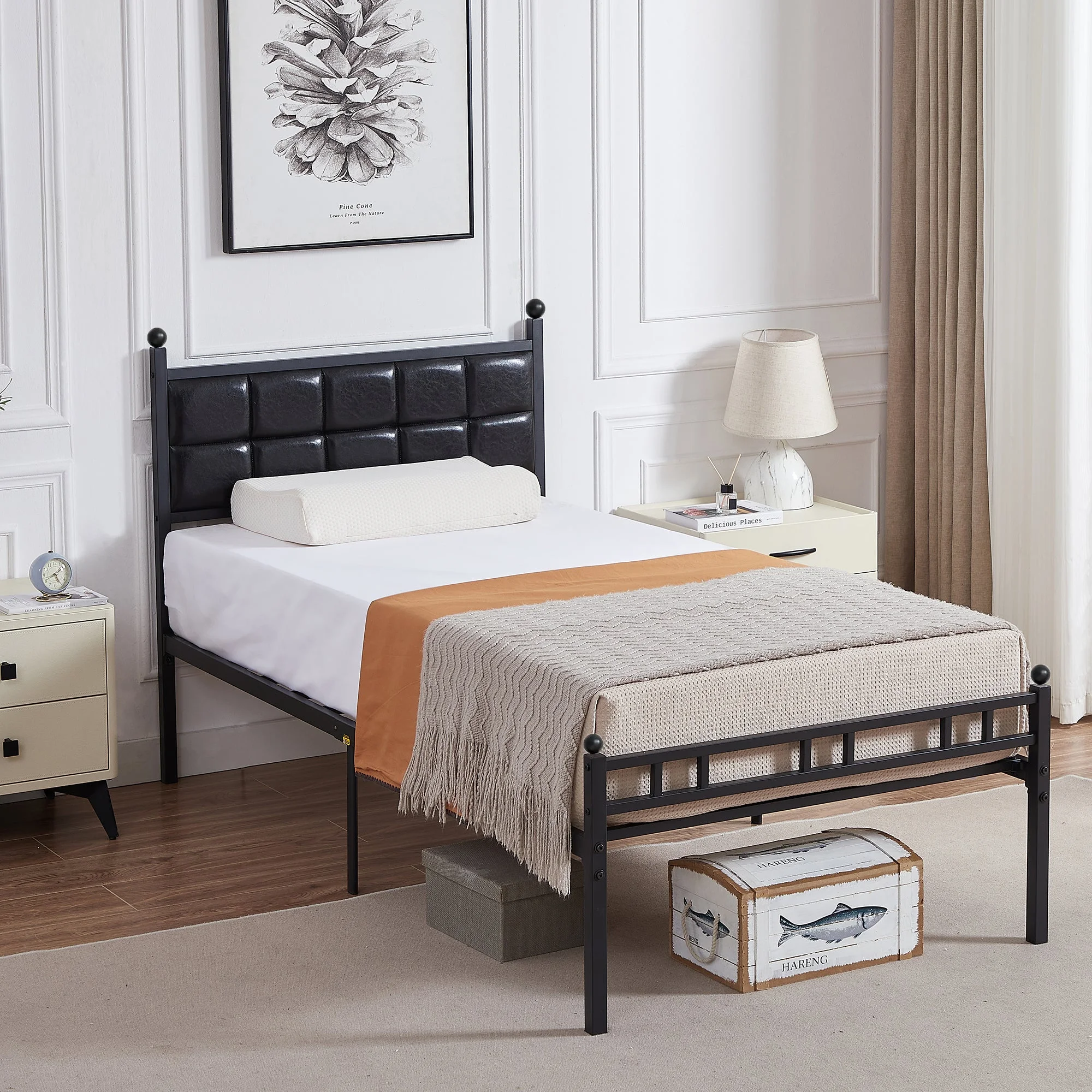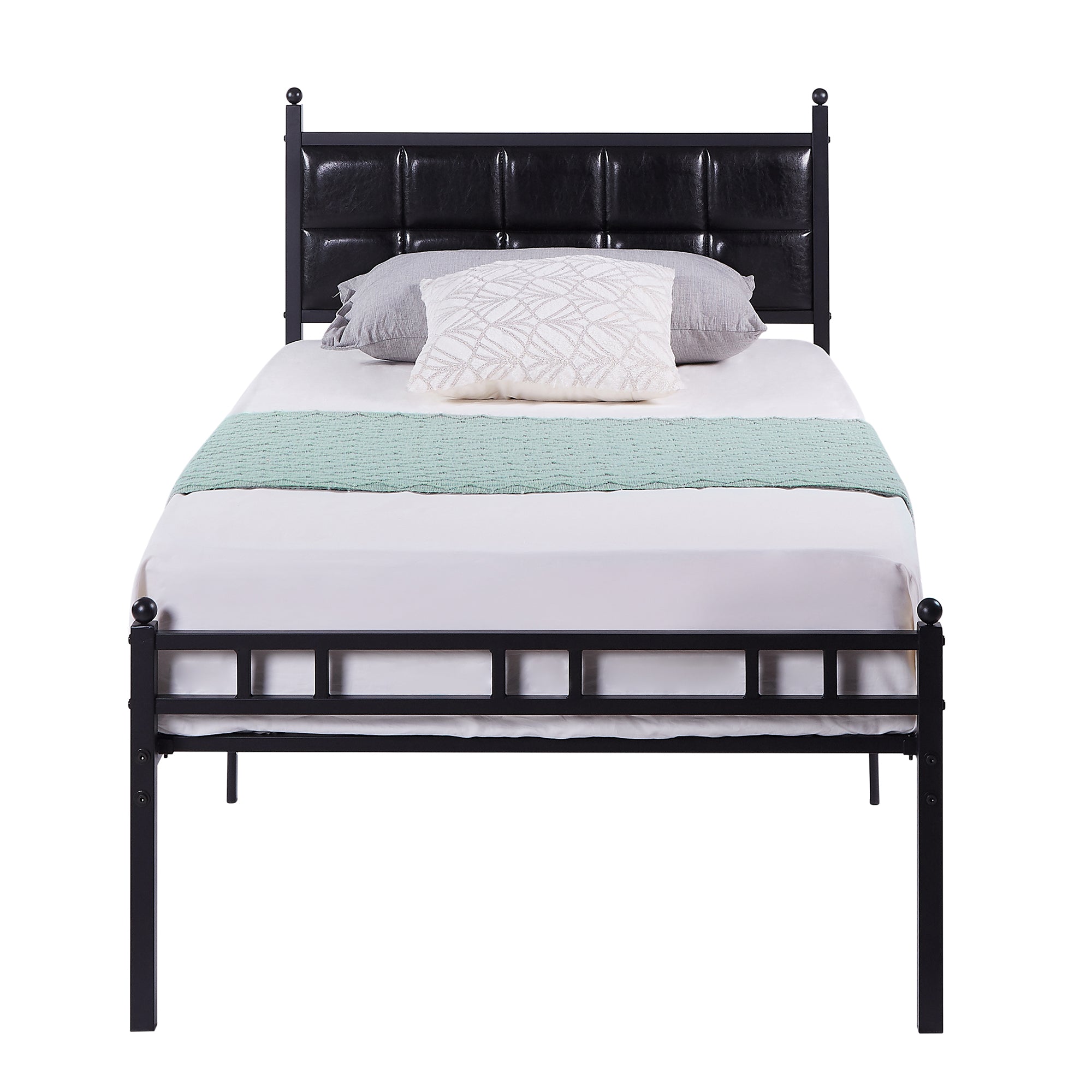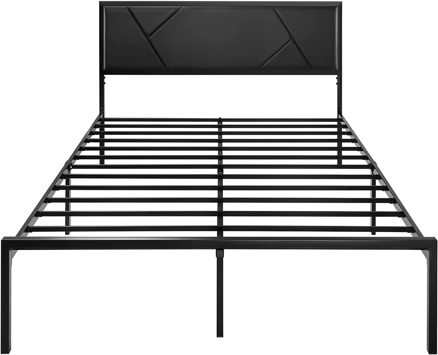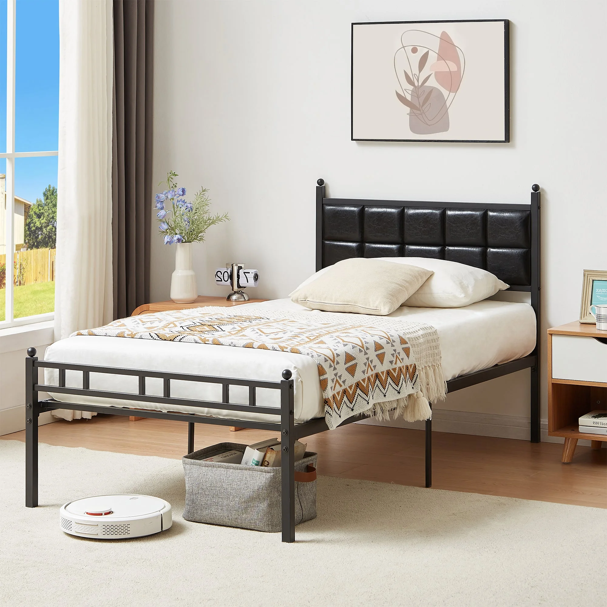 VECELO Twin Size Metal Platform Bed Frame with Faux Leather Headboard, Underbed Storage, No Box Spring Needed, Black