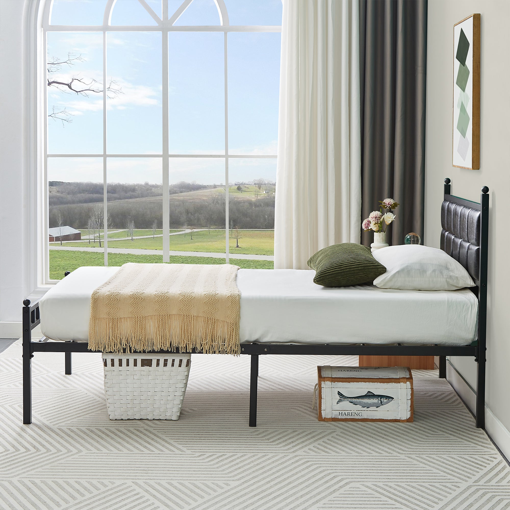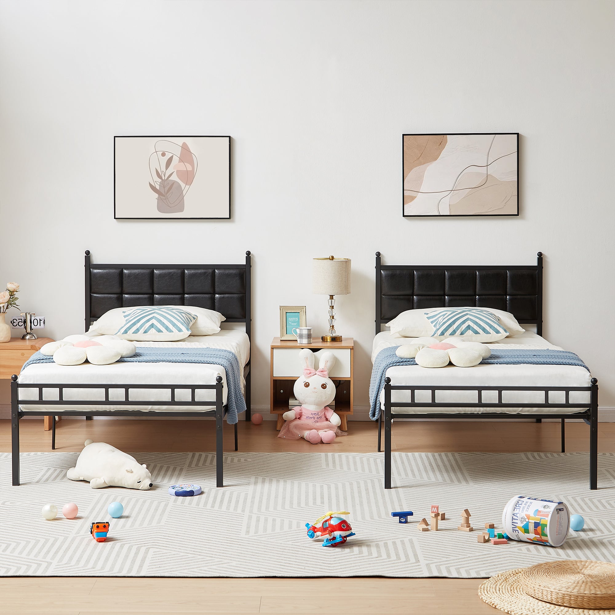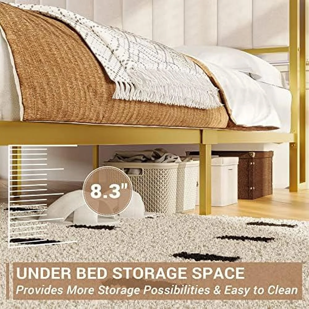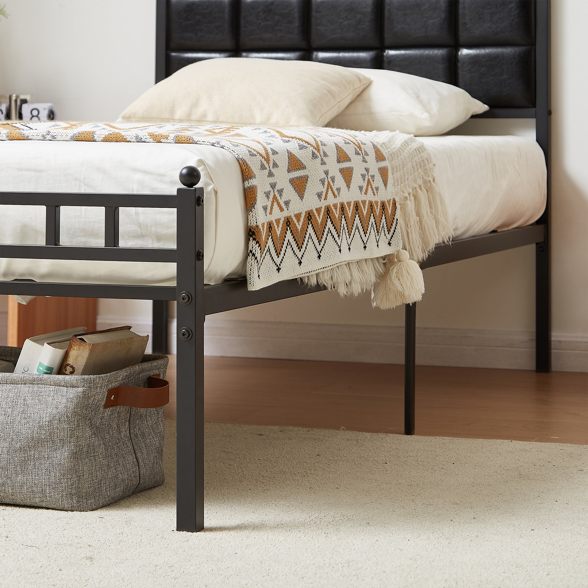 VECELO Twin Size Metal Platform Bed Frame with Faux Leather Headboard, Underbed Storage, No Box Spring Needed, Black