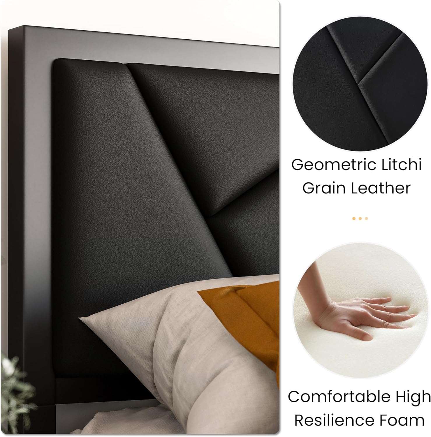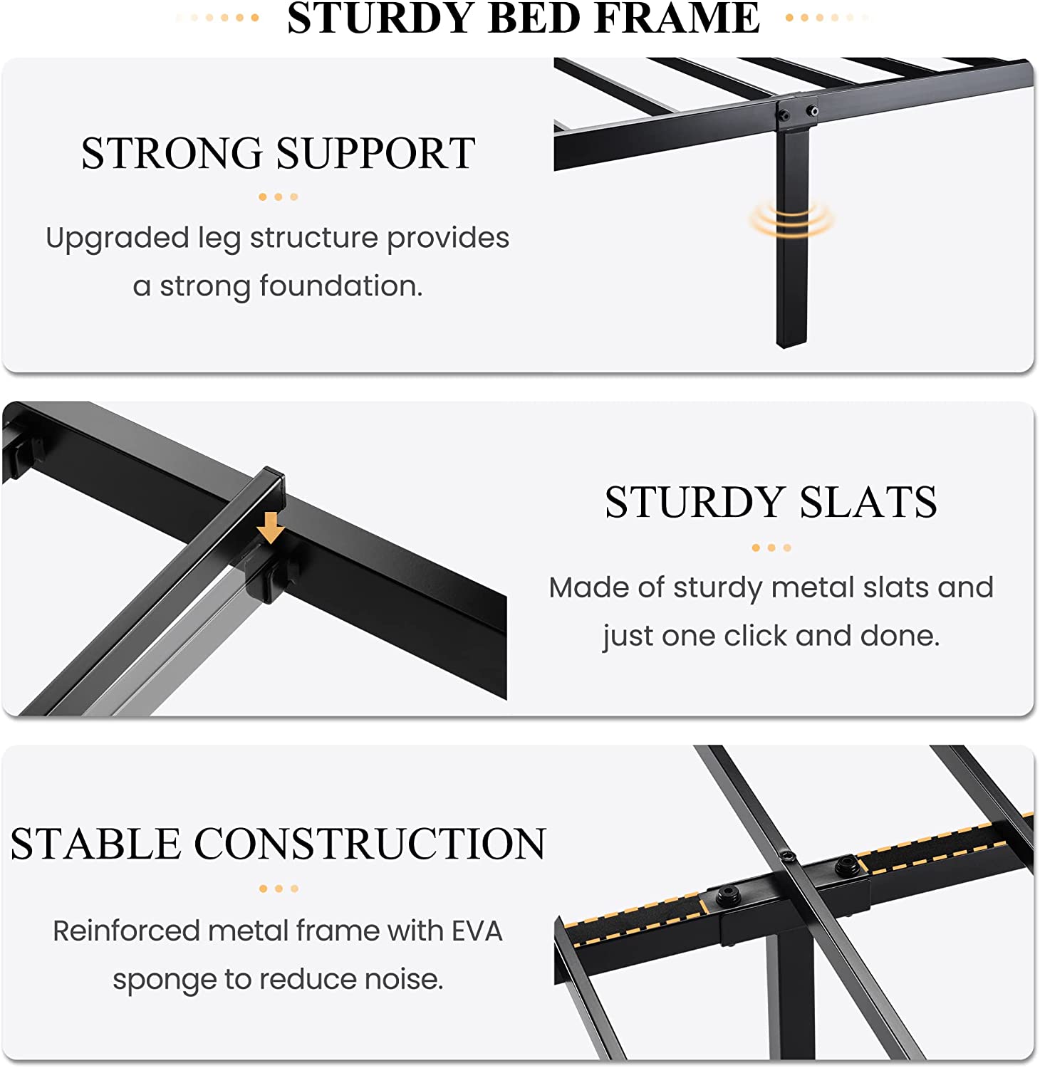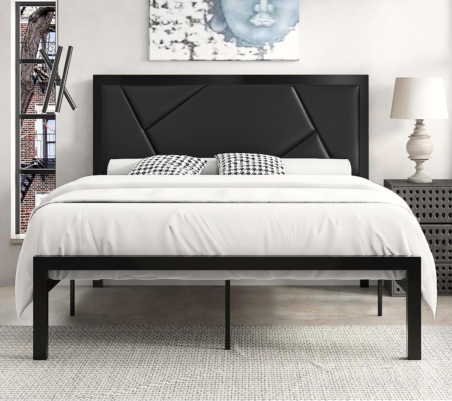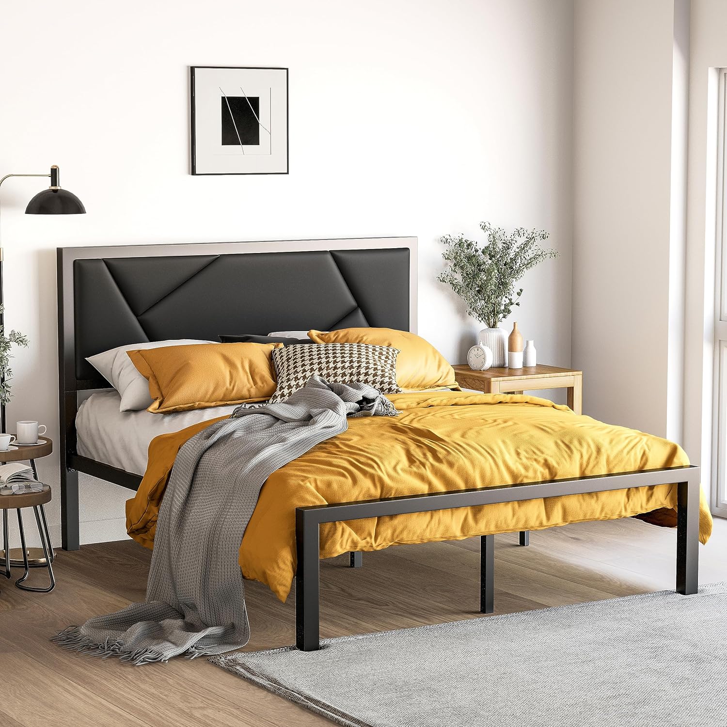 VECELO Twin Size Metal Platform Bed Frame with Faux Leather Headboard, Underbed Storage, No Box Spring Needed, Black
