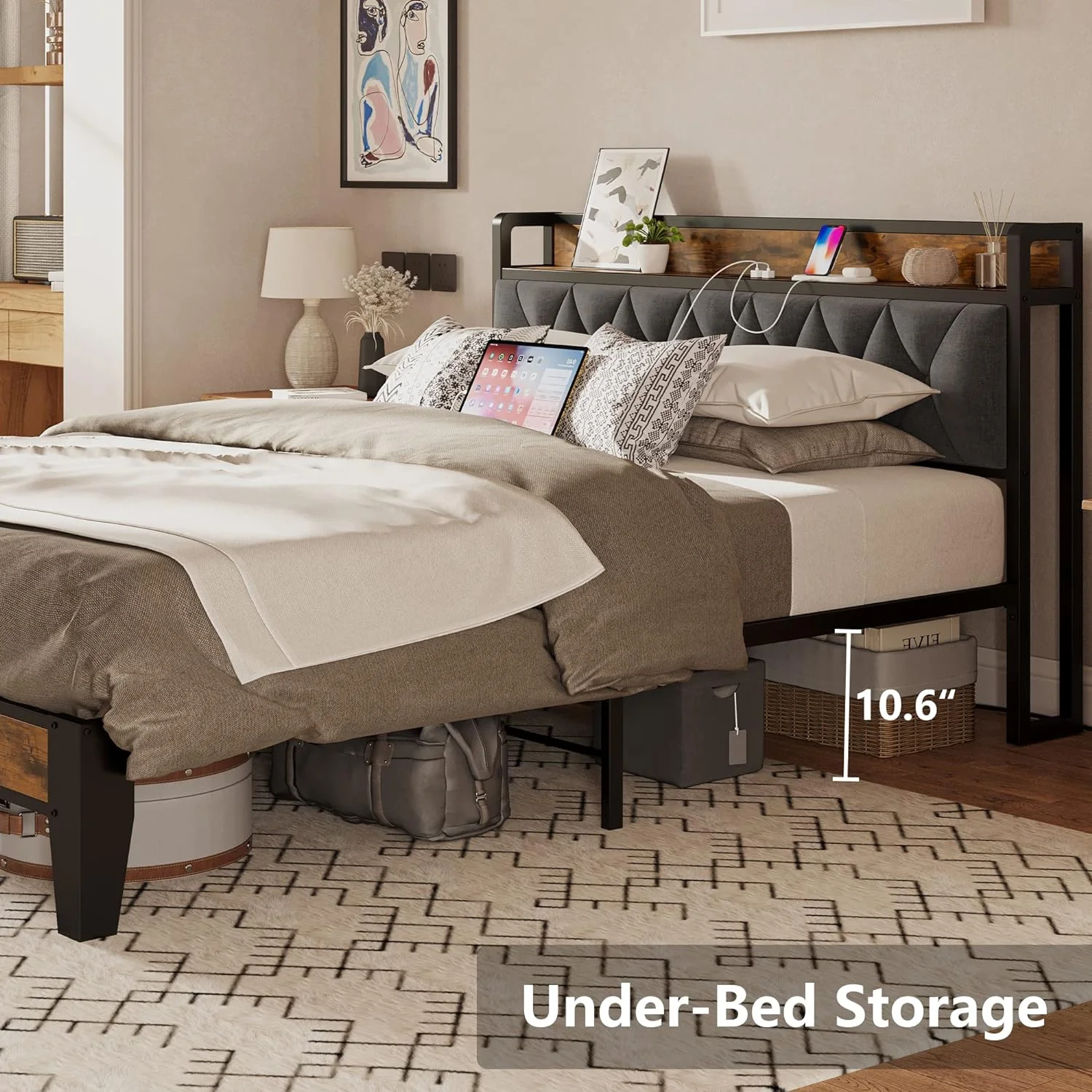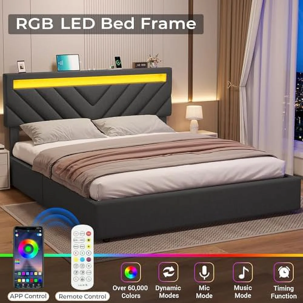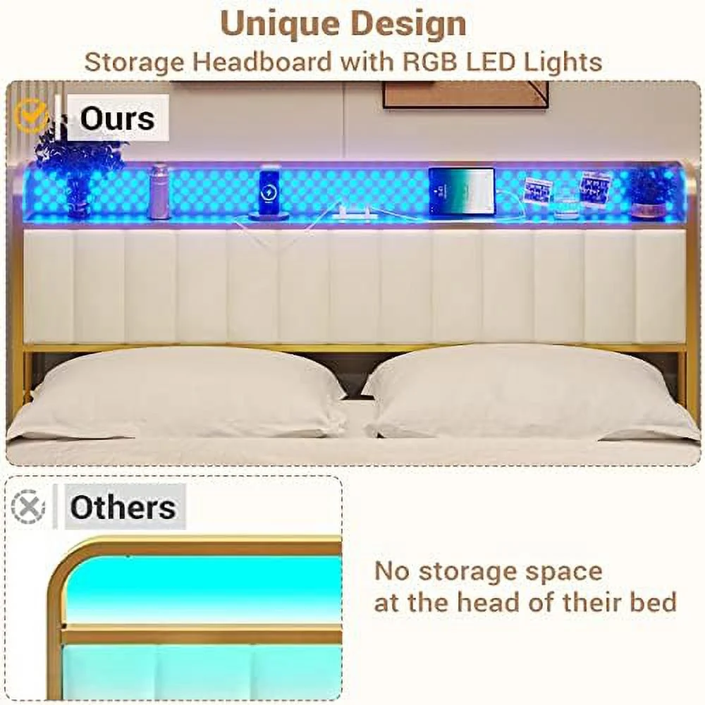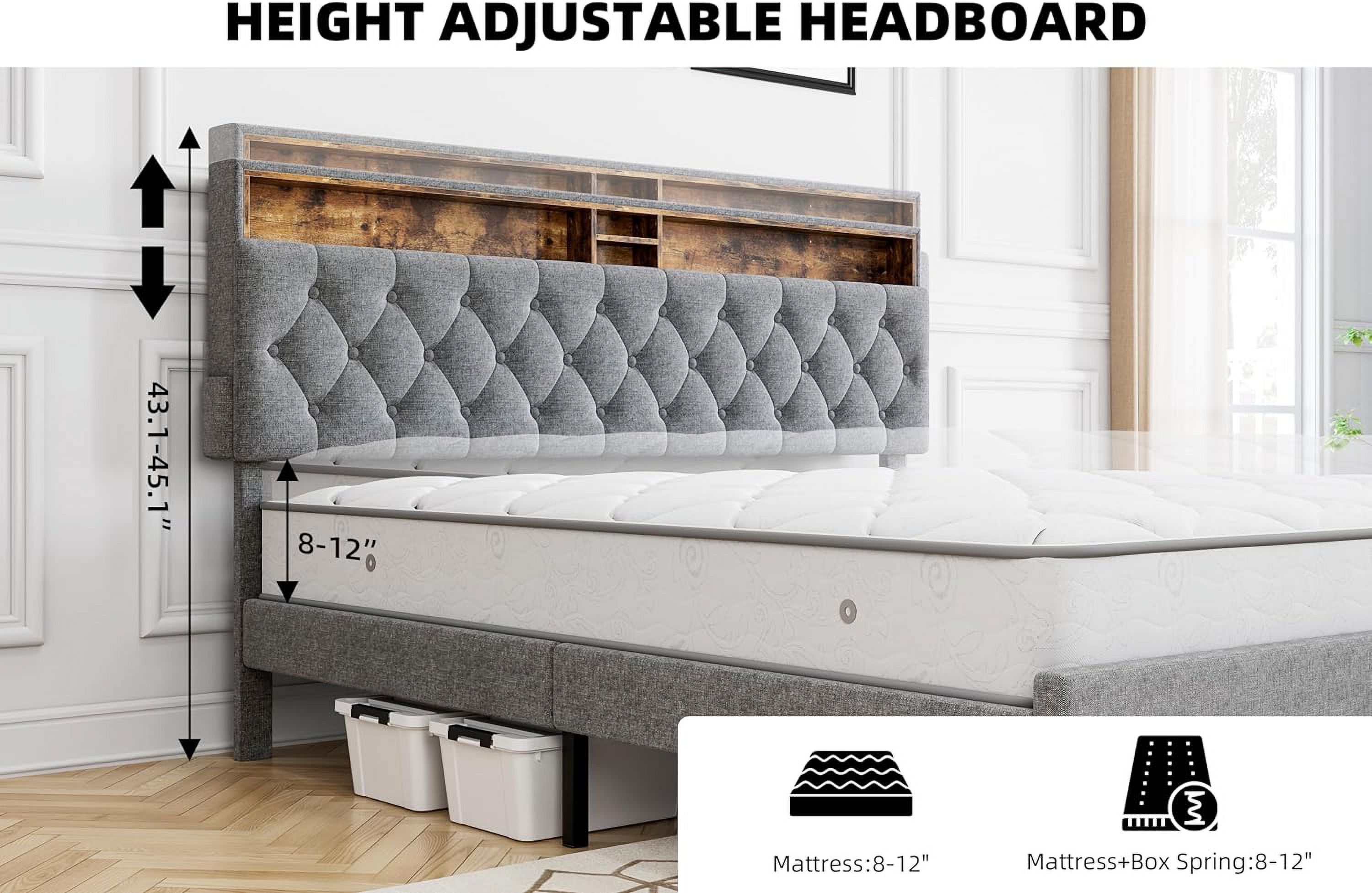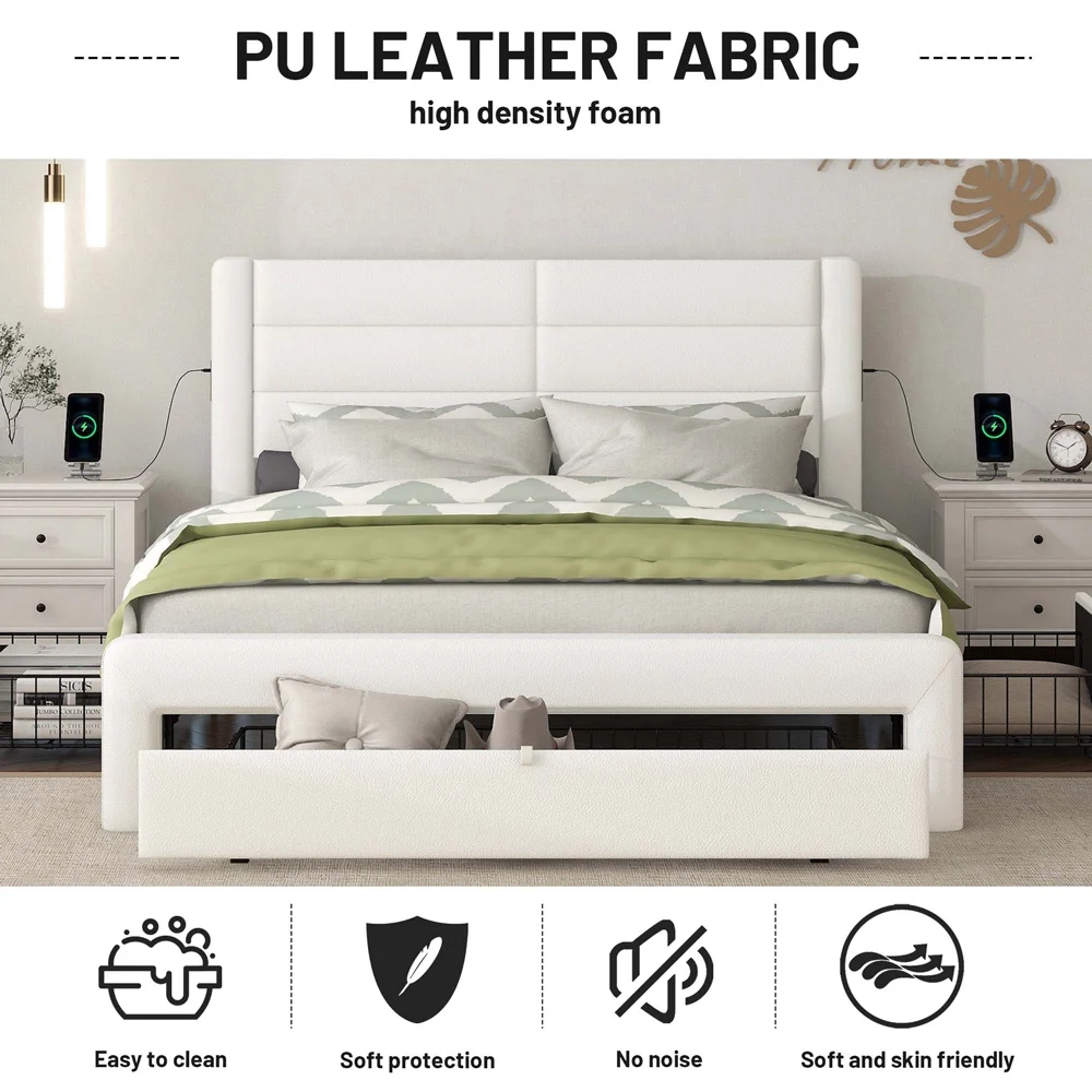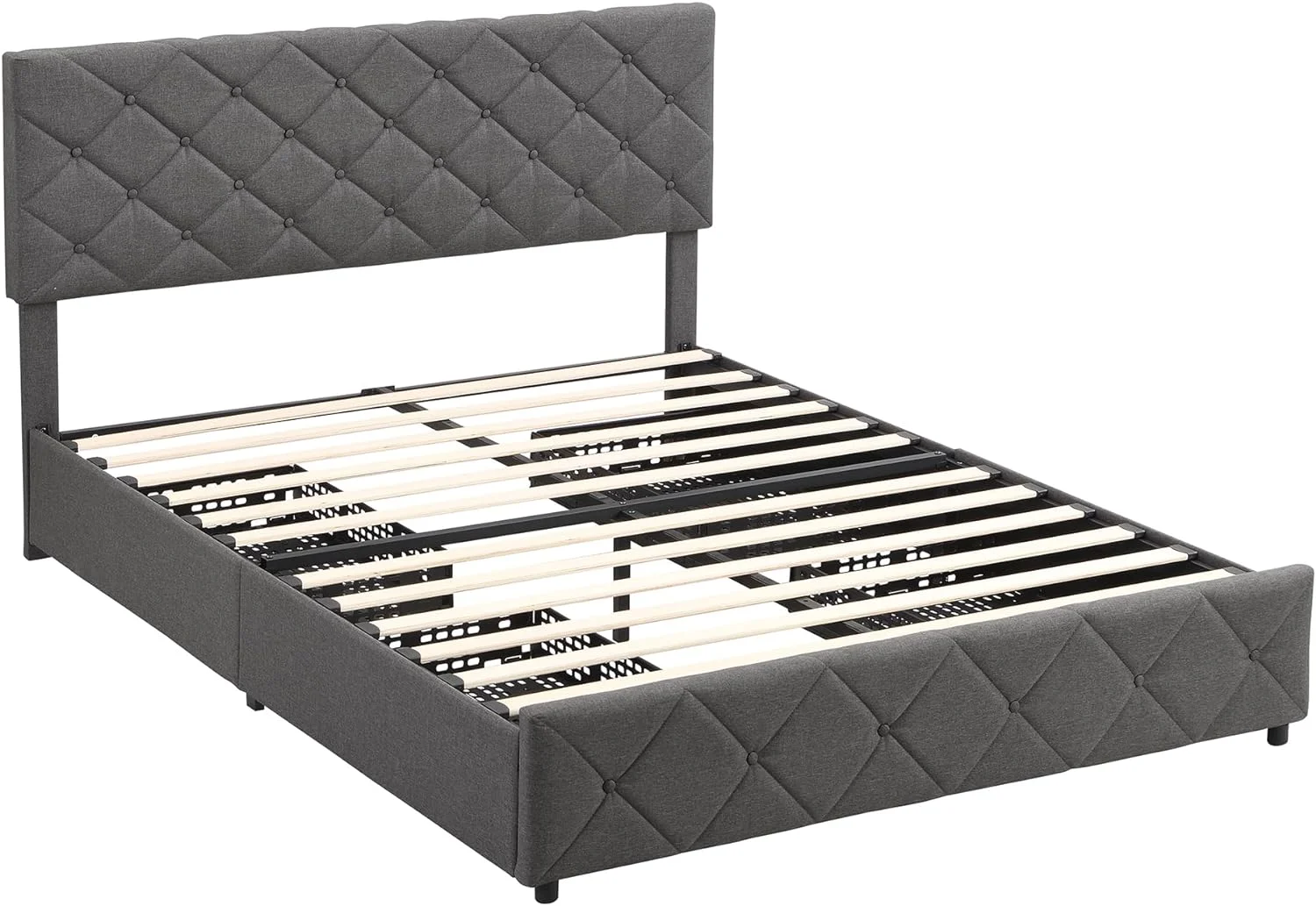Queen Size Upholstered Bed Frame with Headboard and 4 Storage Drawers No Box Spring Needed Easy Assembly Heavy Duty