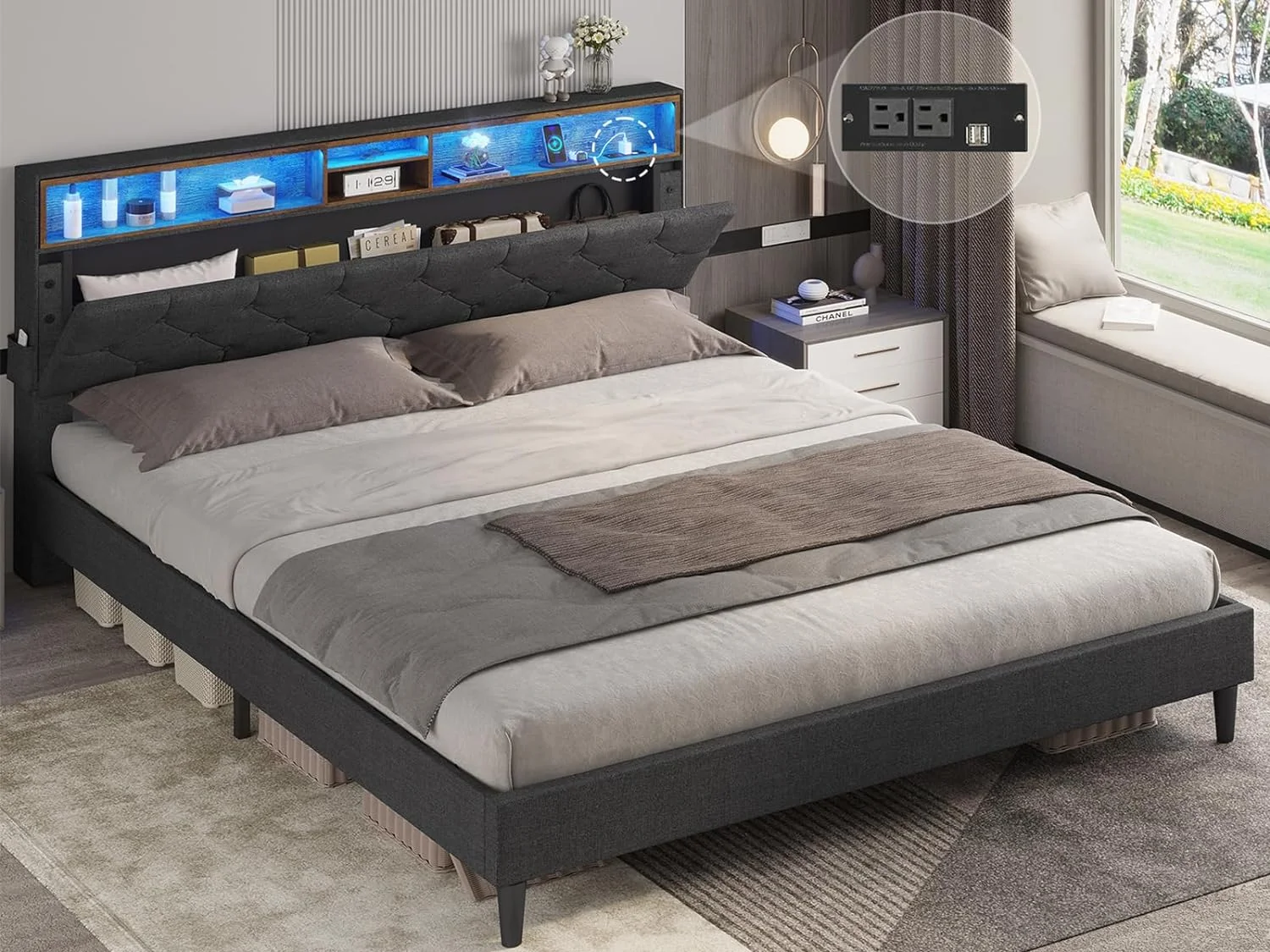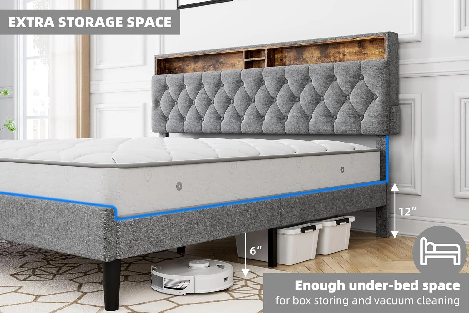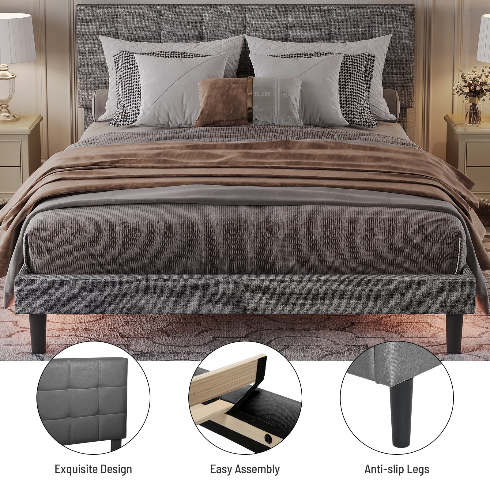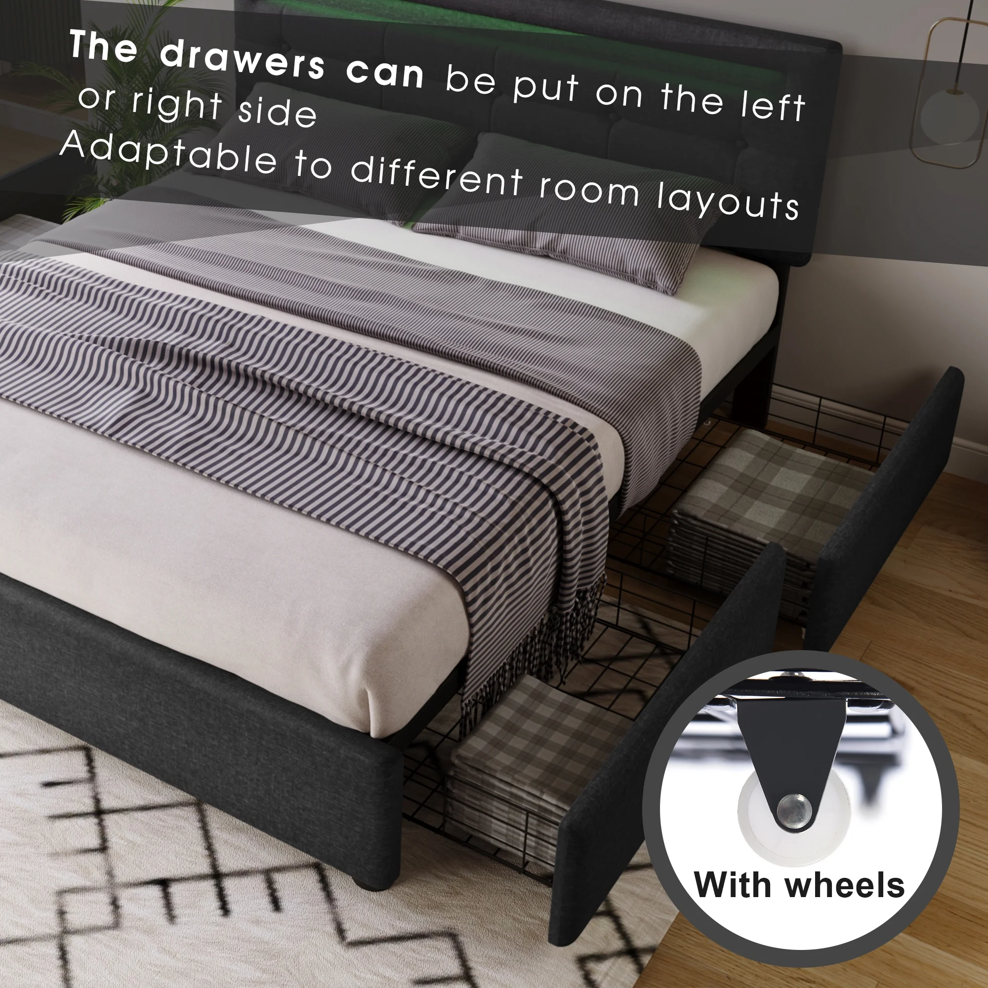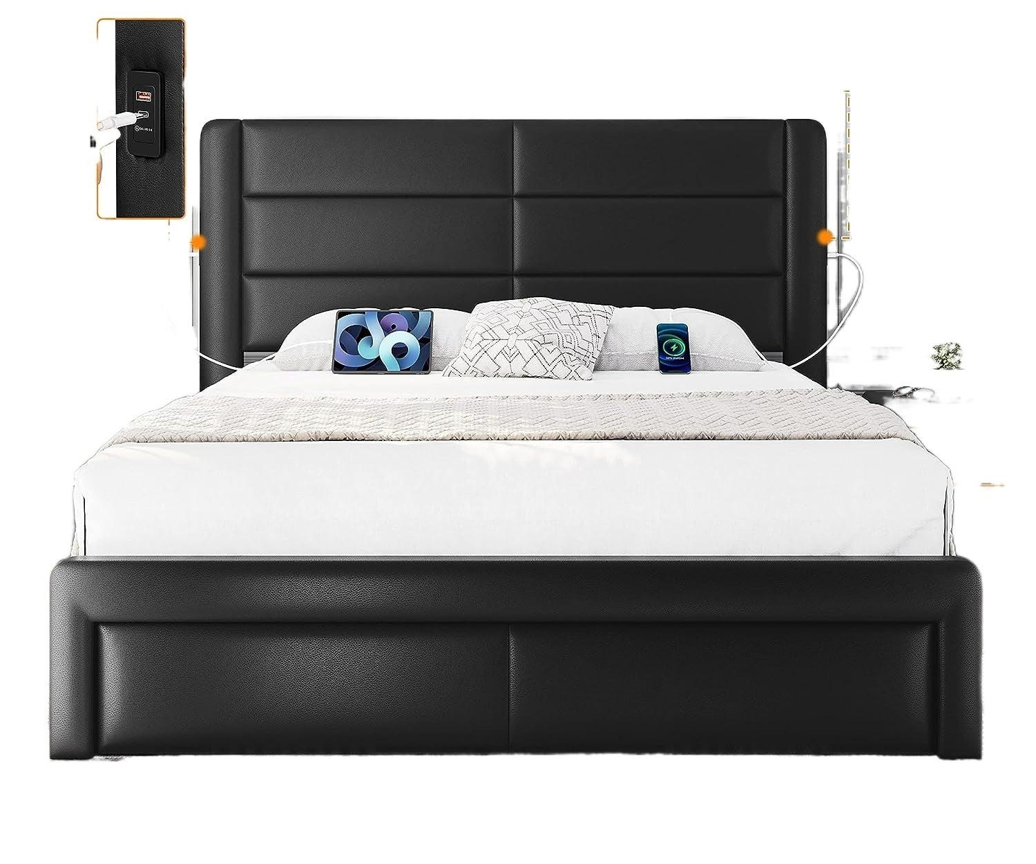 Queen Size Upholstered Bed Frame with Headboard and 4 Storage Drawers No Box Spring Needed Easy Assembly Heavy Duty