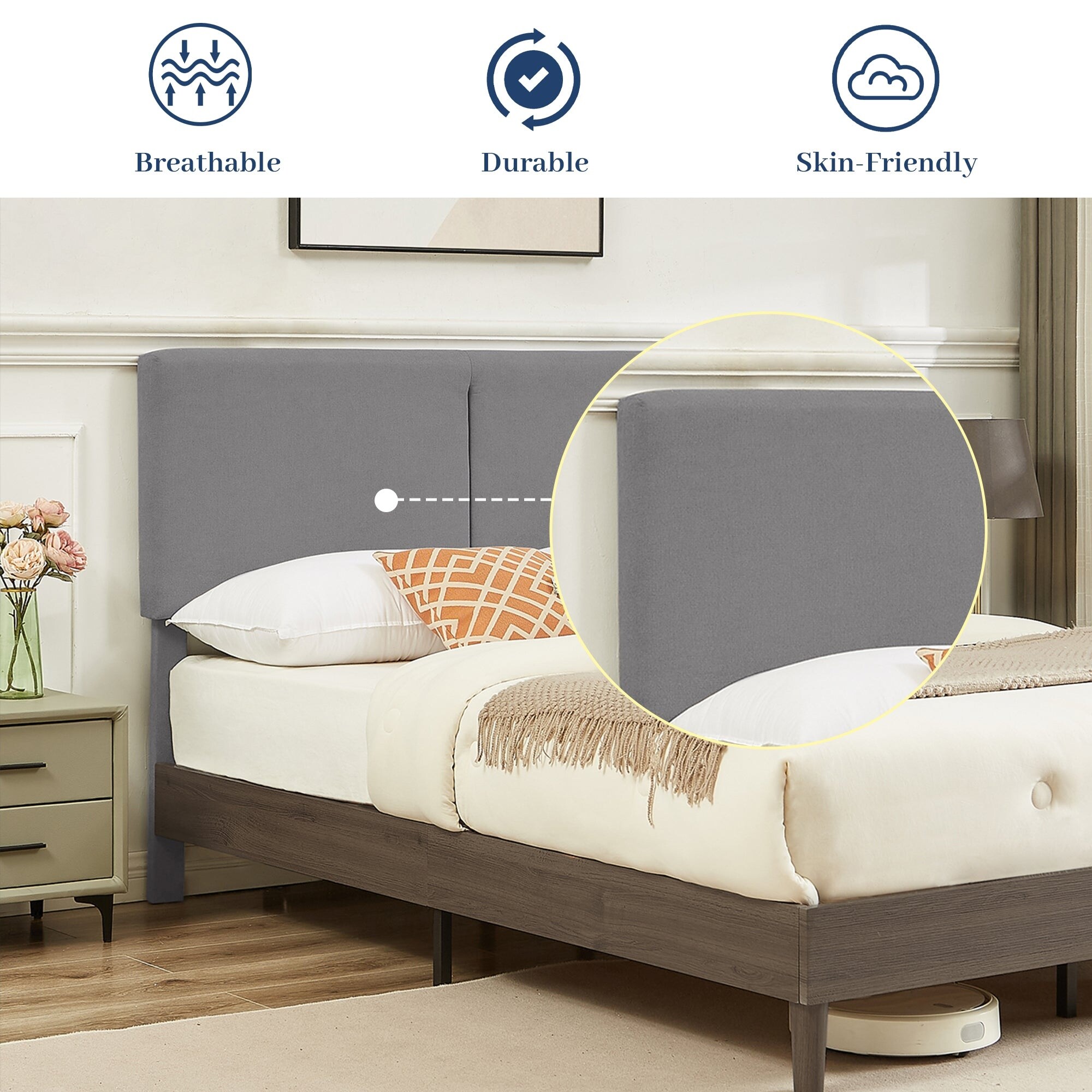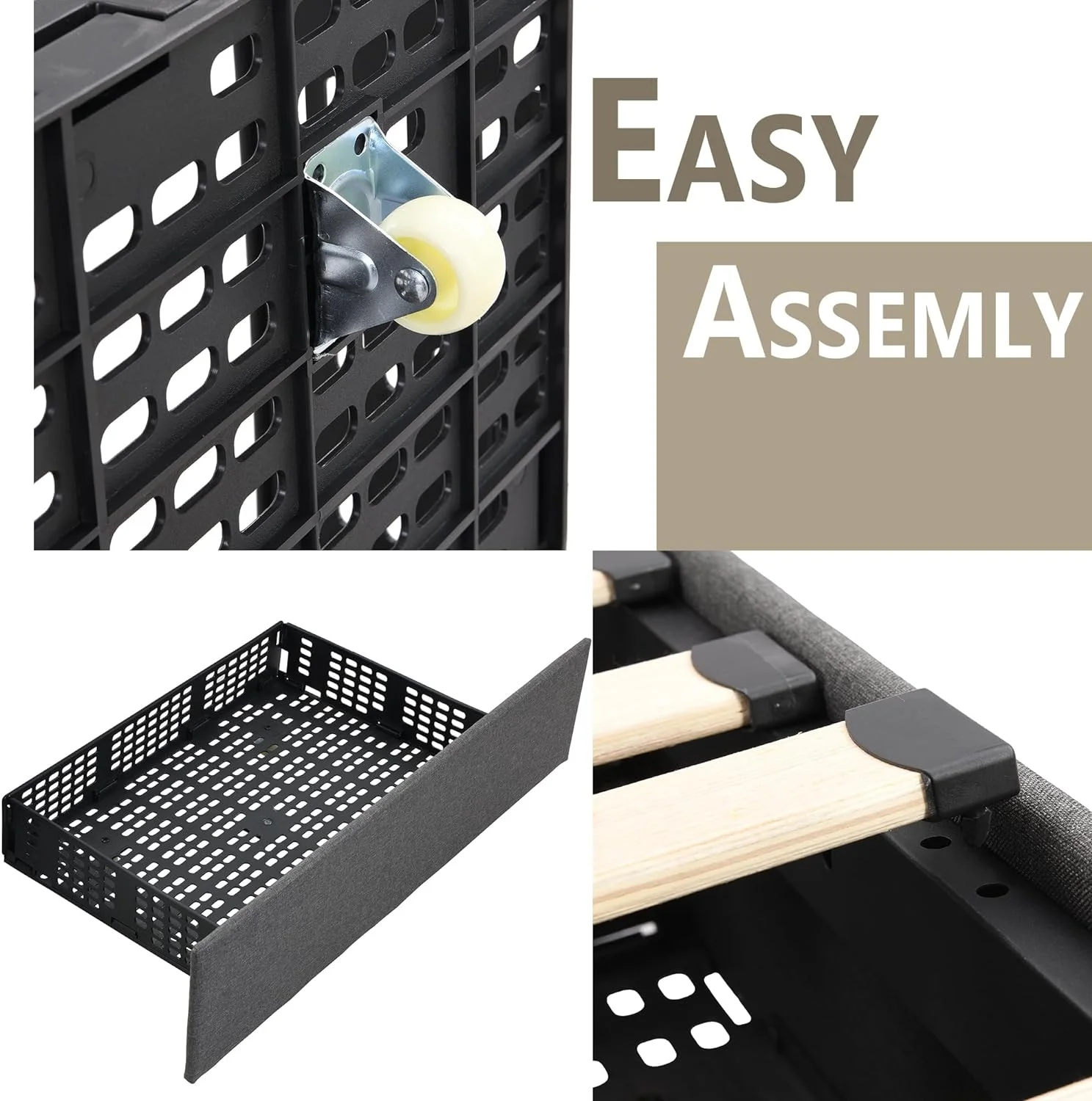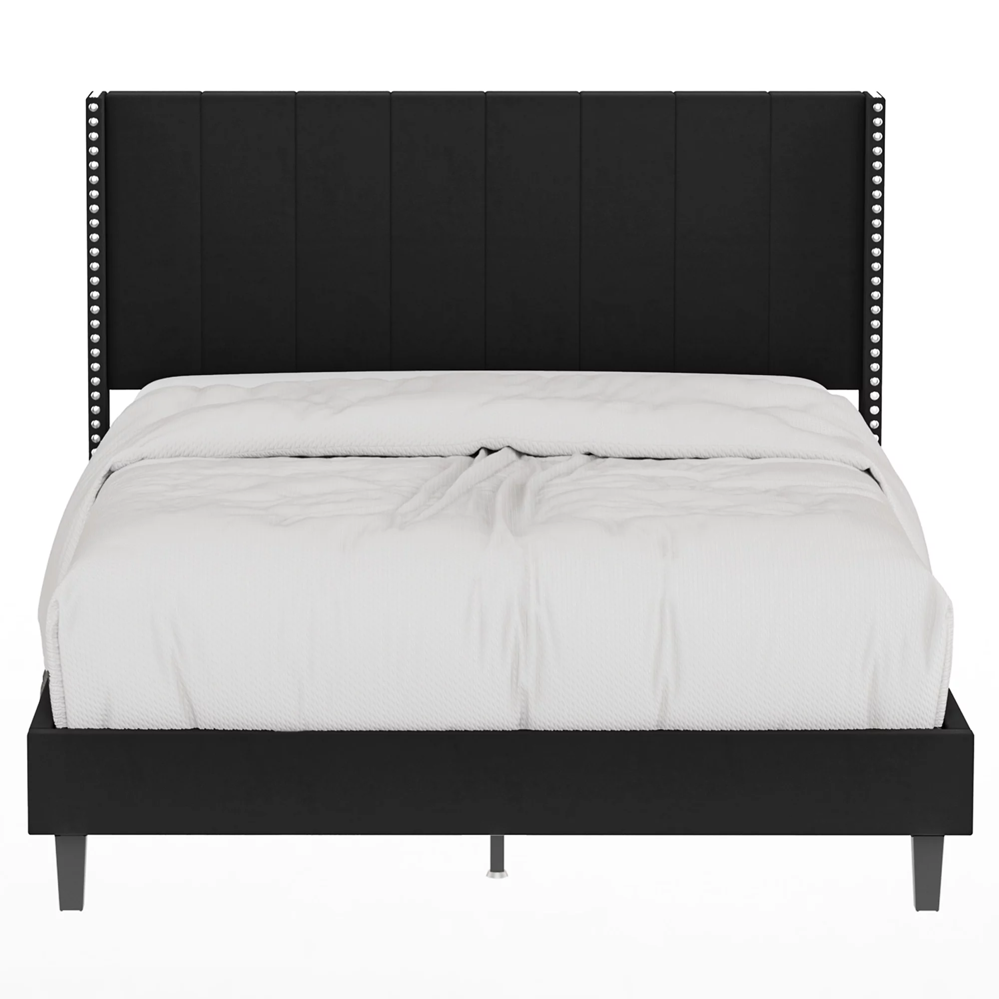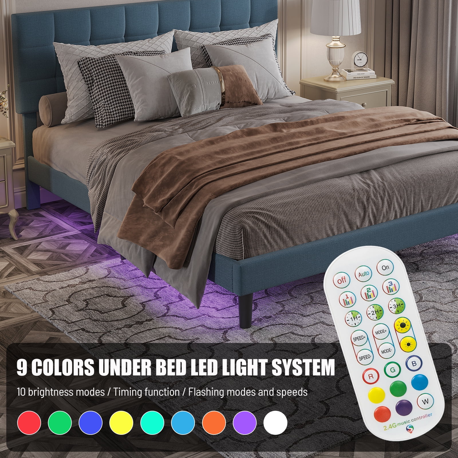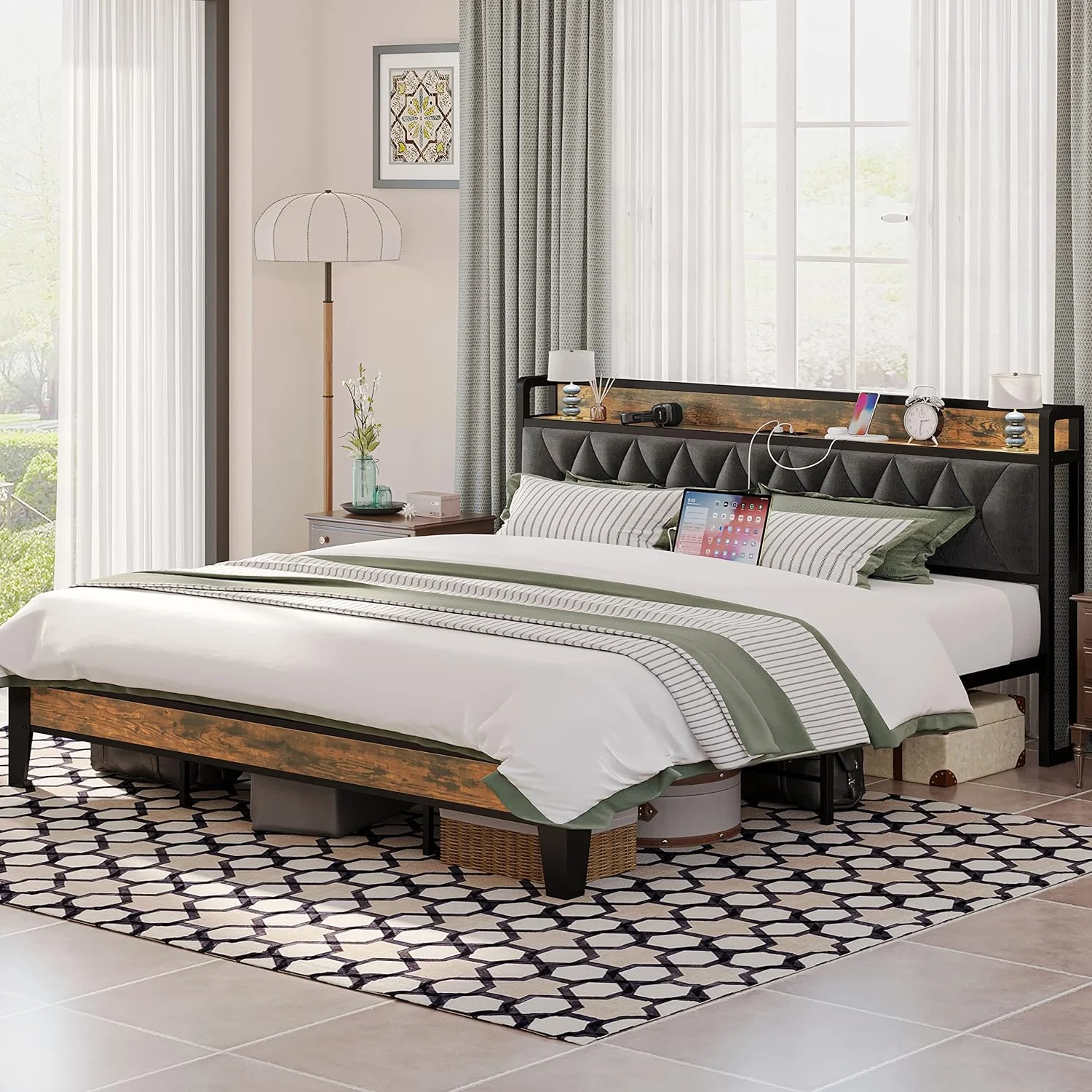 Queen Size Upholstered Bed Frame with Headboard and 4 Storage Drawers No Box Spring Needed Easy Assembly Heavy Duty