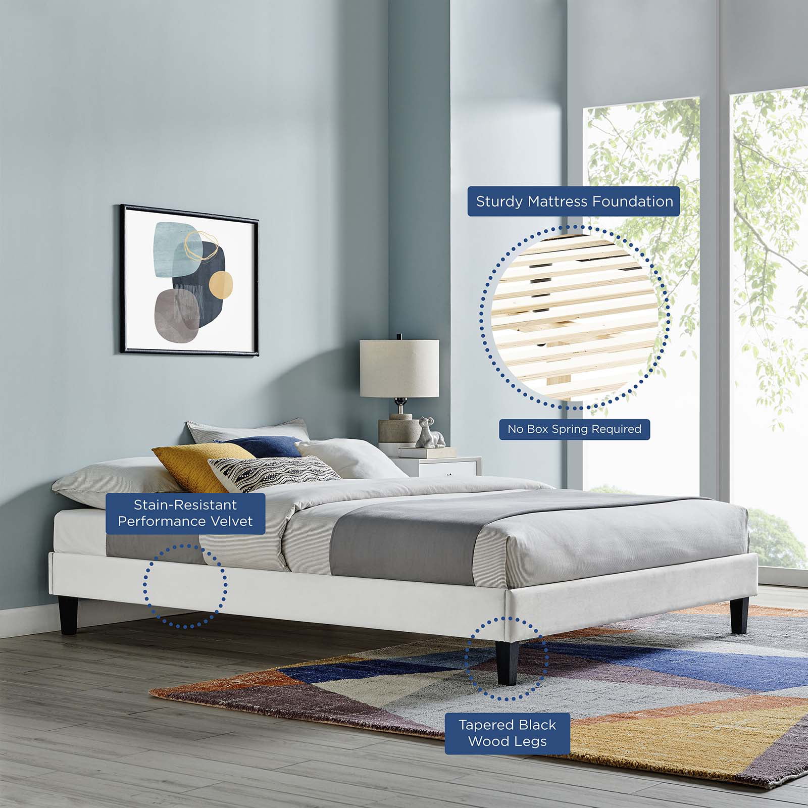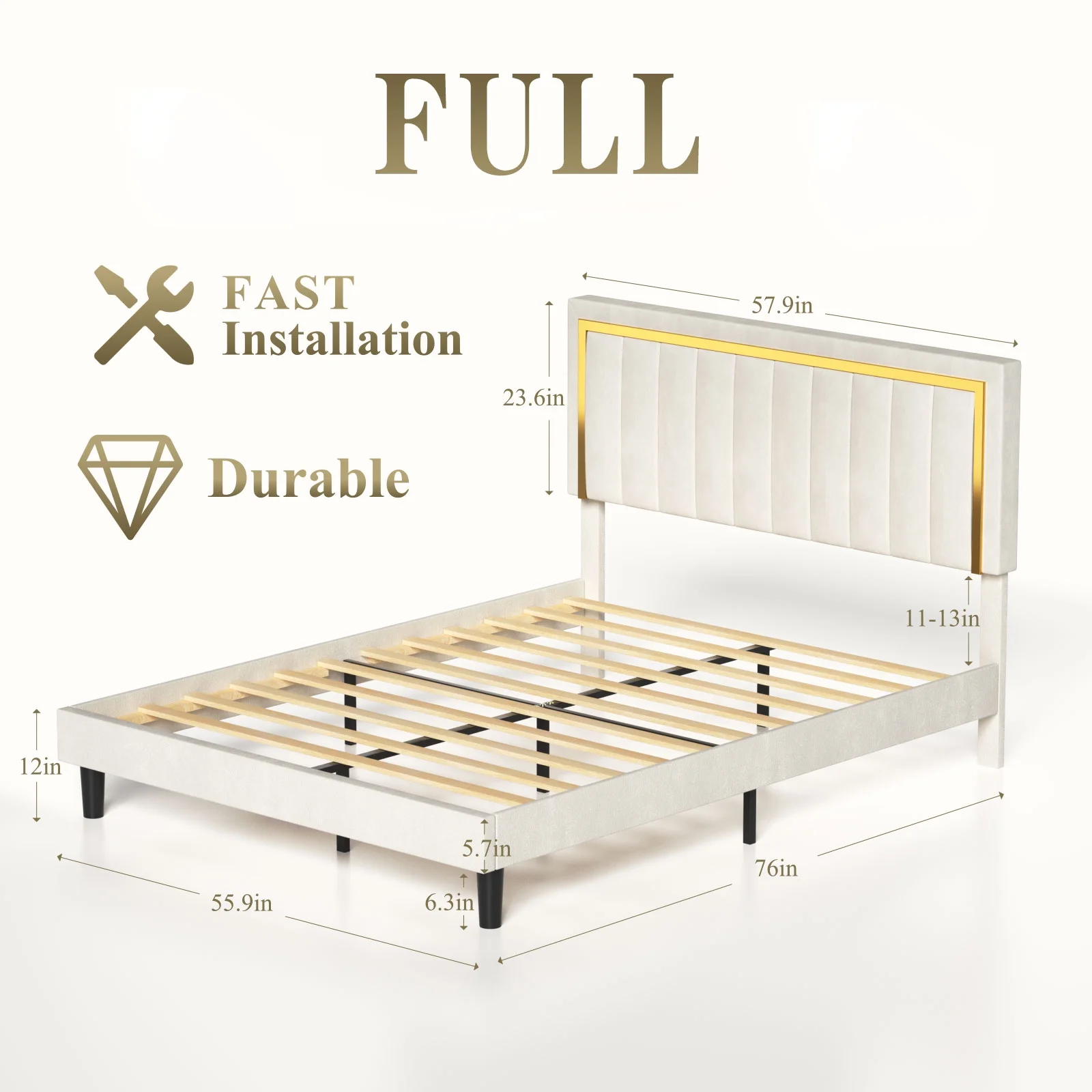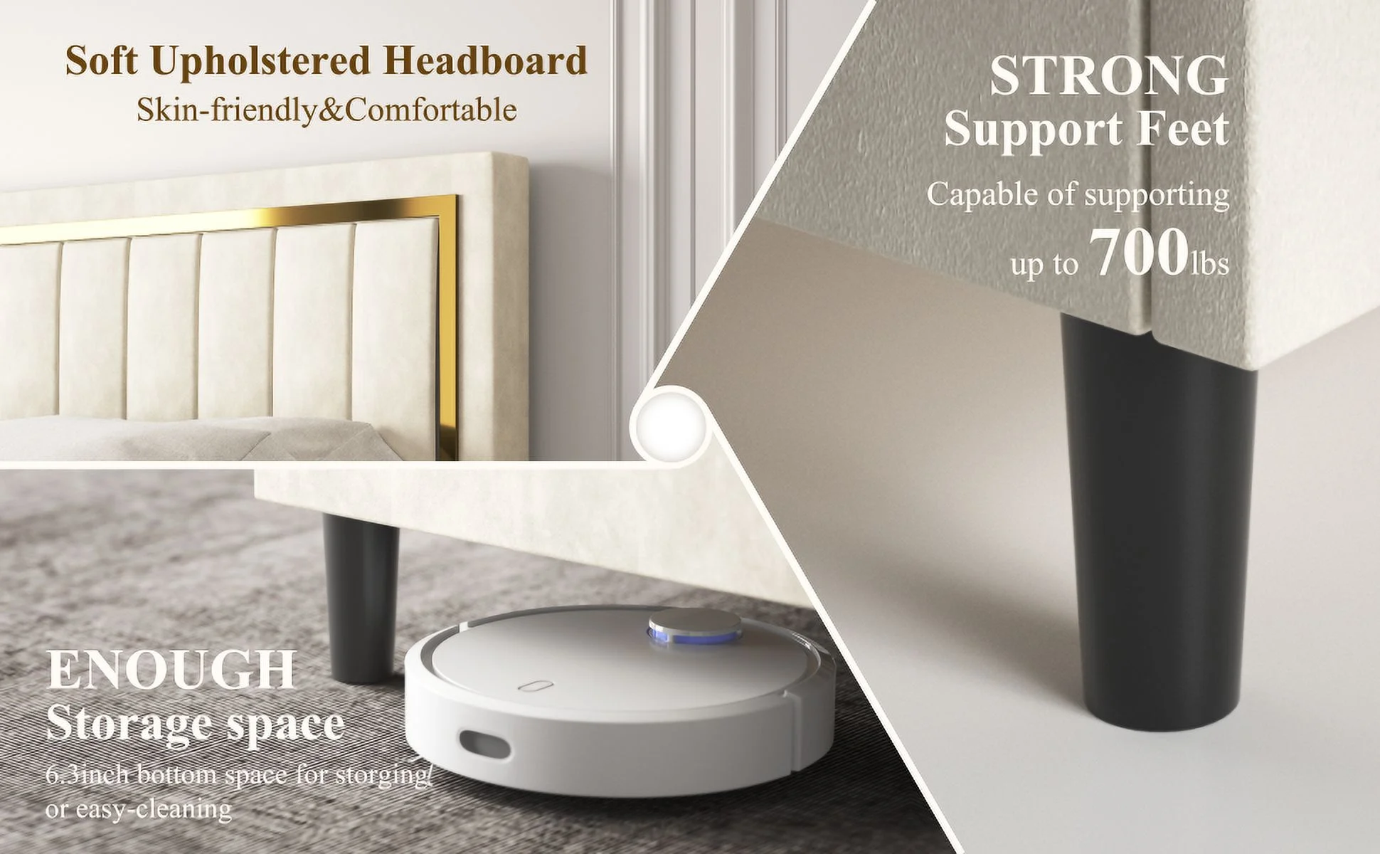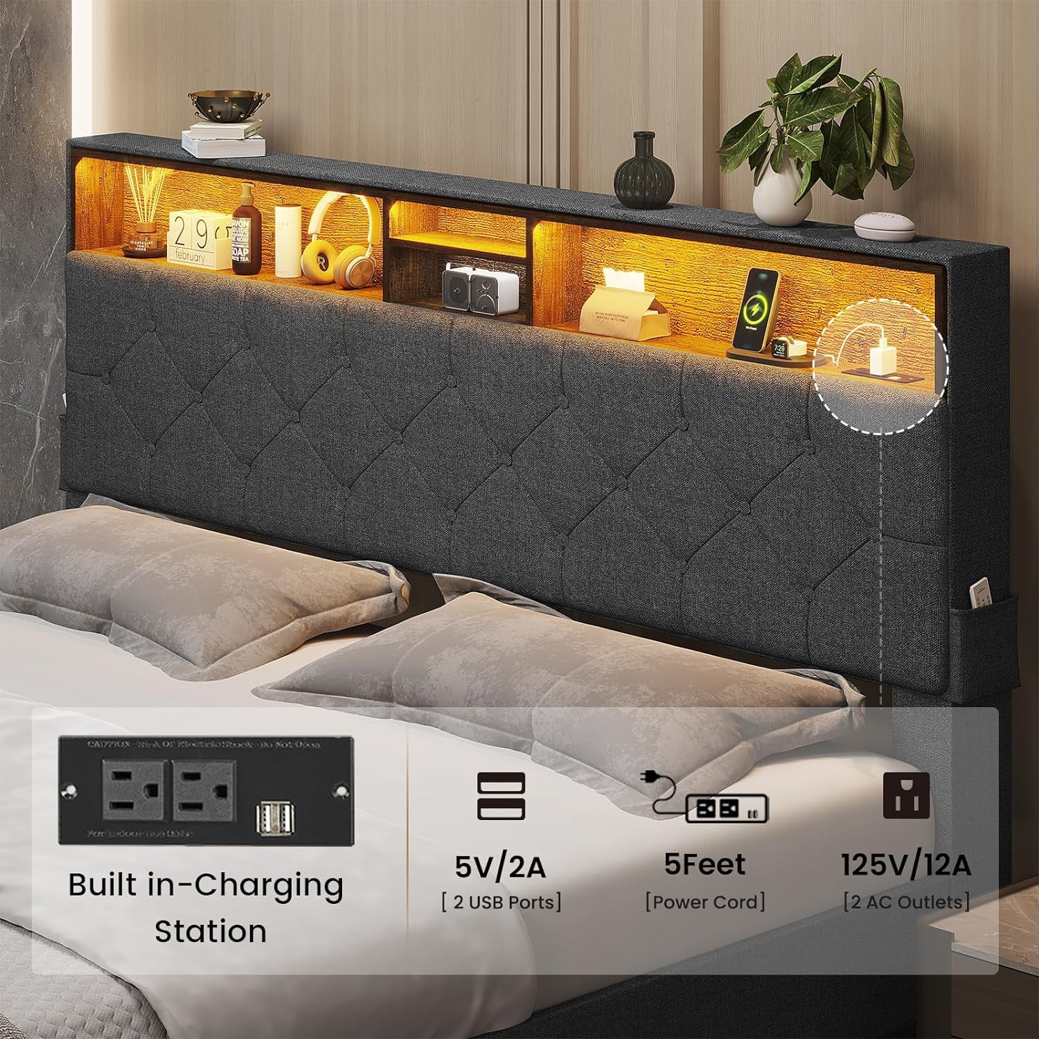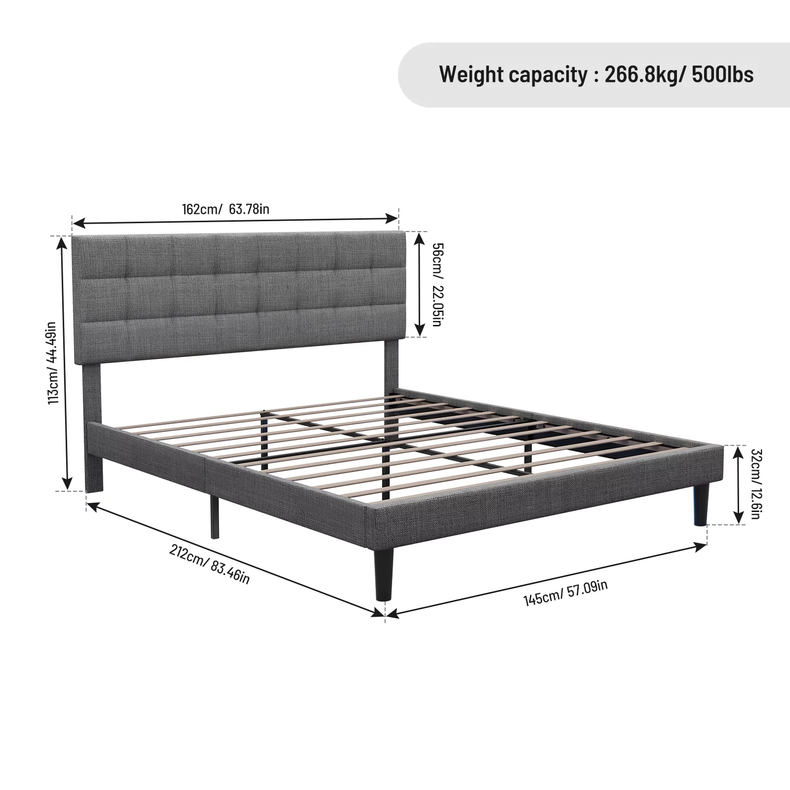 Queen Size Upholstered Bed Frame with Headboard and 4 Storage Drawers No Box Spring Needed Easy Assembly Heavy Duty