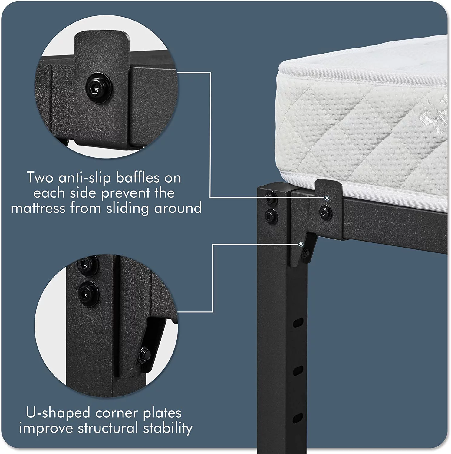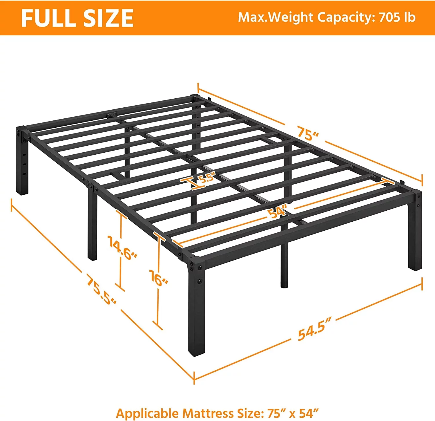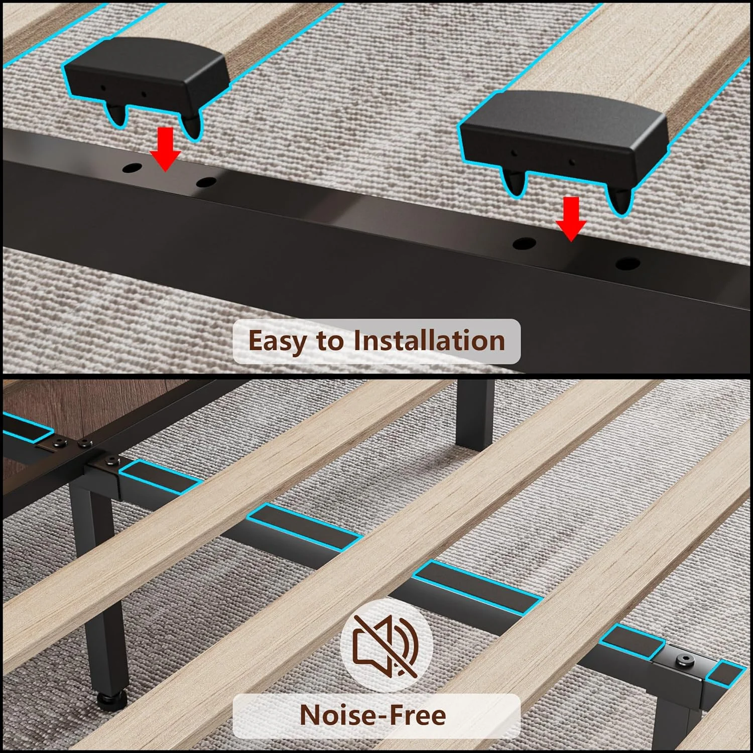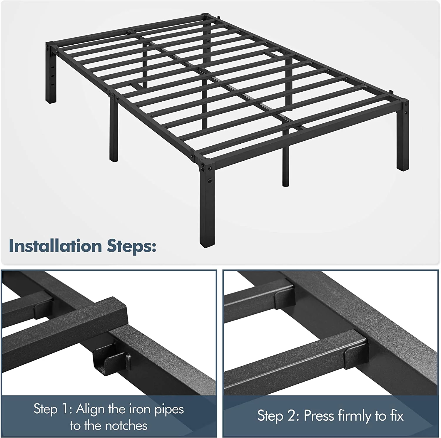 Gecheer Metal Bed Frame with Headboard and Footboard Black 59.8"x78.7"