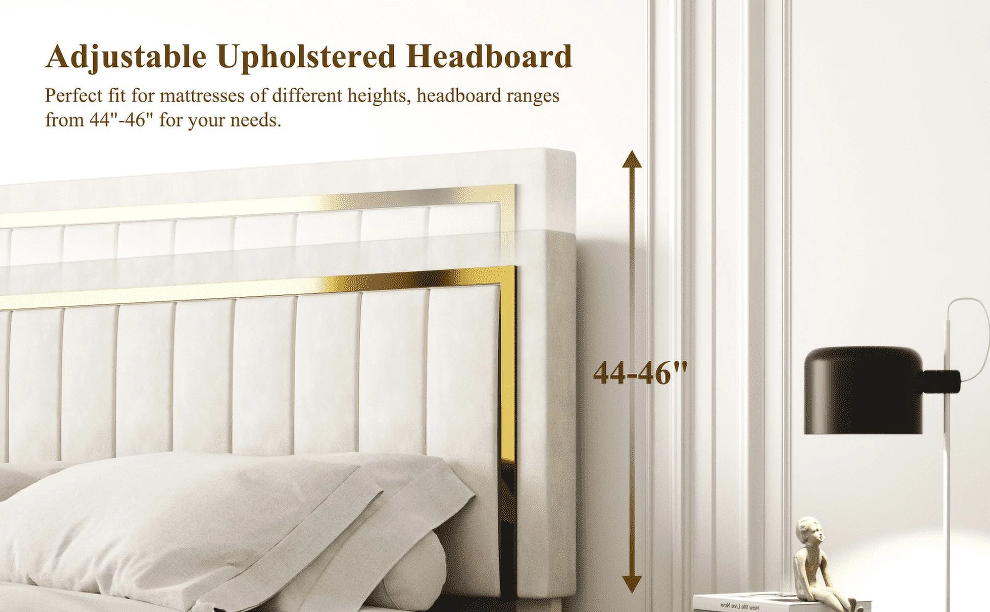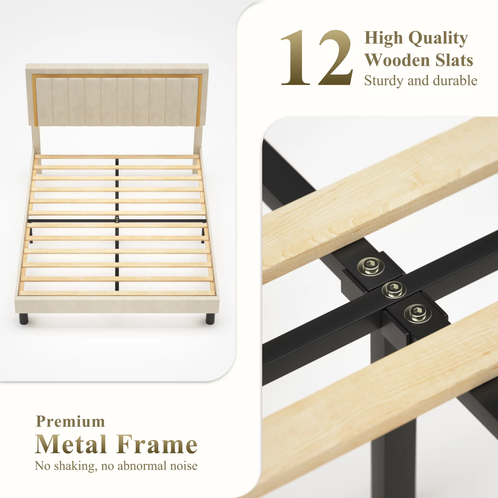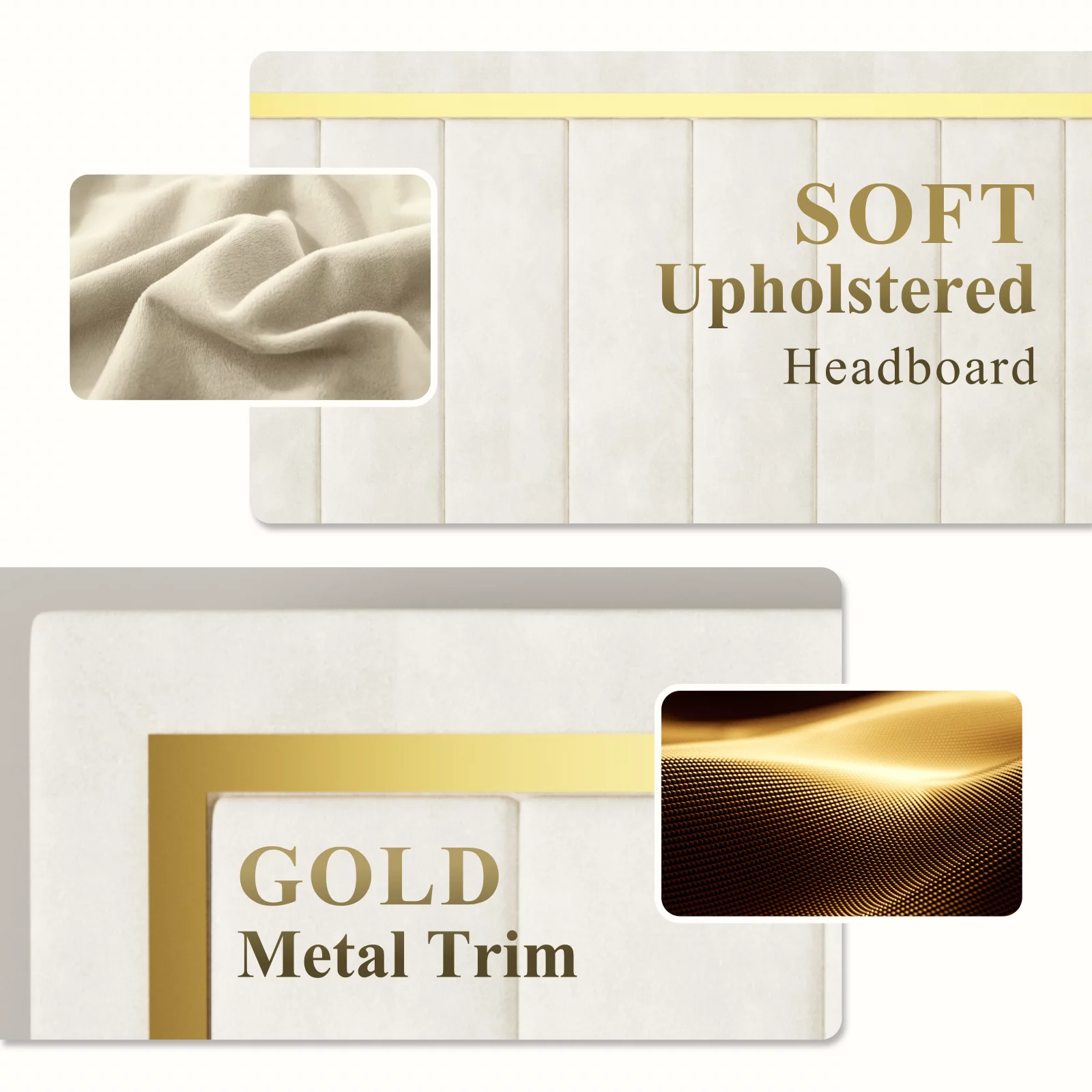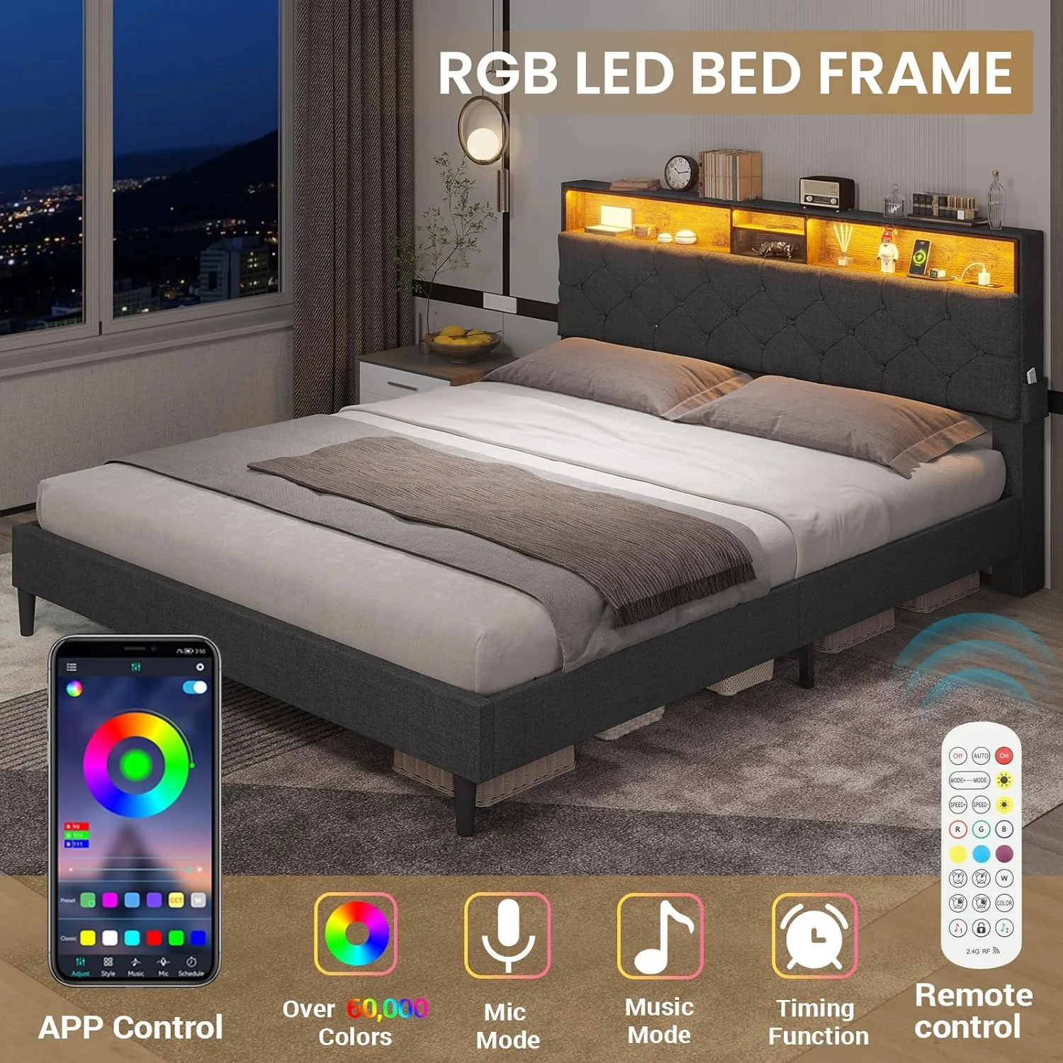 Full Upholstered Smart LED Bed Frame with Elegant Flowers Headboard Beige