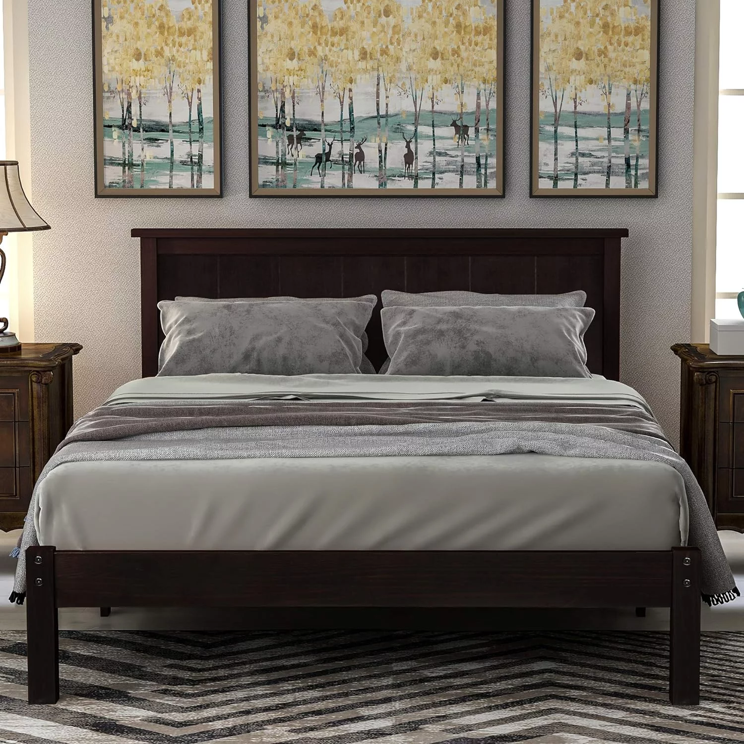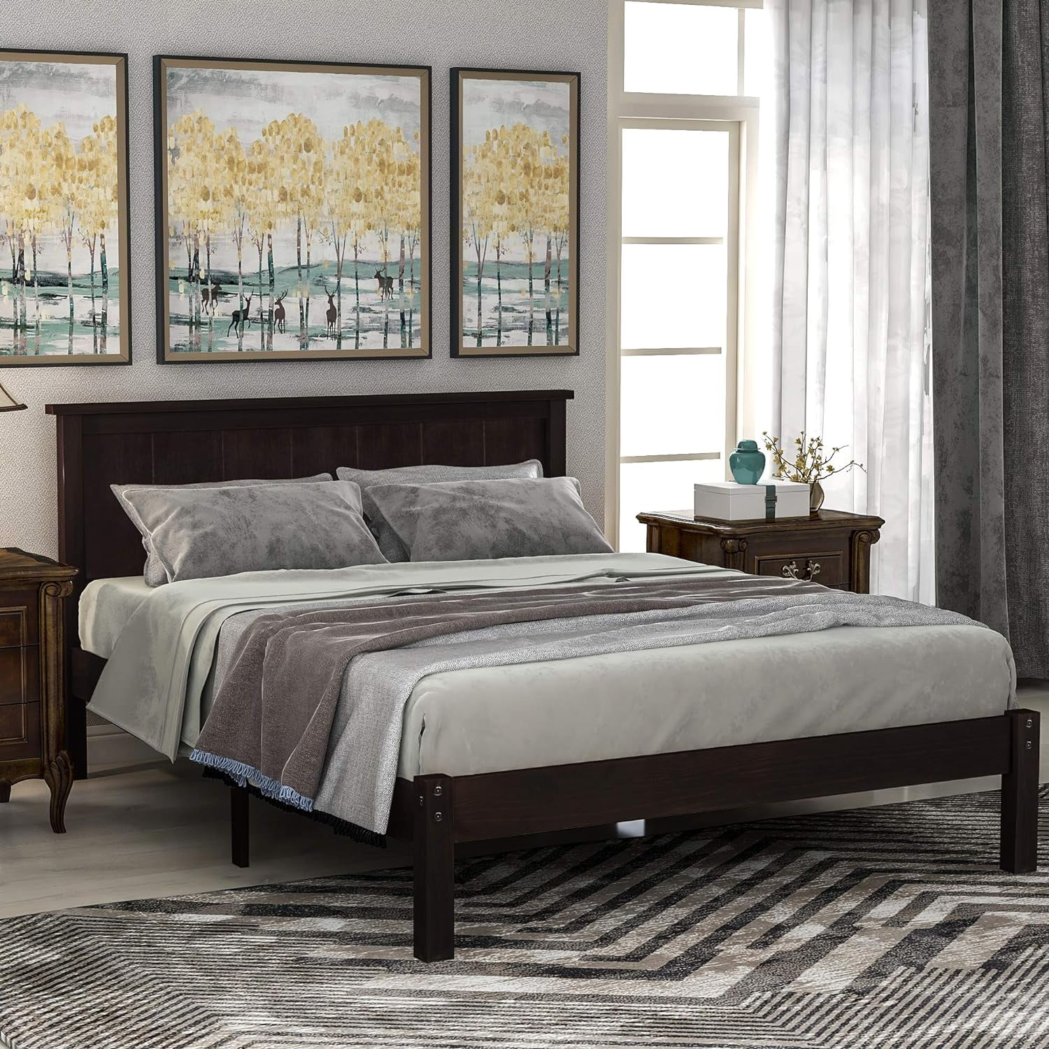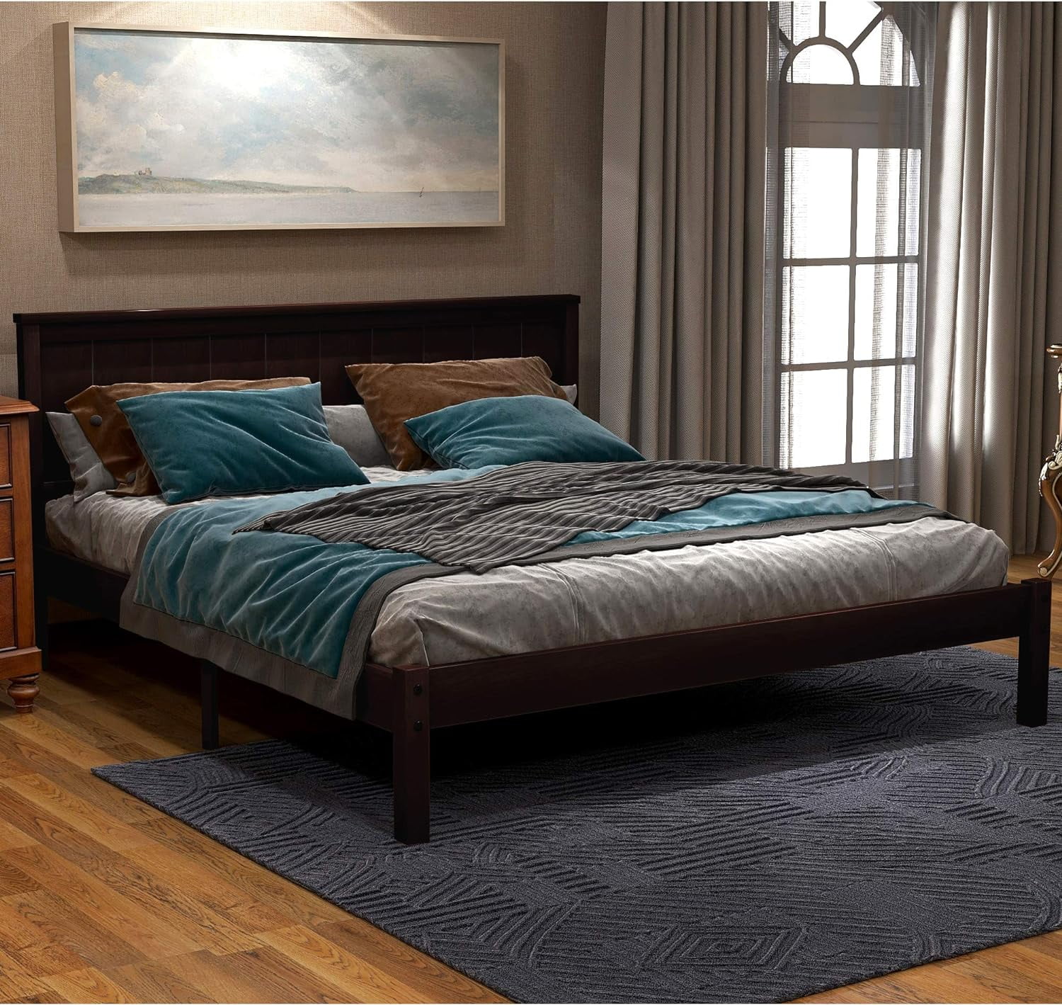 Wood Platform Bed Full Size Platform Bed Frame with Headboard for Bedroom, Living Room,No Box Spring Needed, Espresso