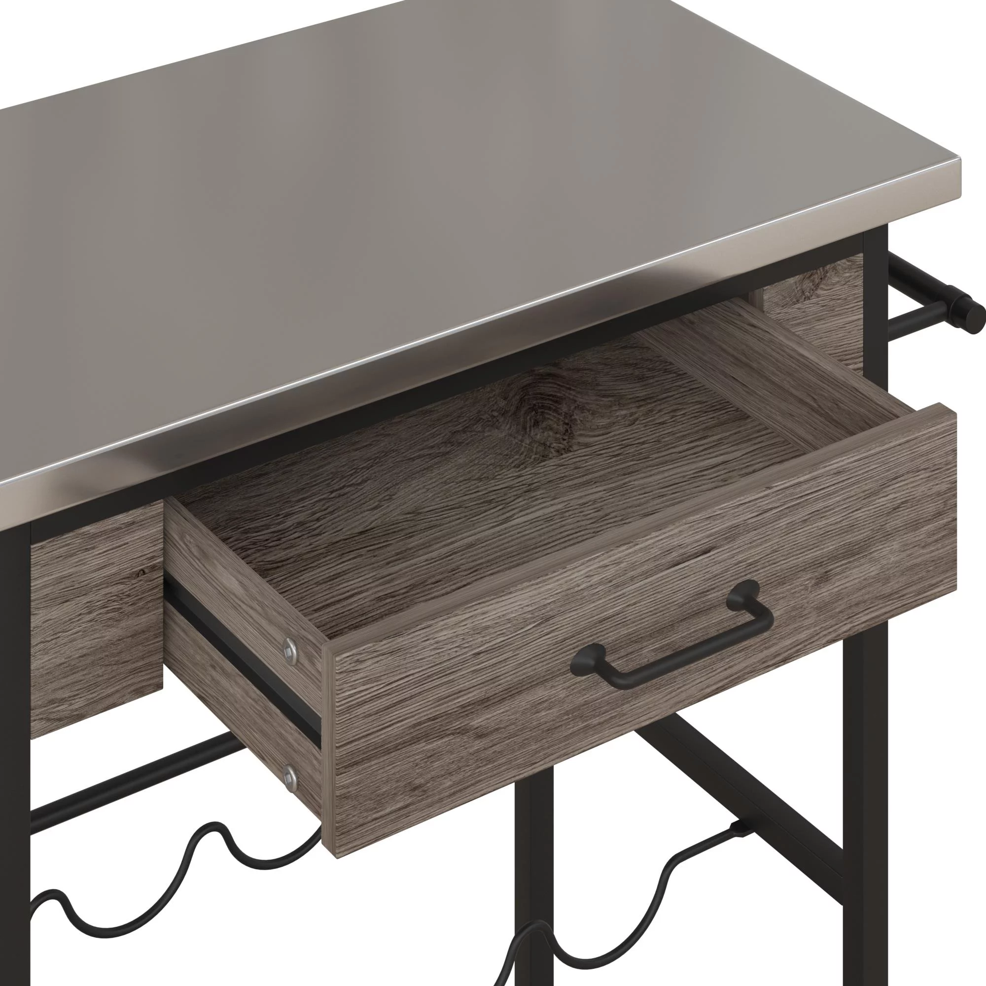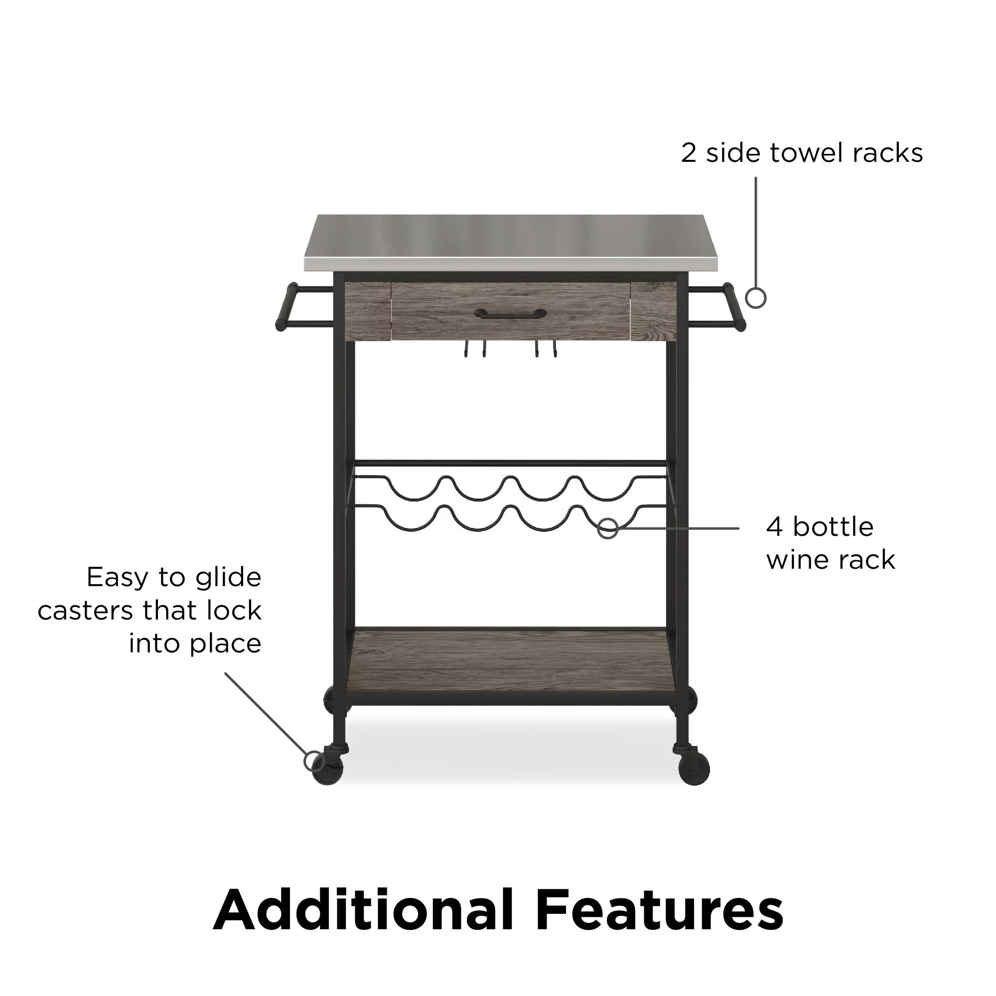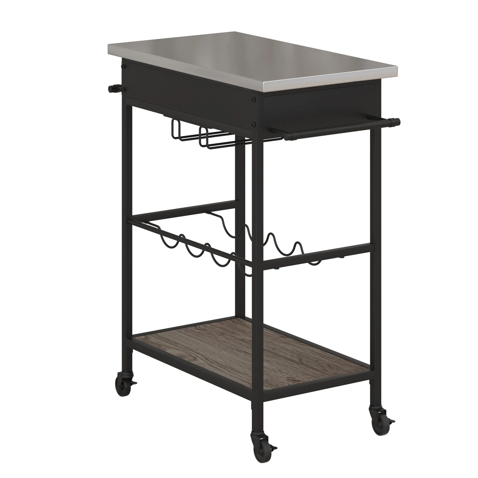 Novogratz Nora Multifunctional Kitchen Cart, Wine Rack and Pantry Storage, Stainless Steel and Black Metal, Brown