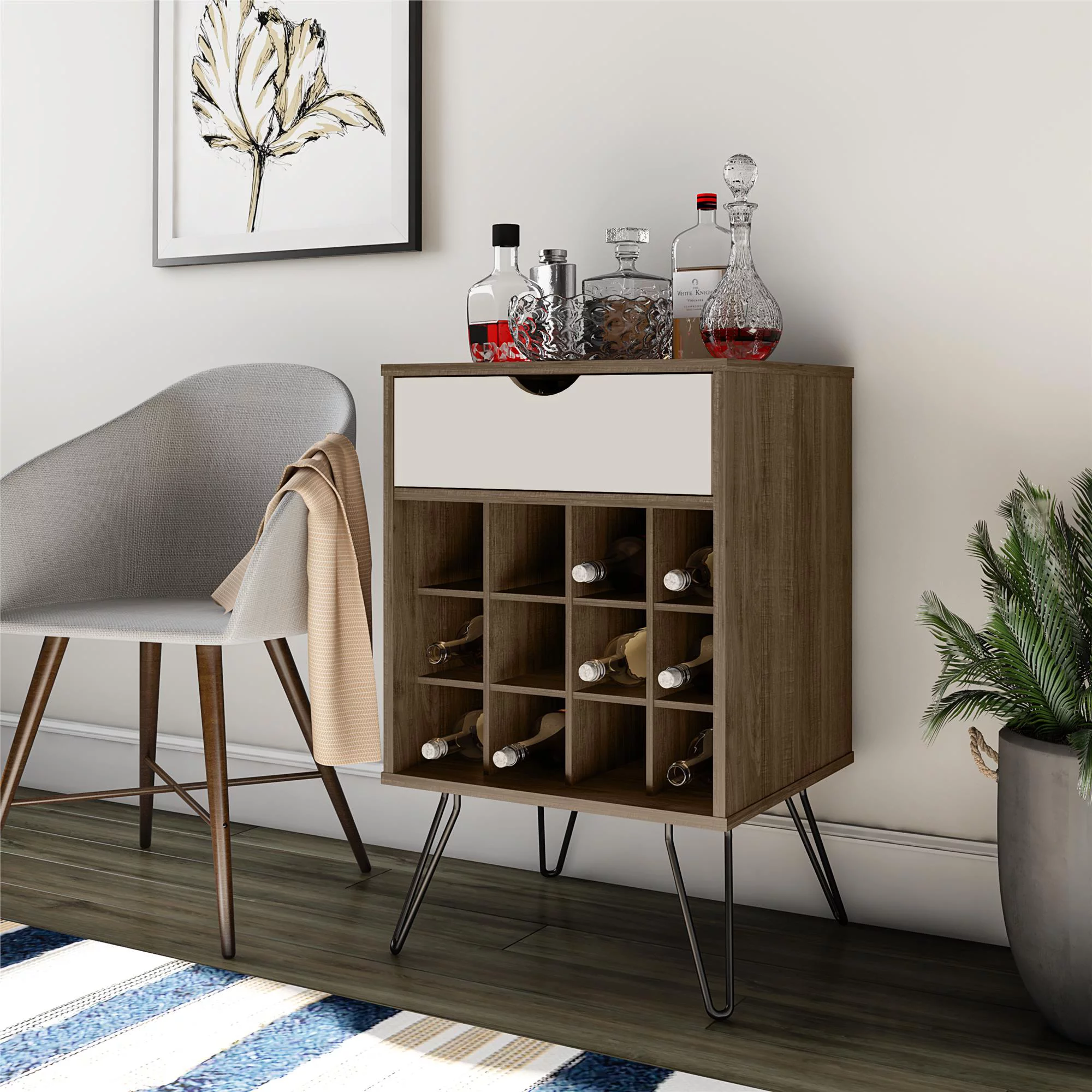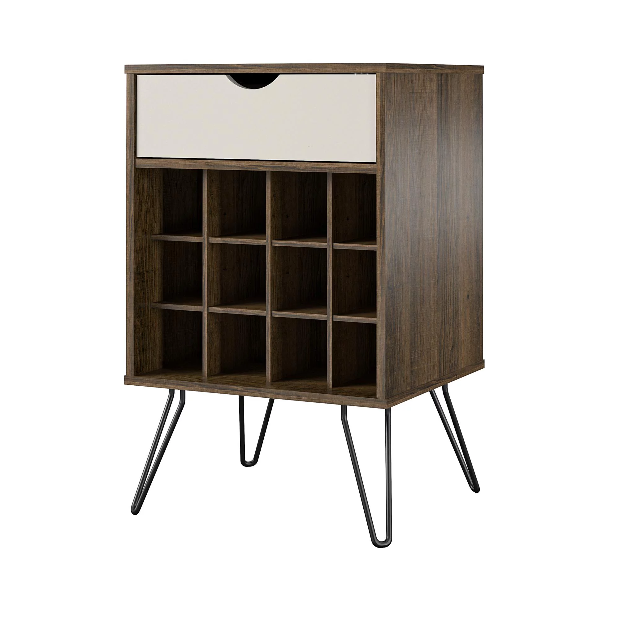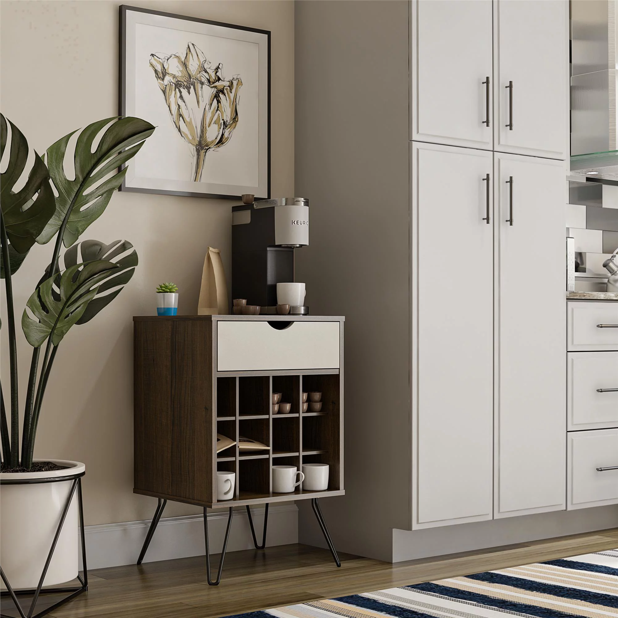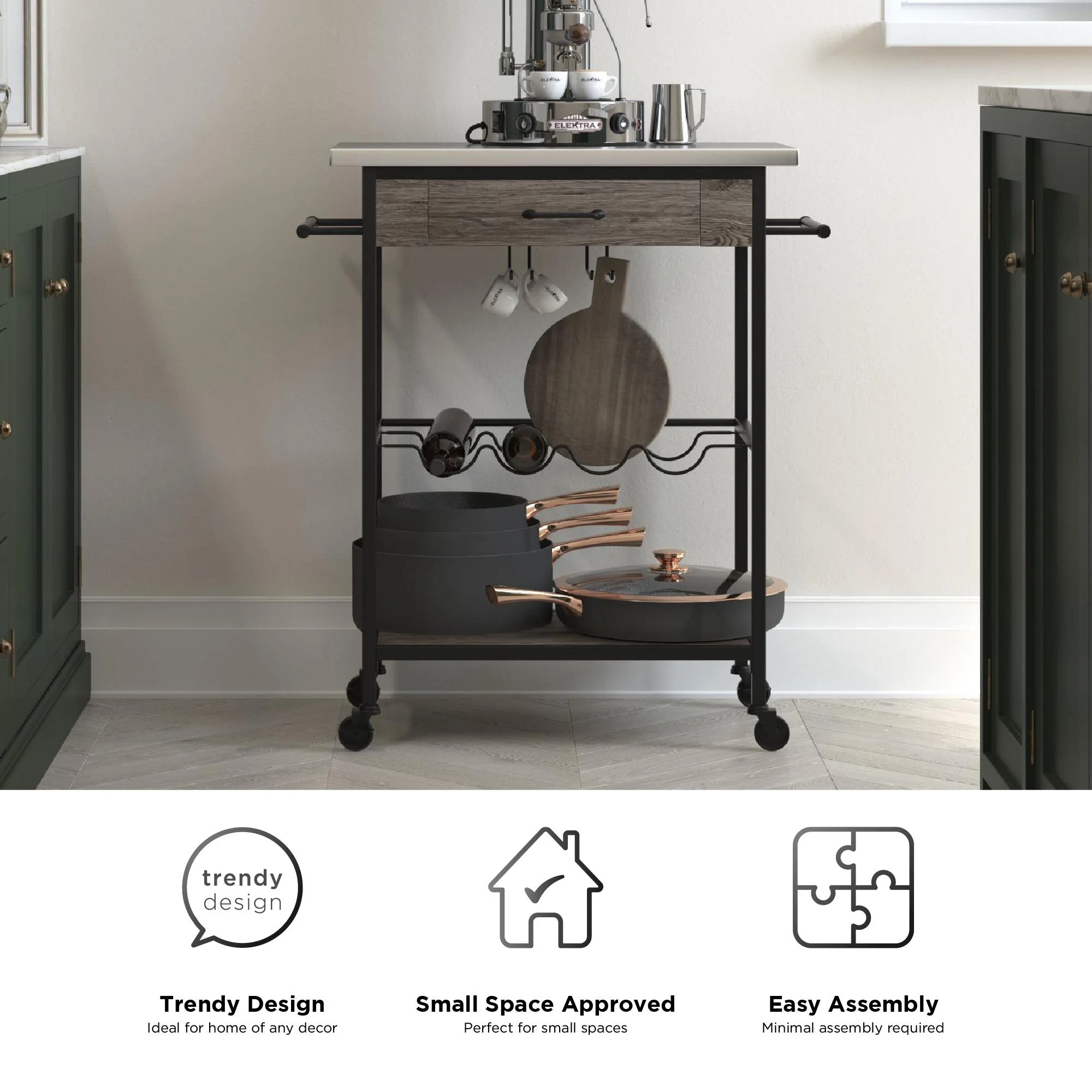 Novogratz Nora Multifunctional Kitchen Cart, Wine Rack and Pantry Storage, Stainless Steel and Black Metal, Brown