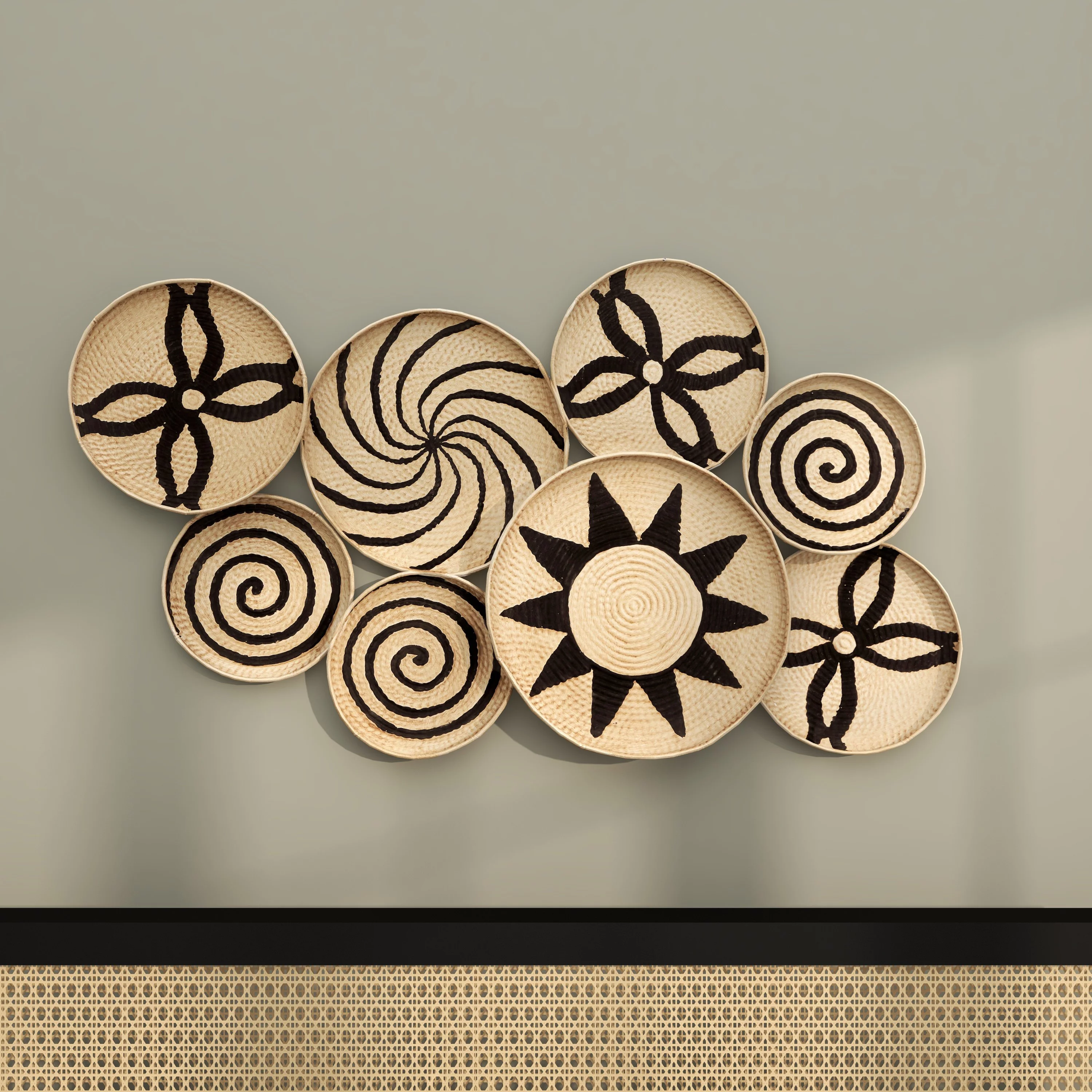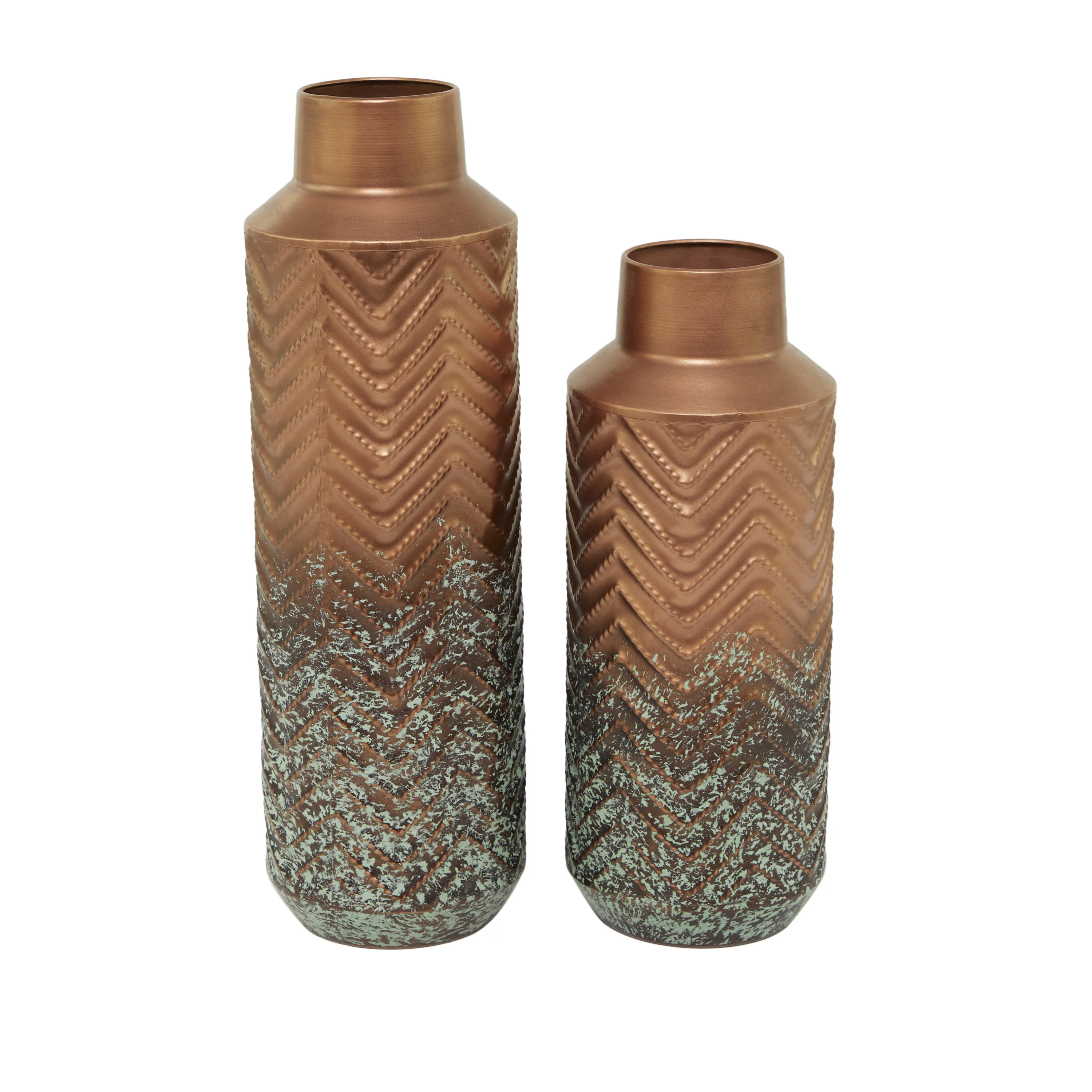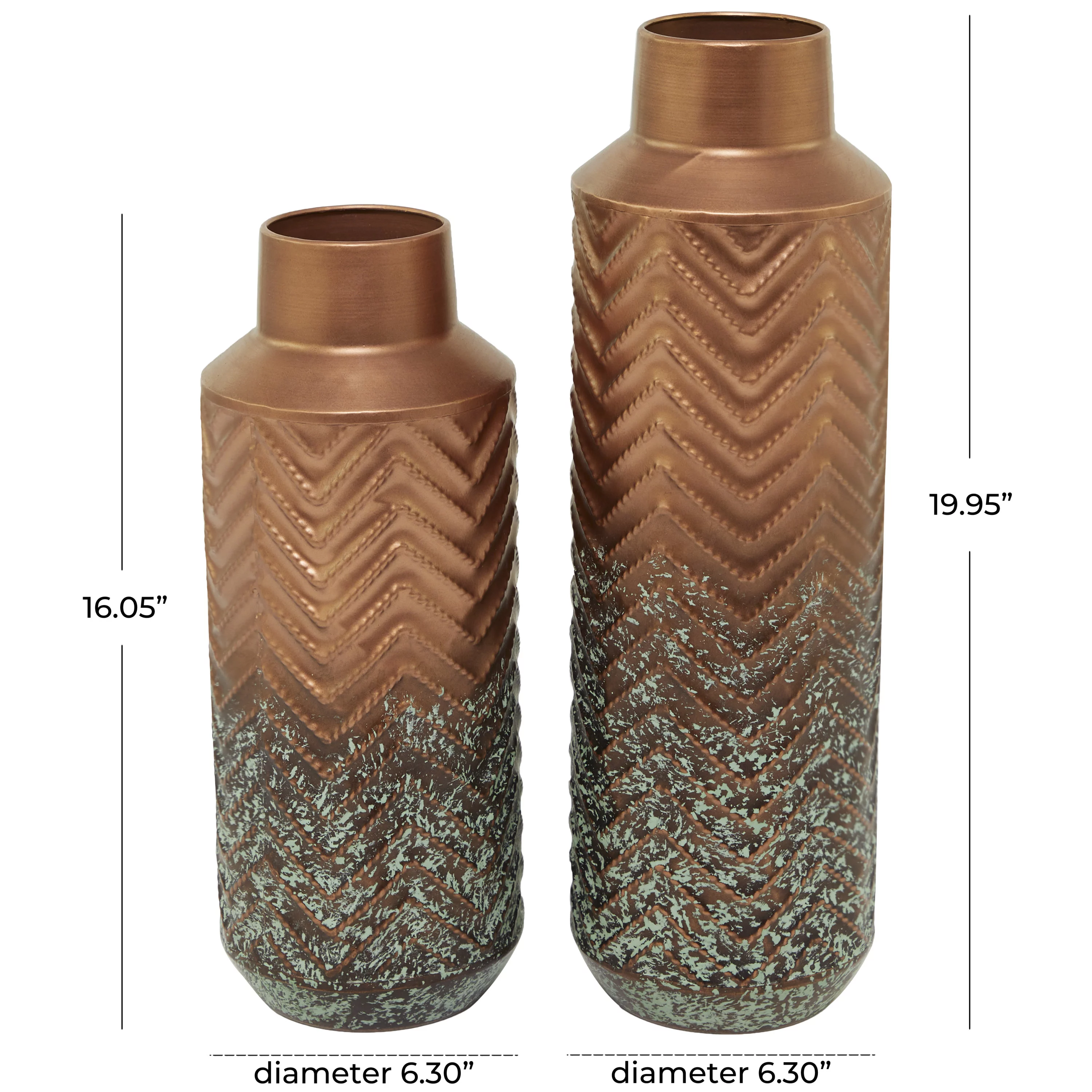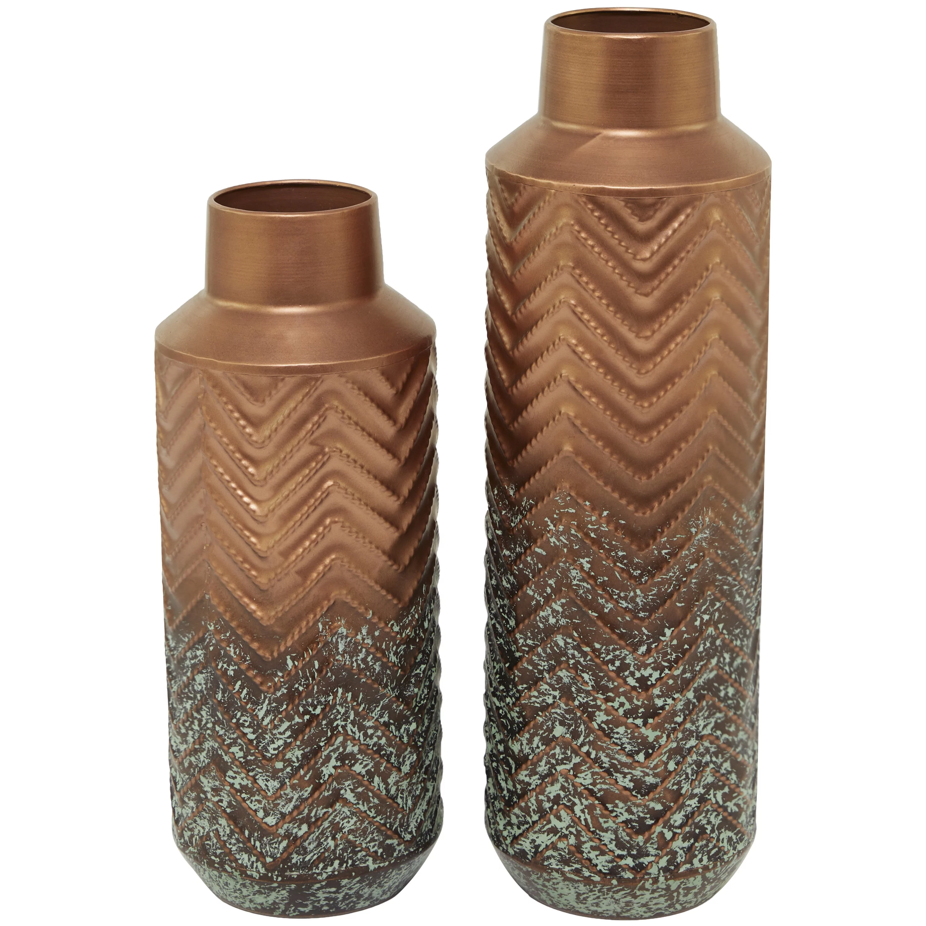 The Novogratz 24", 20", 18"H Brown Metal Vase with Cane Detail, Set of 3