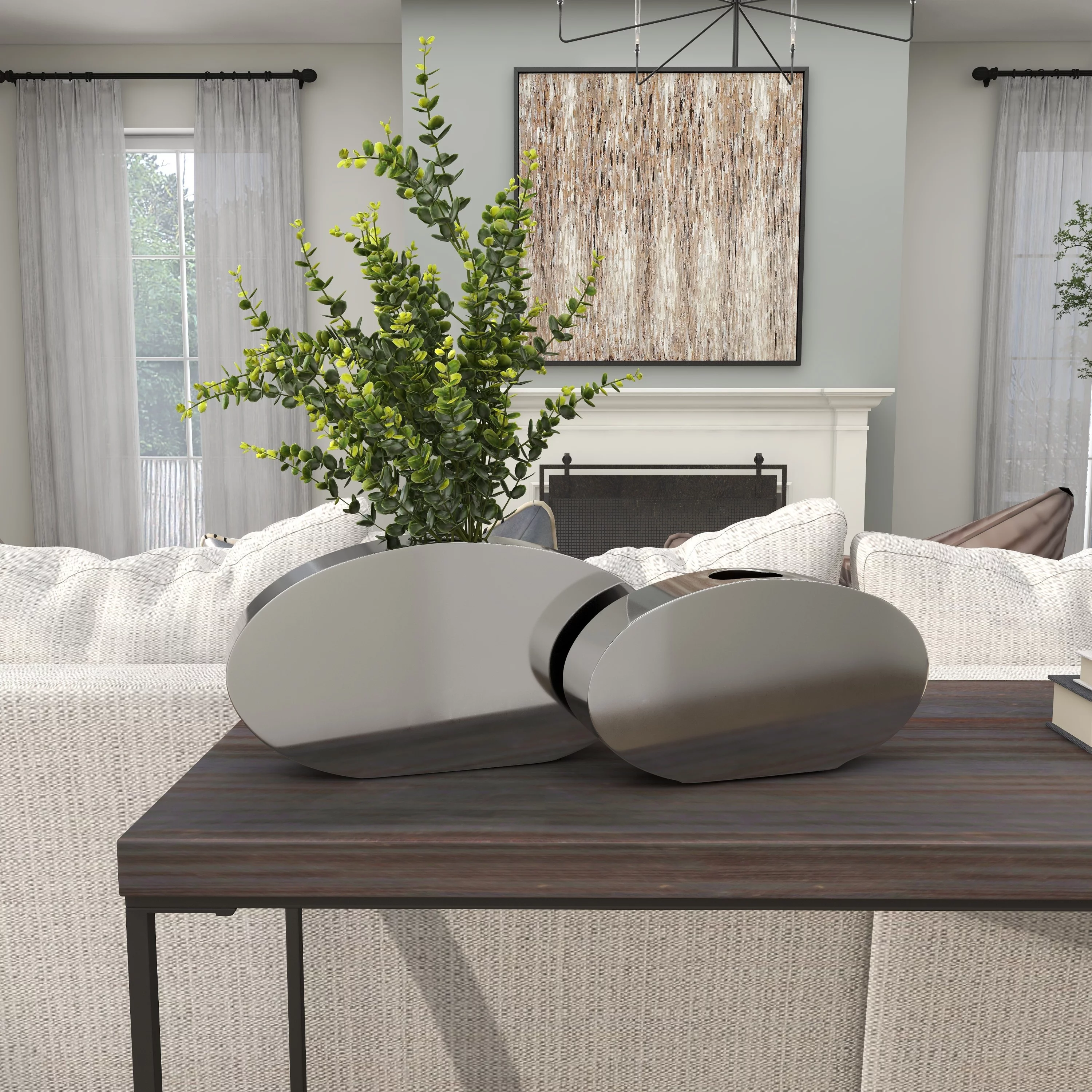 The Novogratz 7", 6"H Silver Stainless Steel Metal Vase with a Sleek Mirror Finish, Set of 2