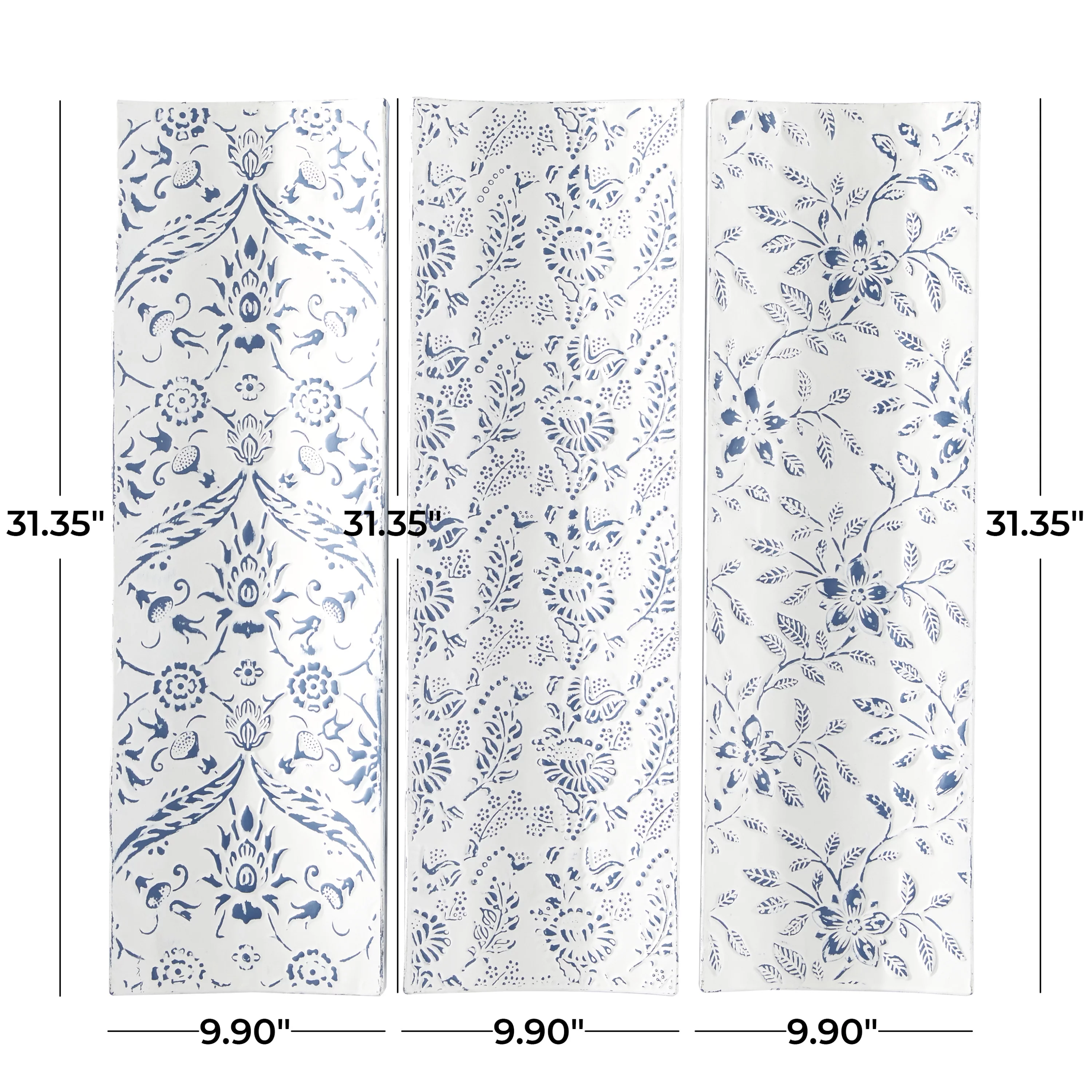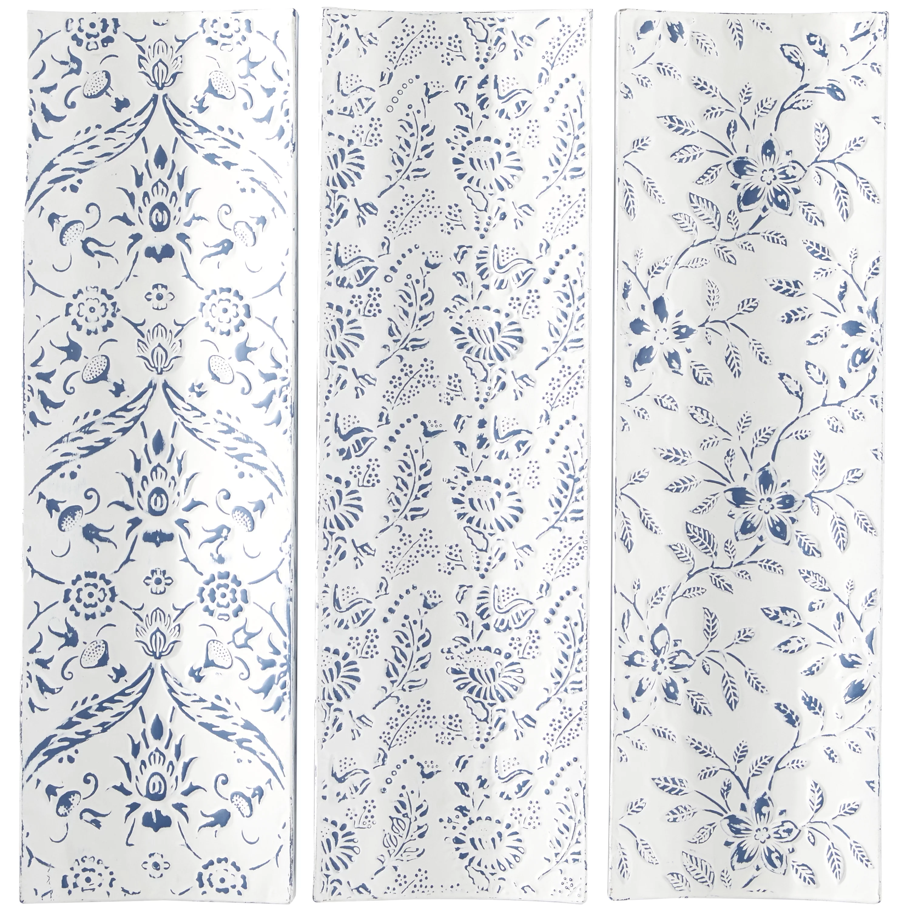 The Novogratz White Metal Floral Wall Decor with Embossed Details (3 Count)