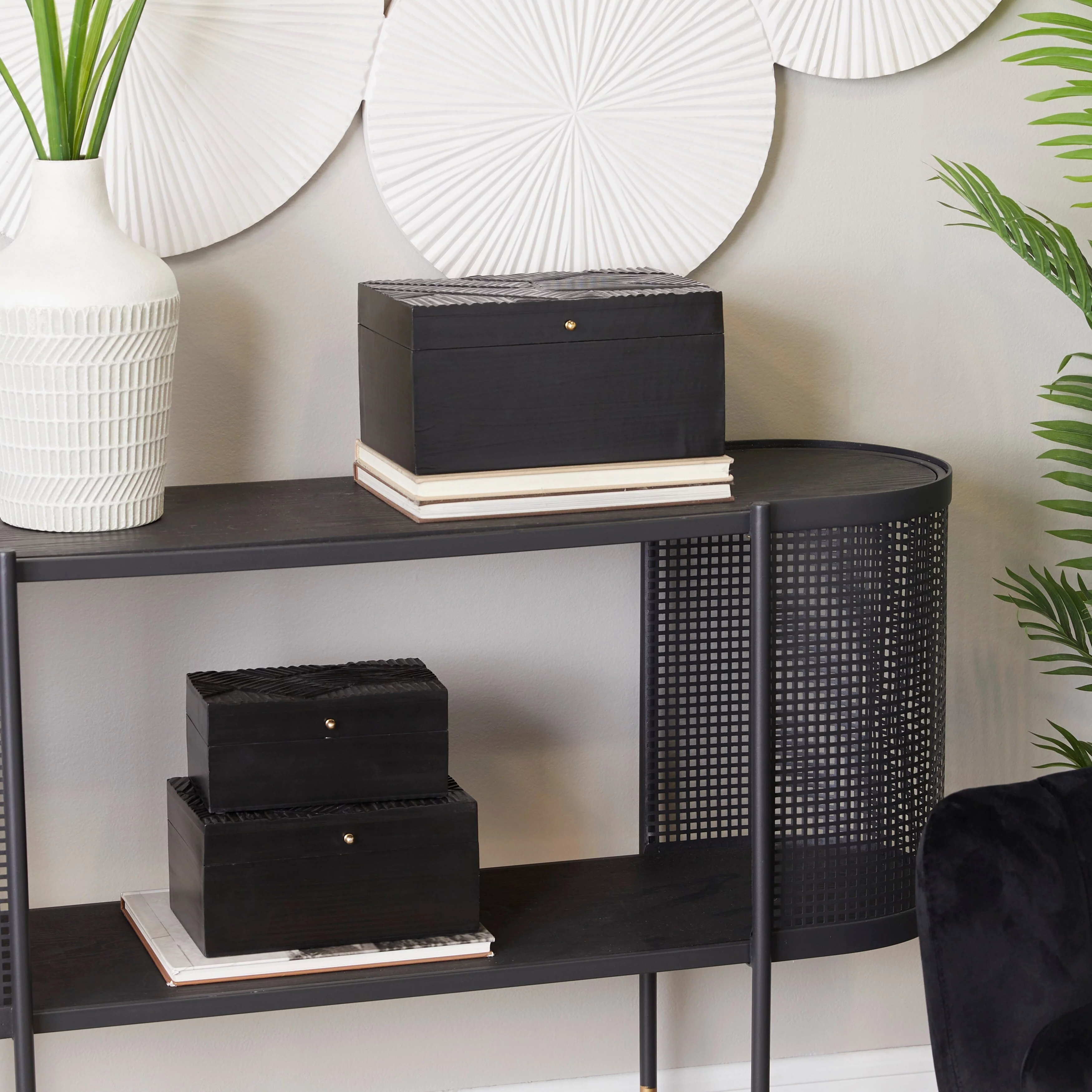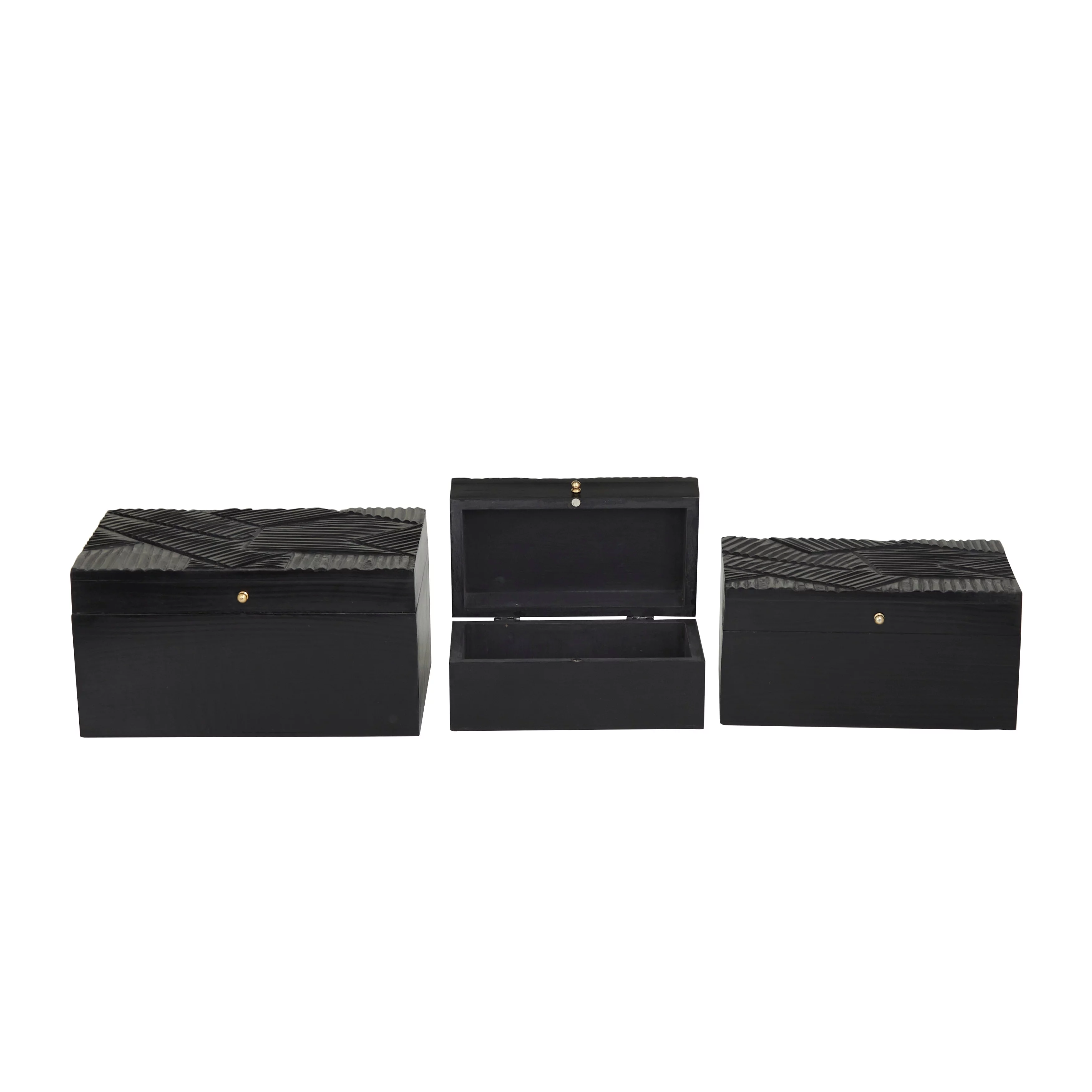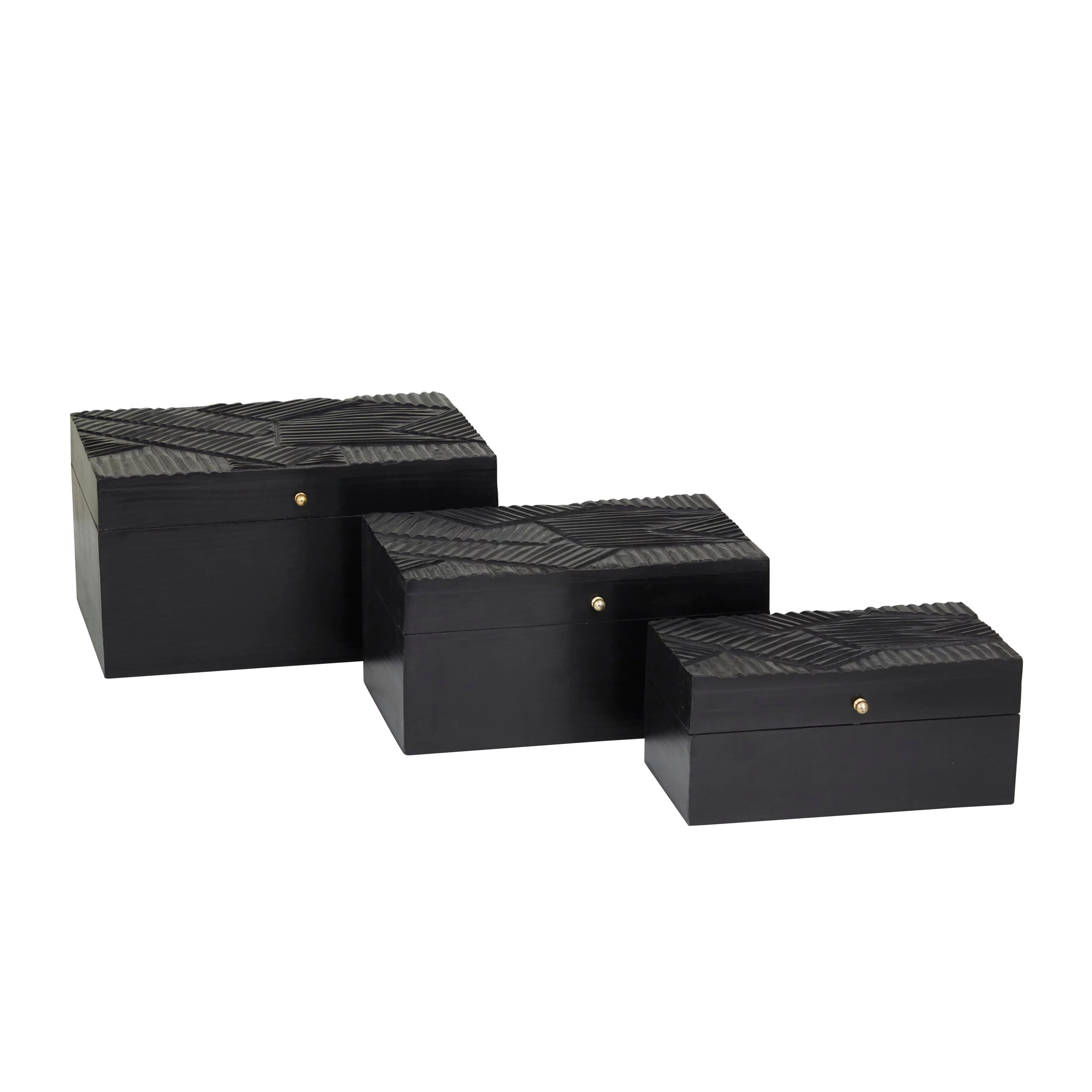 The Novogratz Wood Intricate Carved Box with Hinged Lid (Set of 3) - S/3 12, 10, 9"W Black - Geometric
