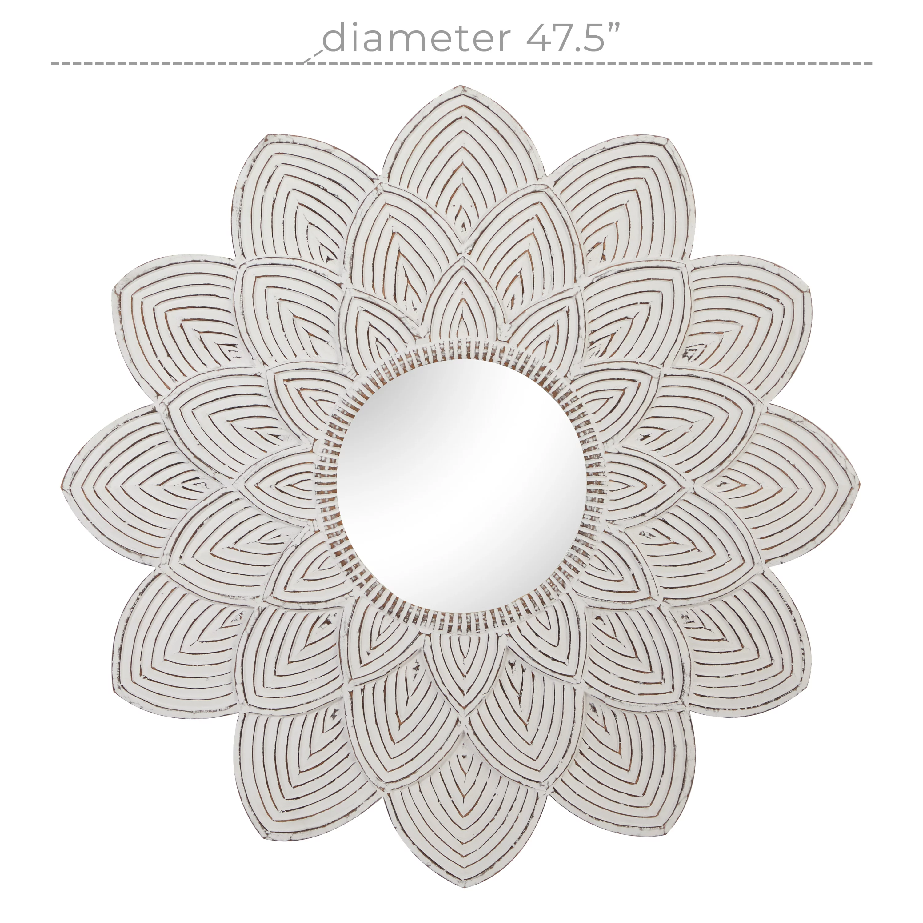 The Novogratz 48" x 48" White Carved Floral Wall Mirror with Overlapping Petals
