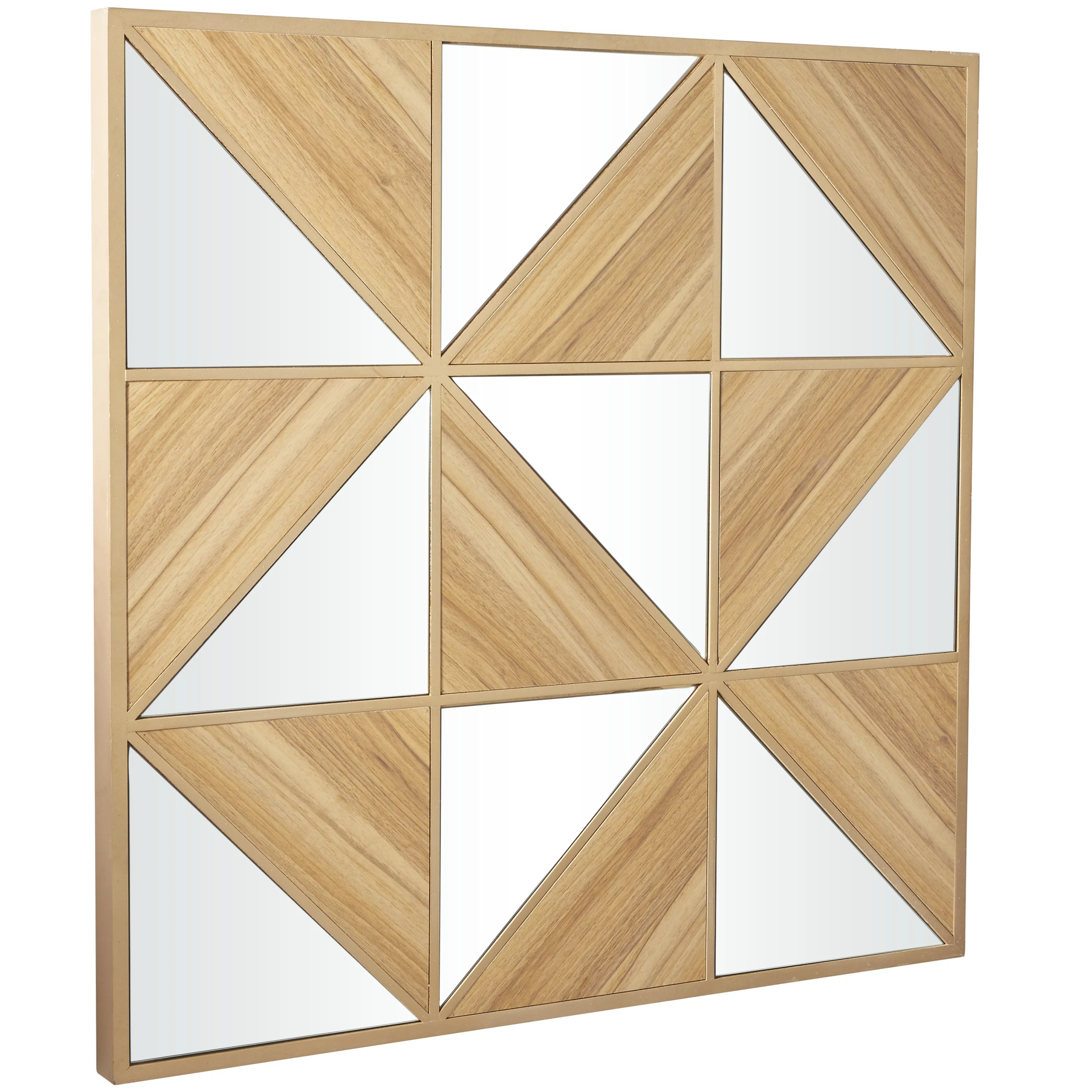 The Novogratz Brown Teak Wood Handmade Chevron Panels Geometric Wall Decor with Distressing