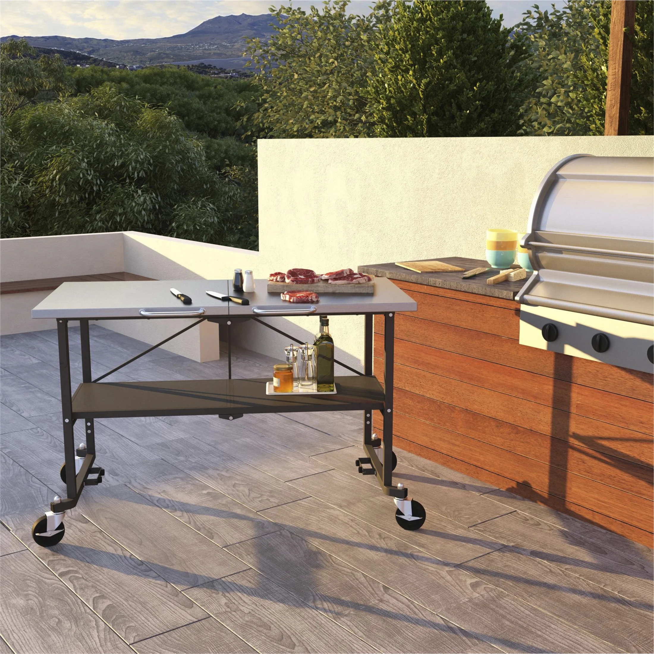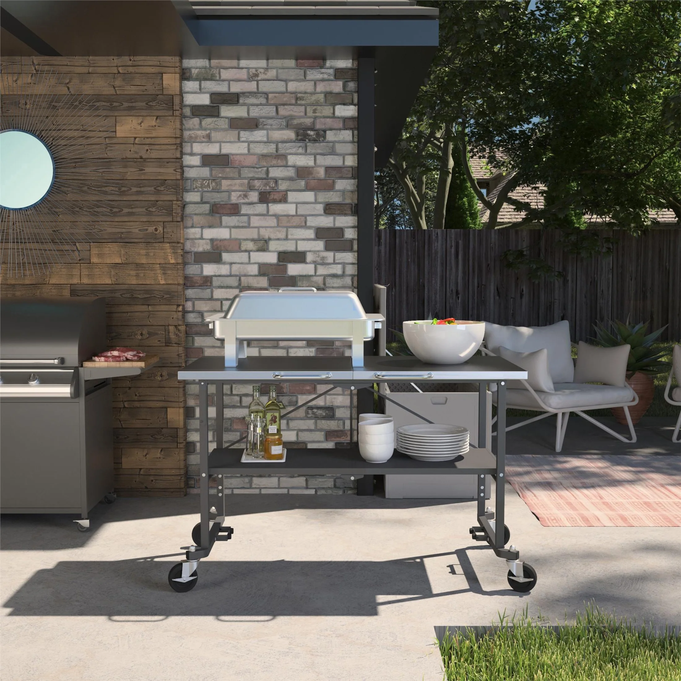 Novogratz Poolside Gossip, April 50" x 29" Rectangular Indoor/Outdoor Dining Table, Charcoal